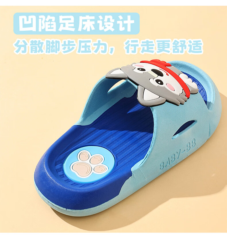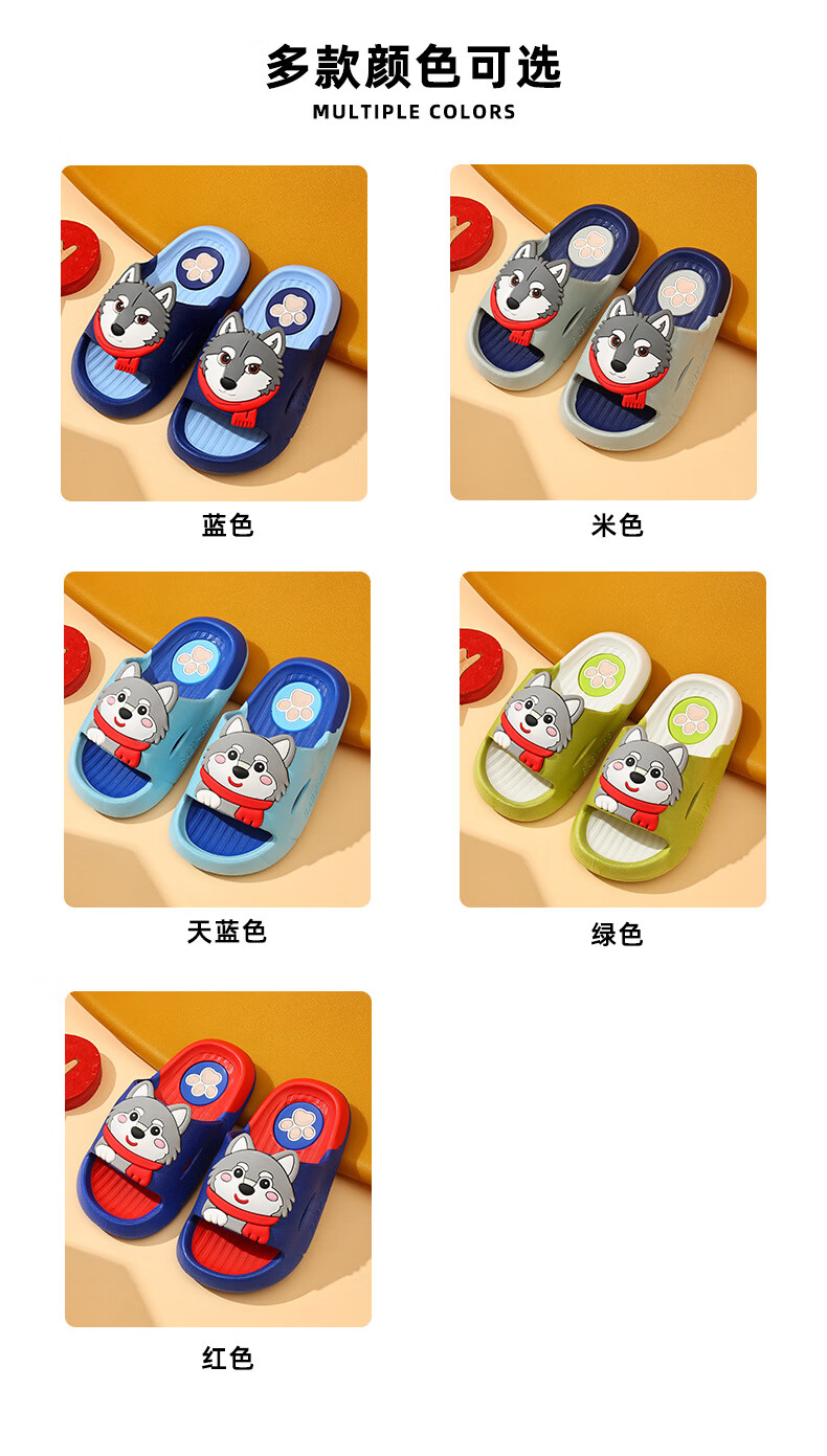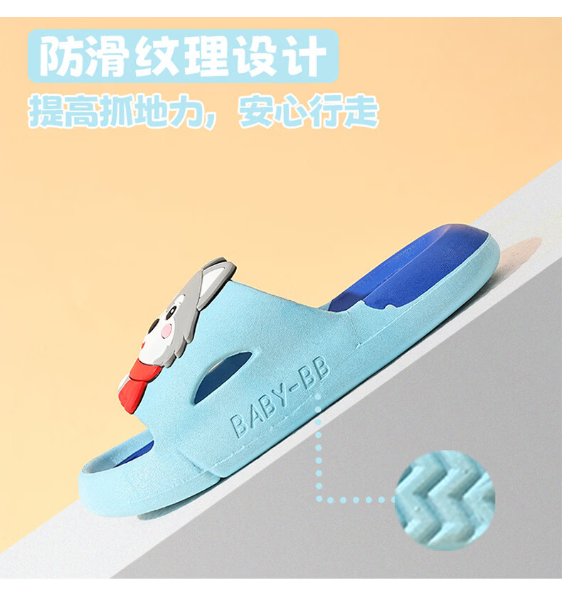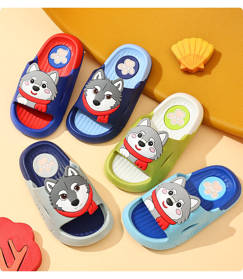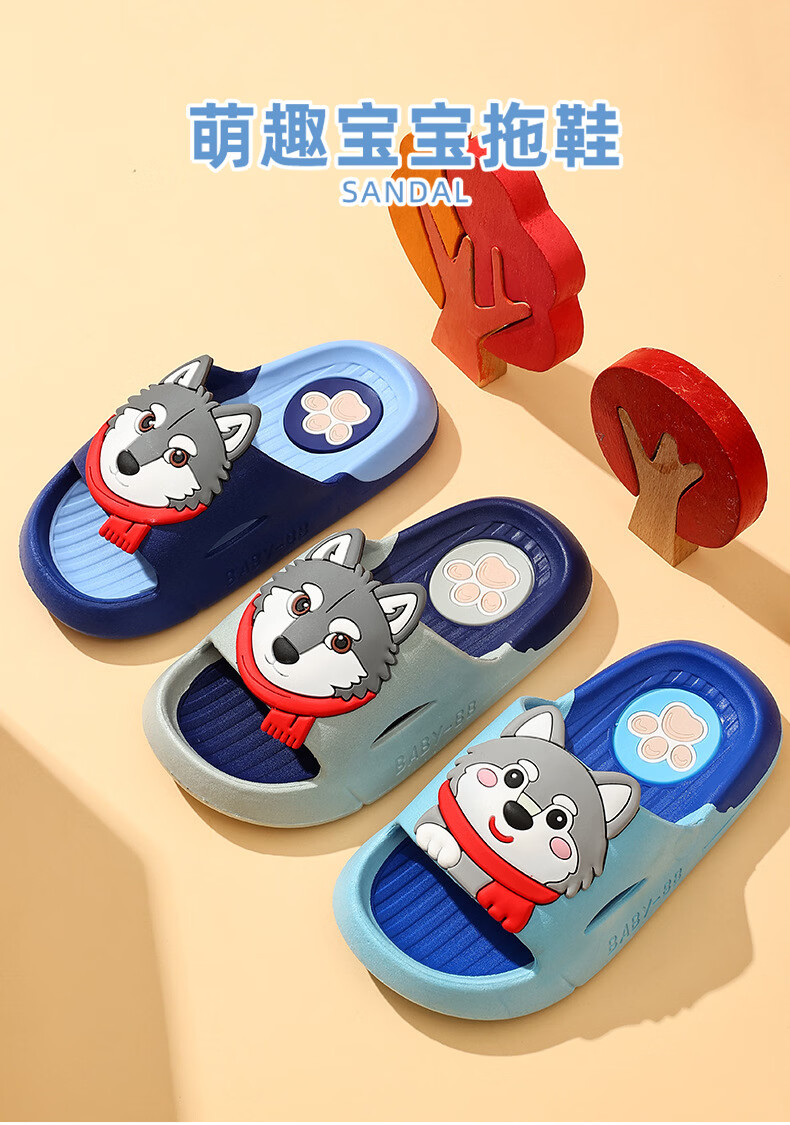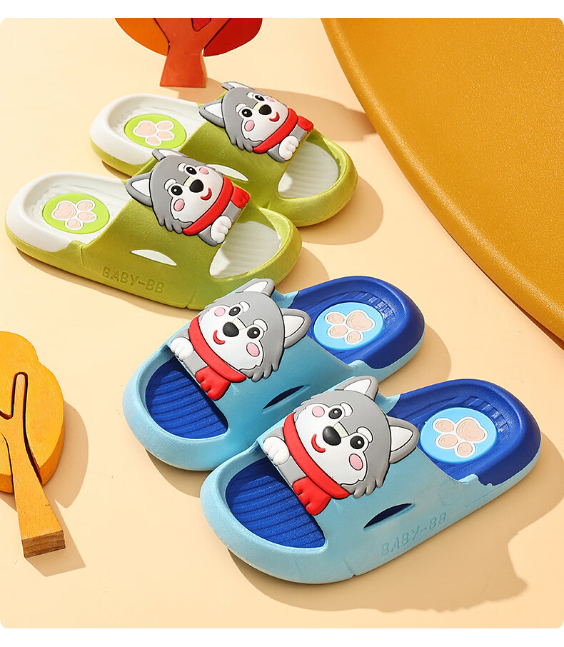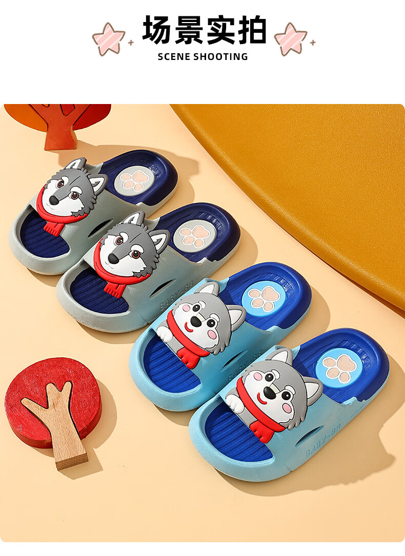 Yunyouli Wolf King Green Children's Slippers Summer Boys' Anti-Slip Soft Bottom Cartoon Parent-Child Slippers Children's Bath Slippers Dark Blue Size 38-39 Inner Length 23cm