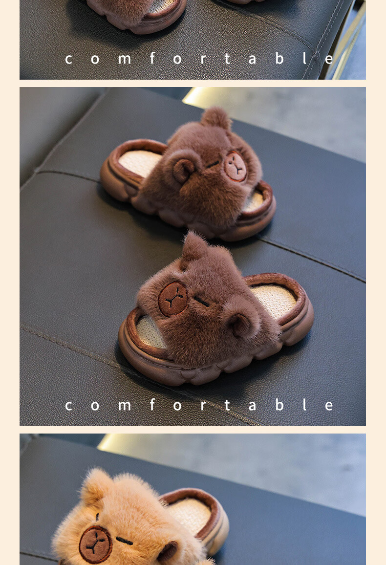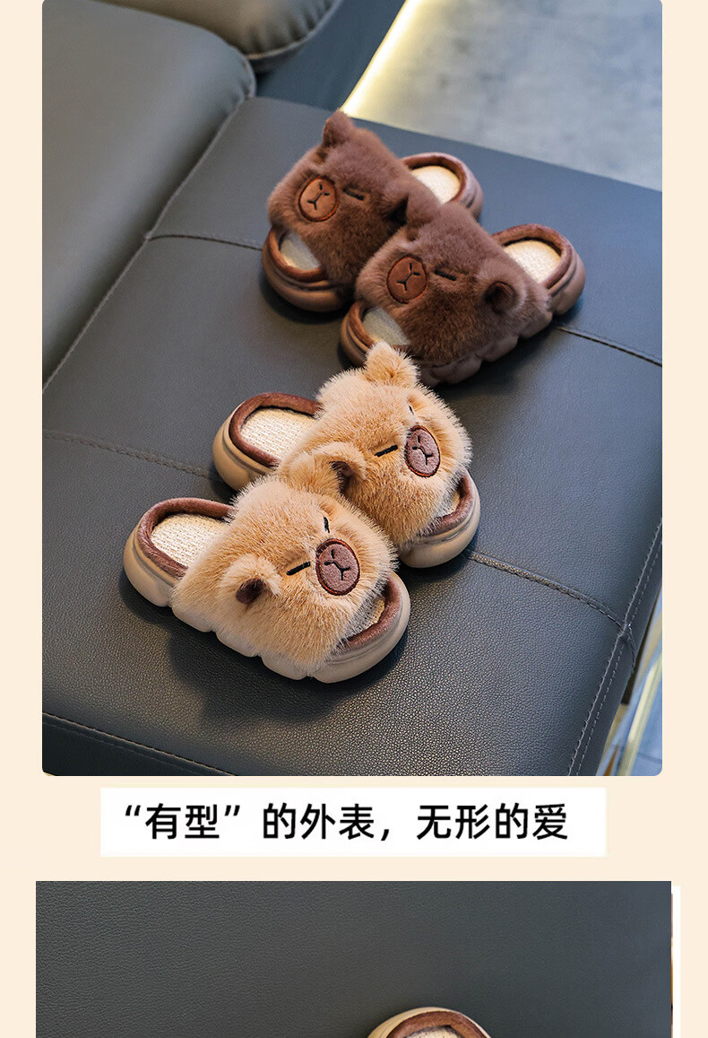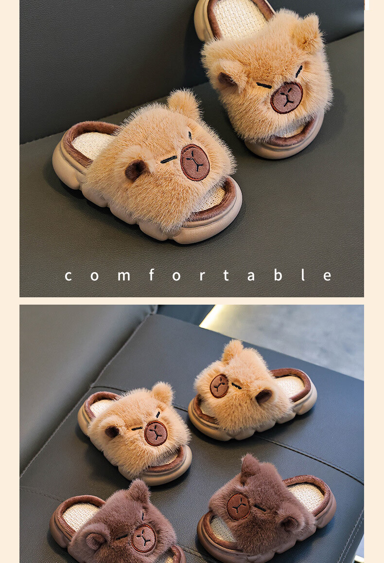 Yunyouli Yiwu Cang-Kapibara Children's Linen Slippers Girls' Summer Cartoon Cute Non-Slip Slippers Light Brown Size 42 43 (Suitable for 41/42 Feet)