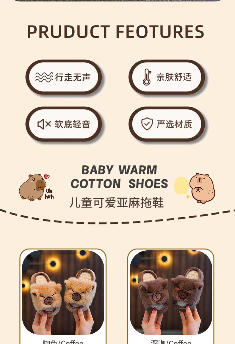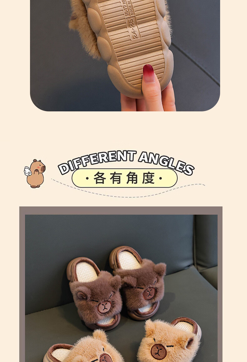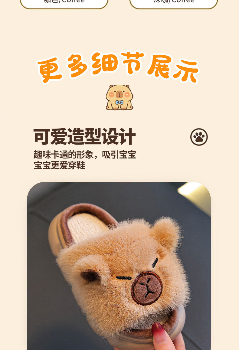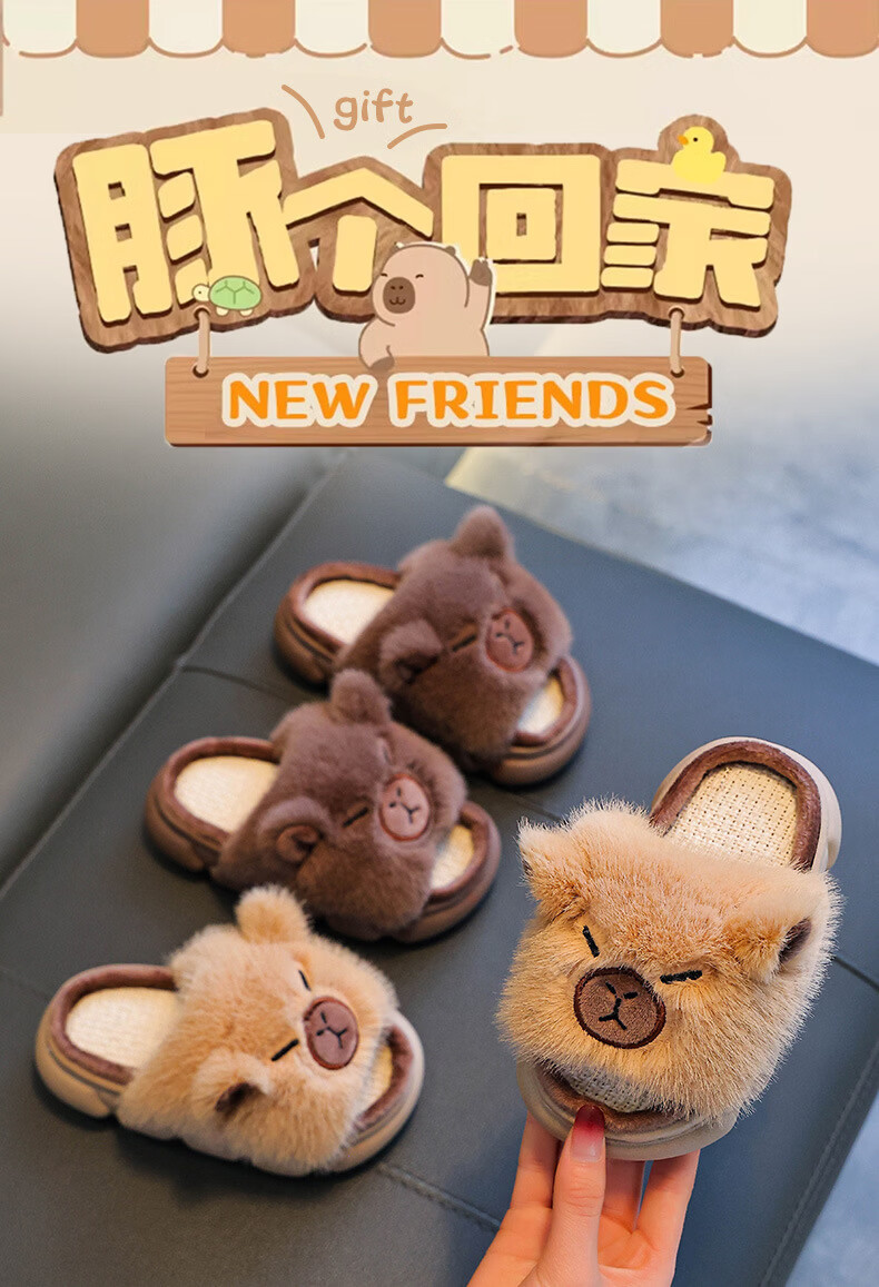 Yunyouli Yiwu Cang-Kapibara Children's Linen Slippers Girls' Summer Cartoon Cute Non-Slip Slippers Light Brown Size 42 43 (Suitable for 41/42 Feet)