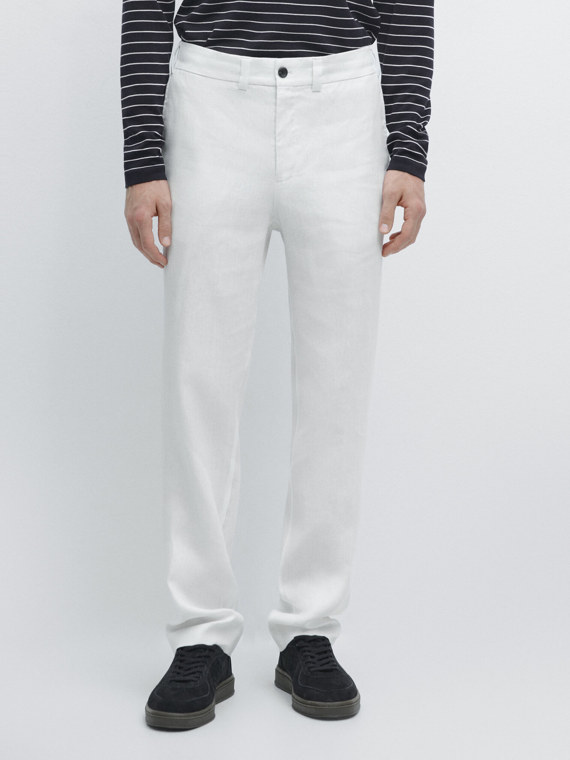 Massimo Dutti spring and summer new product 2026 men's urban simple commuting pure linen trousers 02855440 dark blue S (175/80A) (waist 75cm)