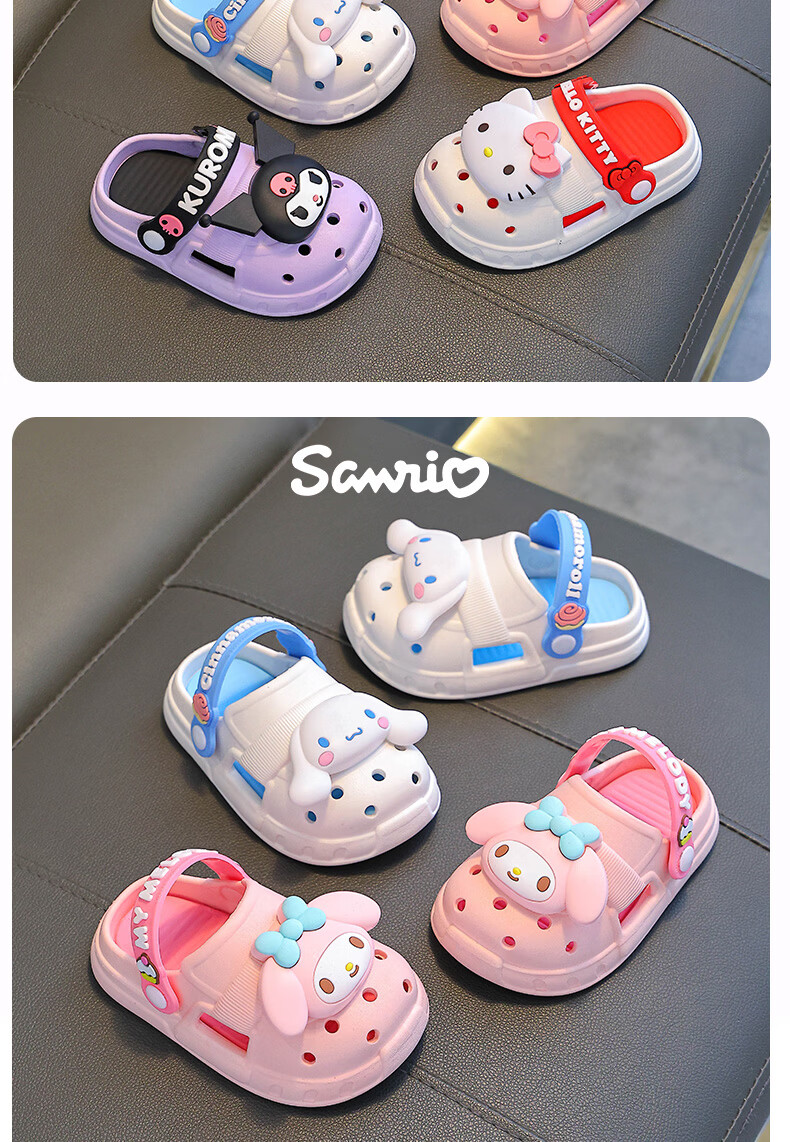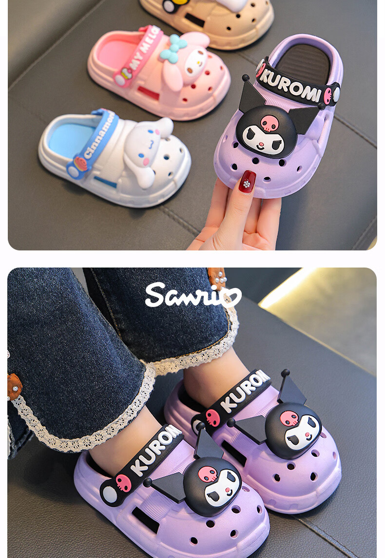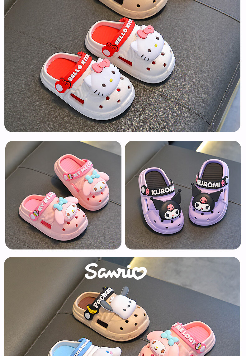 Hafeizhu Sanrio Kurumi children's hole-in-the-wall slippers, summer cute non-slip outer wear for boys and girls, children's toe-cap sandals, melon red Melody size 24/25 (shoe inner length 15CM)