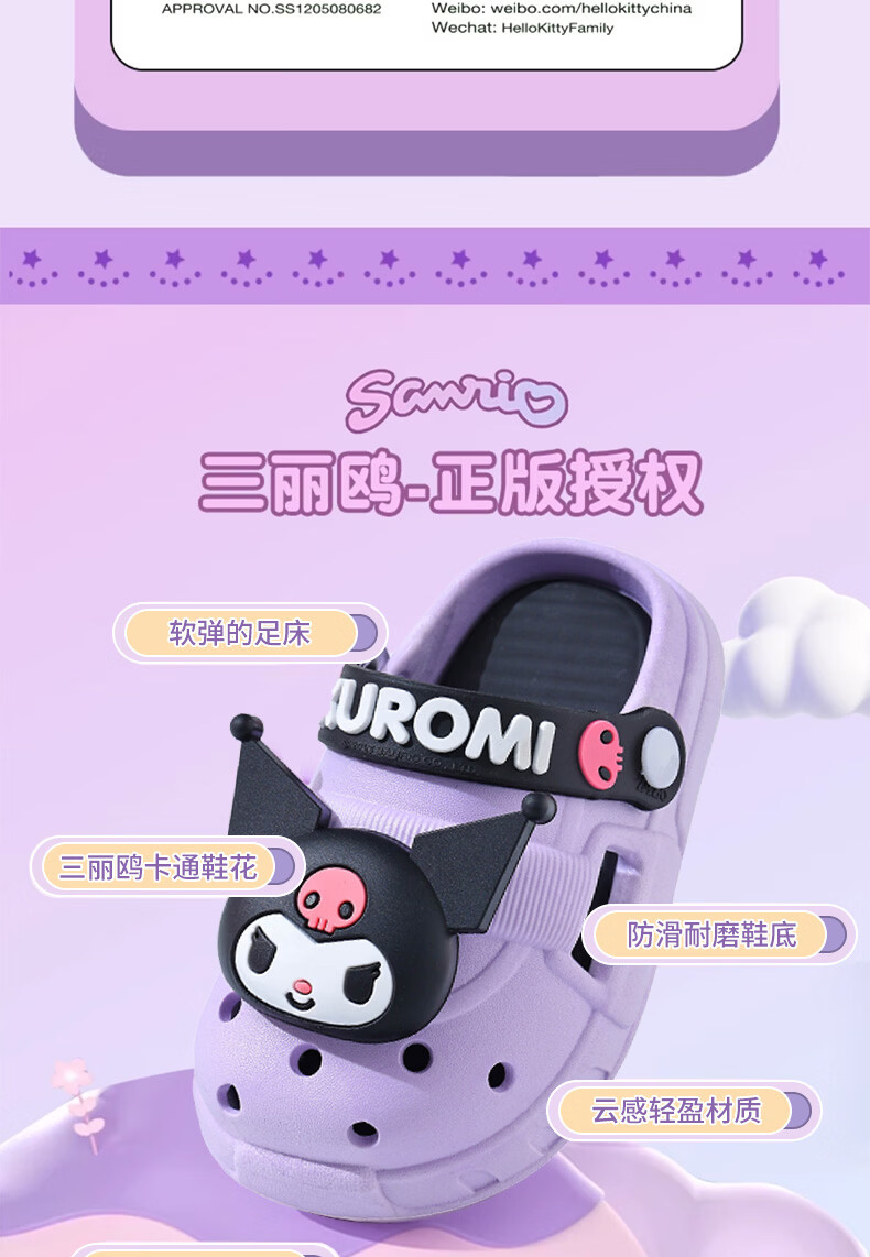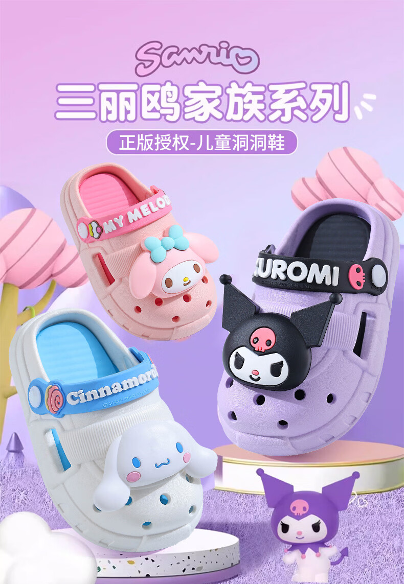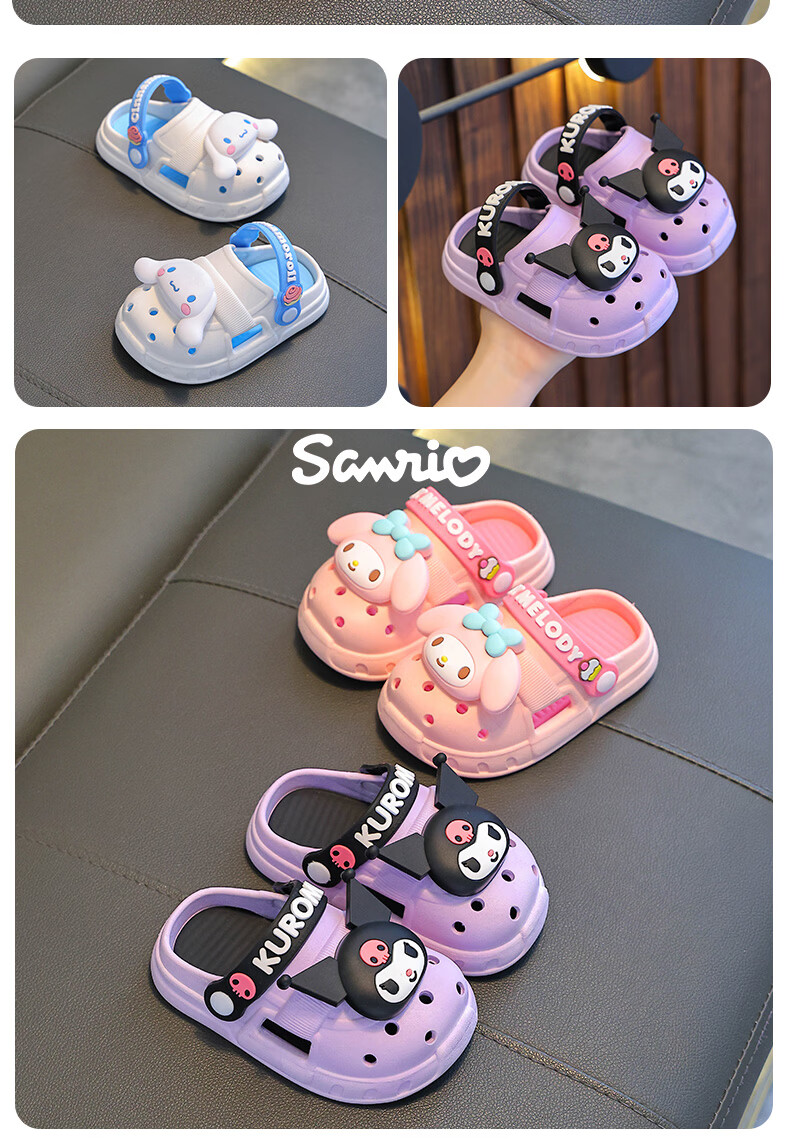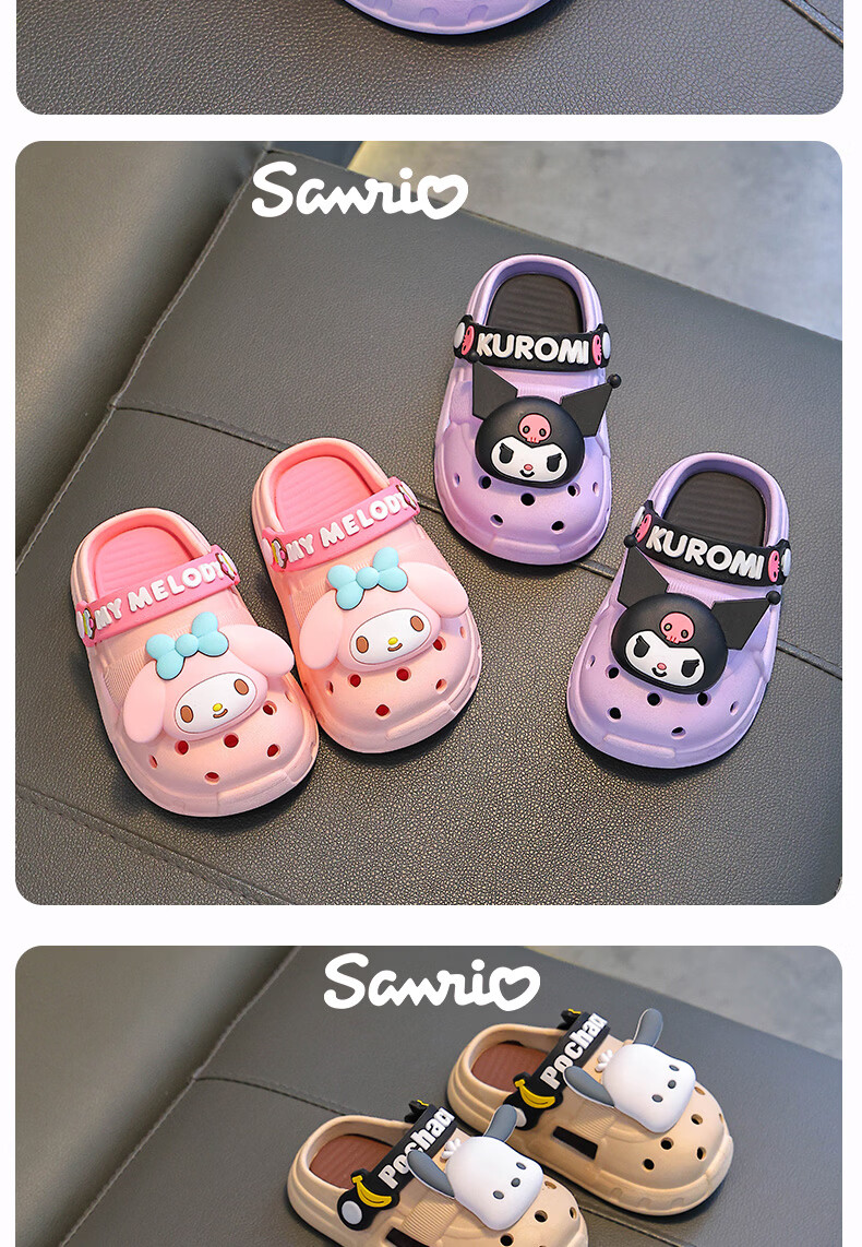 Hafeizhu Sanrio Kurumi children's hole-in-the-wall slippers, summer cute non-slip outer wear for boys and girls, children's toe-cap sandals, melon red Melody size 24/25 (shoe inner length 15CM)