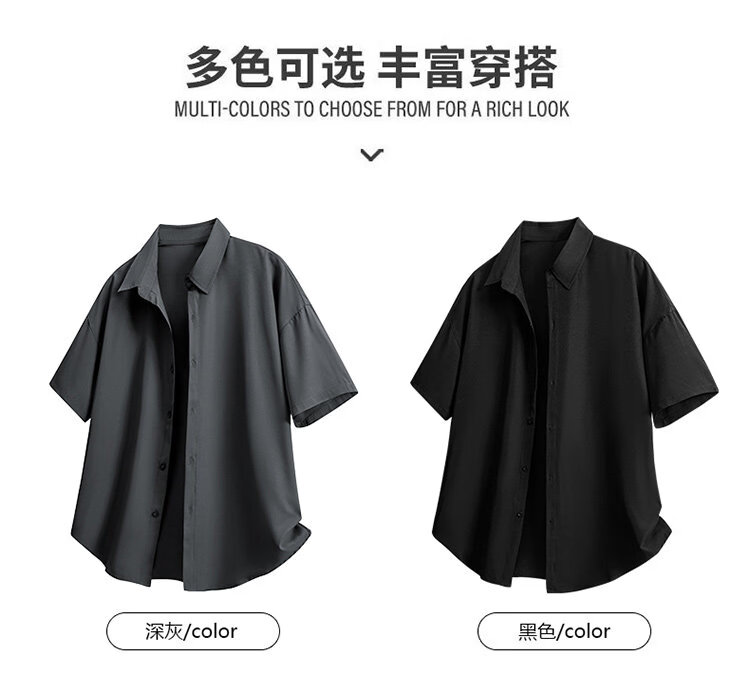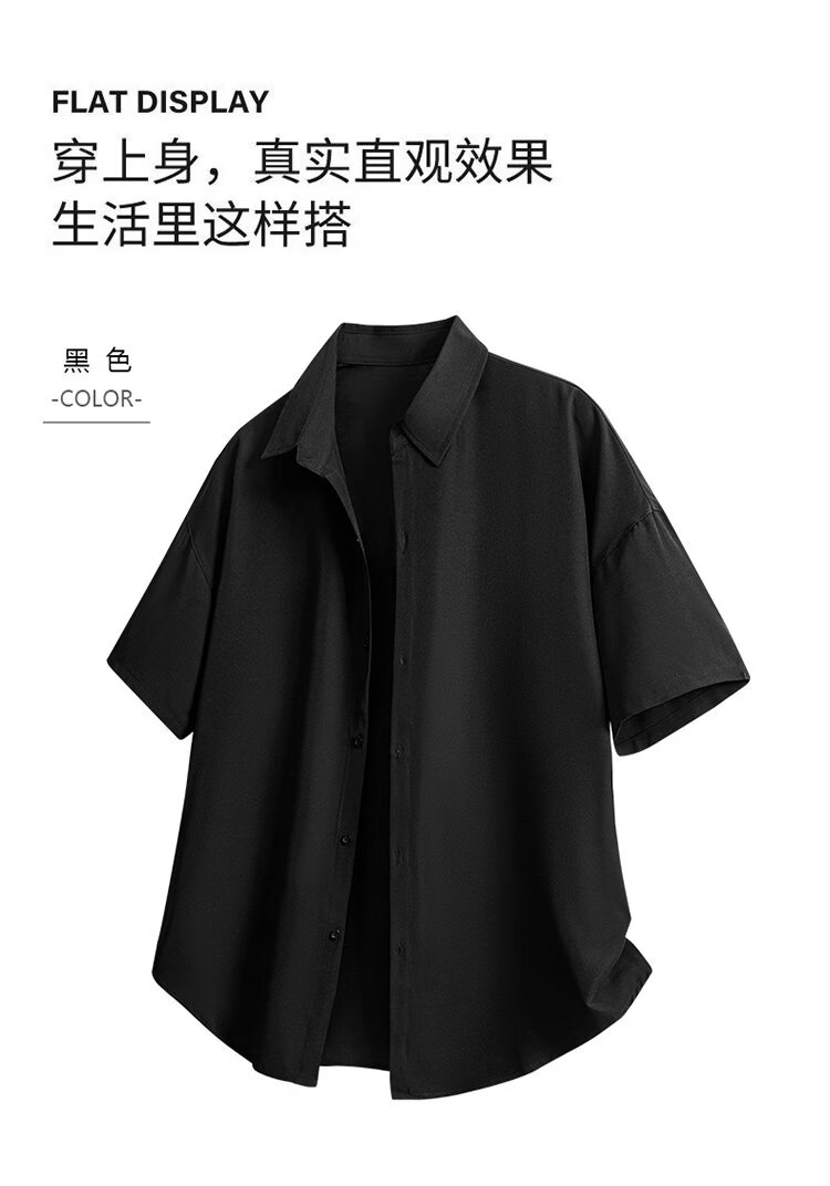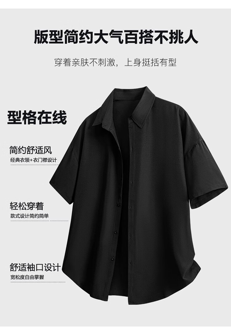 Woodpecker (TUCANO) drapey ice silk black short-sleeved shirt men's summer solid color loose half-sleeved shirt jacket 1XM13/CY008 black long sleeve 4XL recommended 180-190Jin Jin equals about 0.5 kg