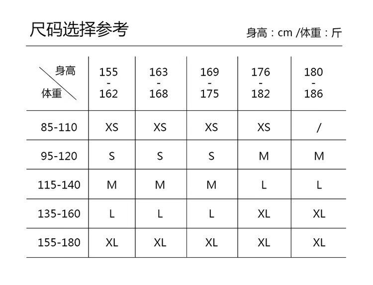 China (cm) 160-165/84-86 165-170 / 88-90 167-172 / 92-96 168-173 / 98-102 170-176 / 106-110
