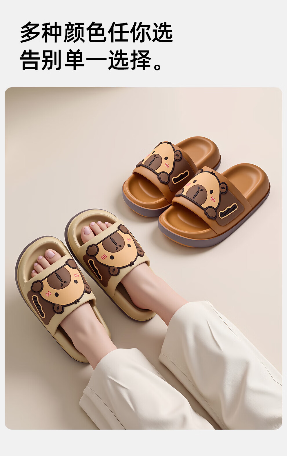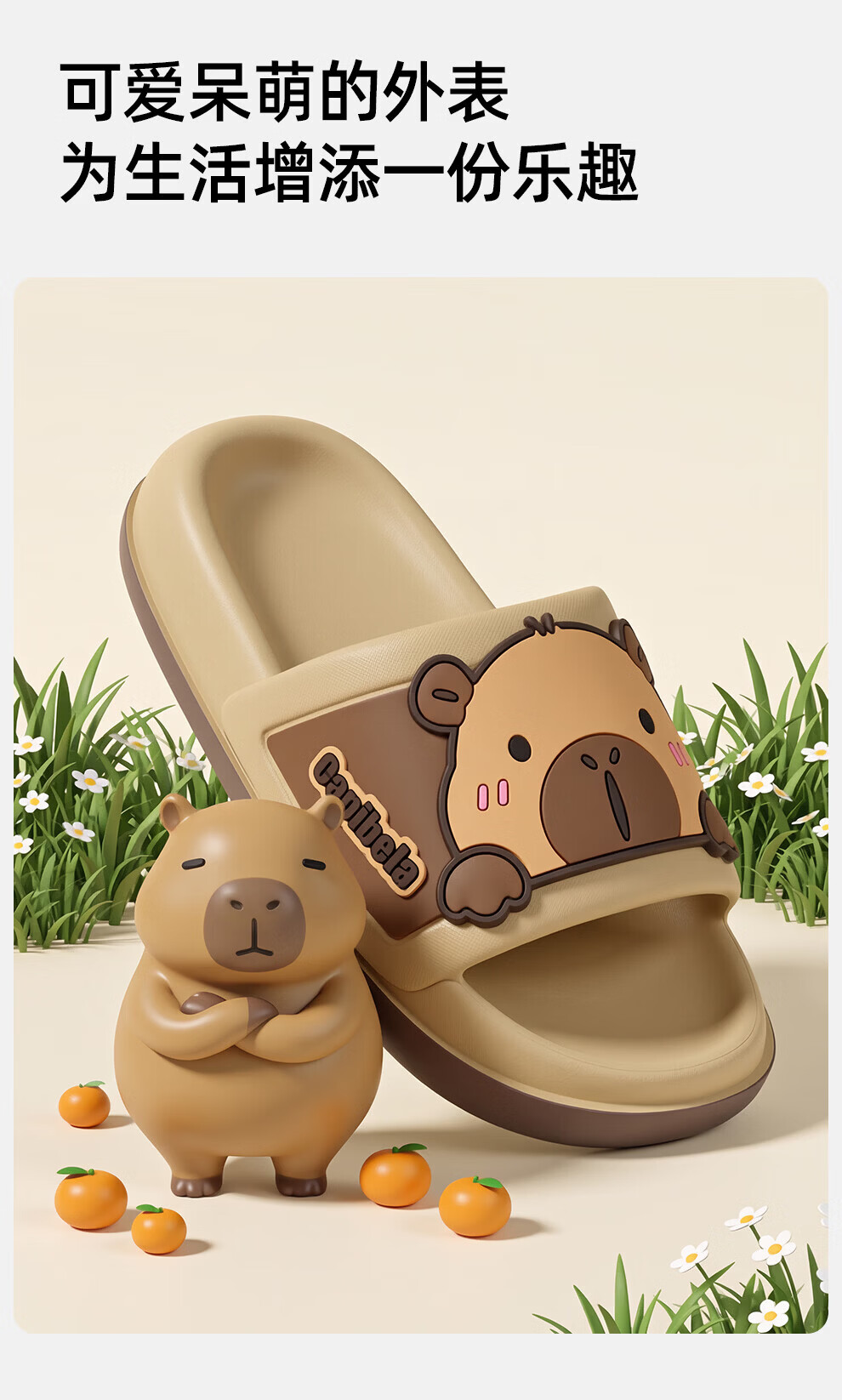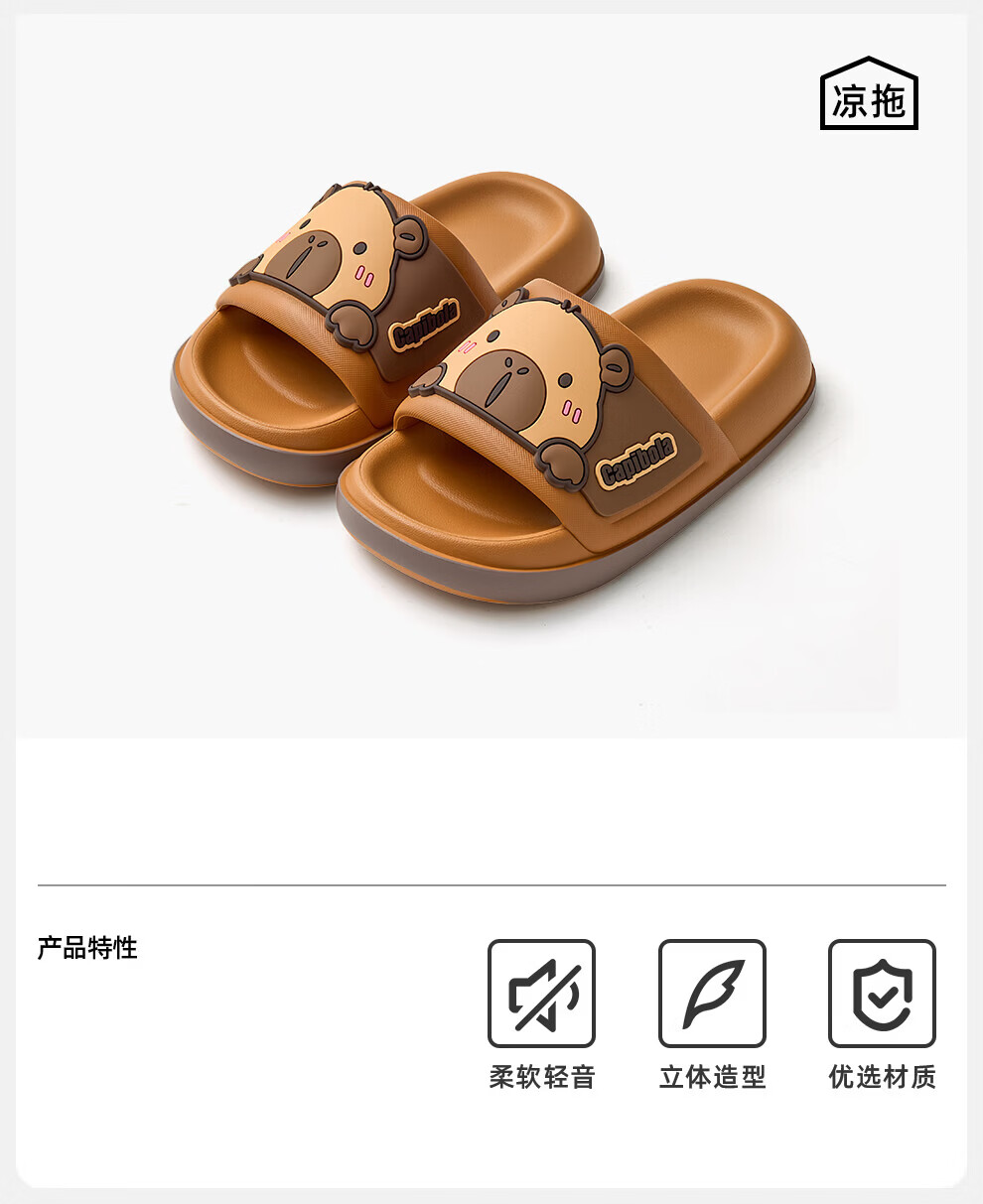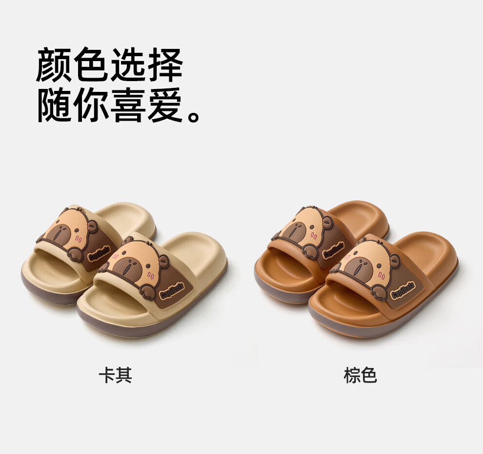 Bermuda Qingchen Cartoon Sandals Indoor Home Summer Outdoor Wear 2026 Summer New Non-Slip Thick Soled Kapibala Slippers Women Khaki 27 Inner Length 190mm