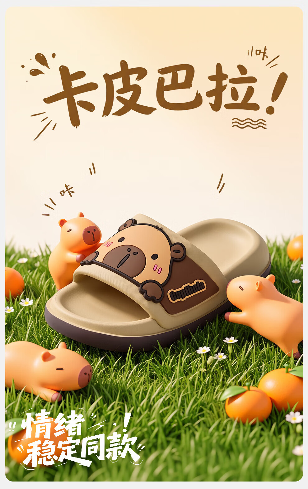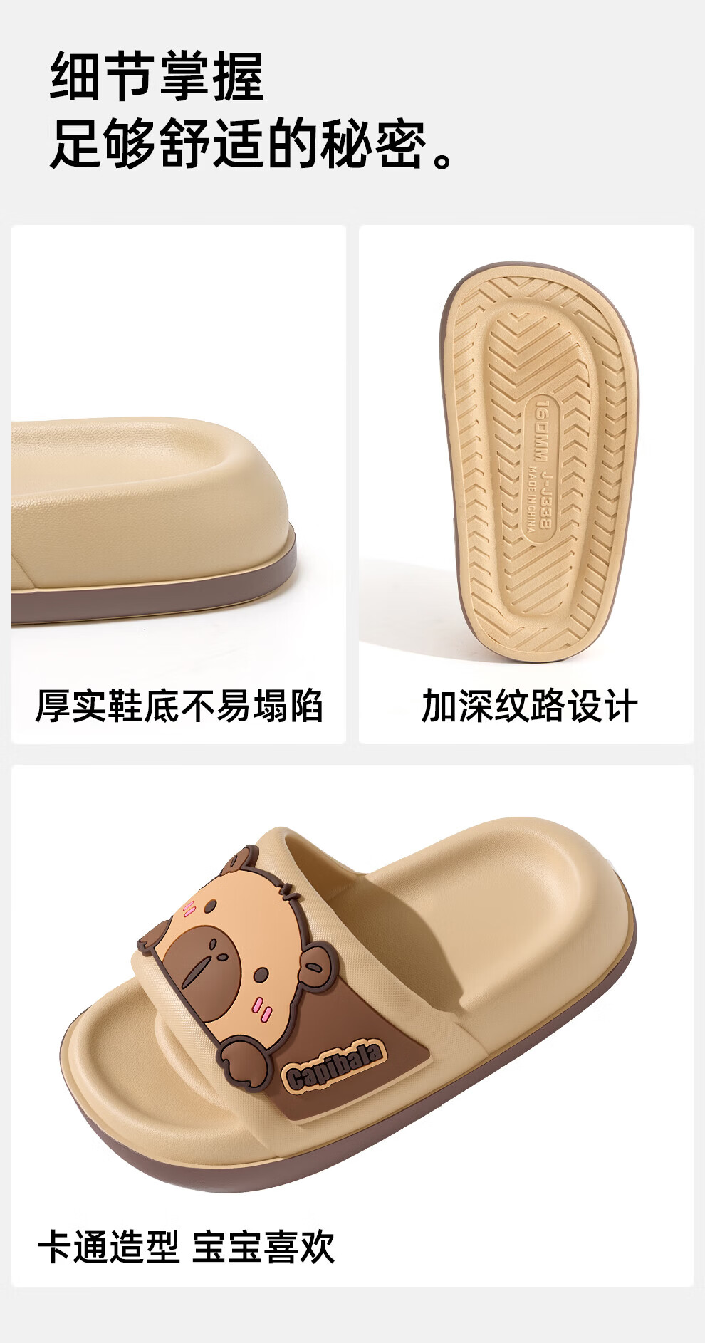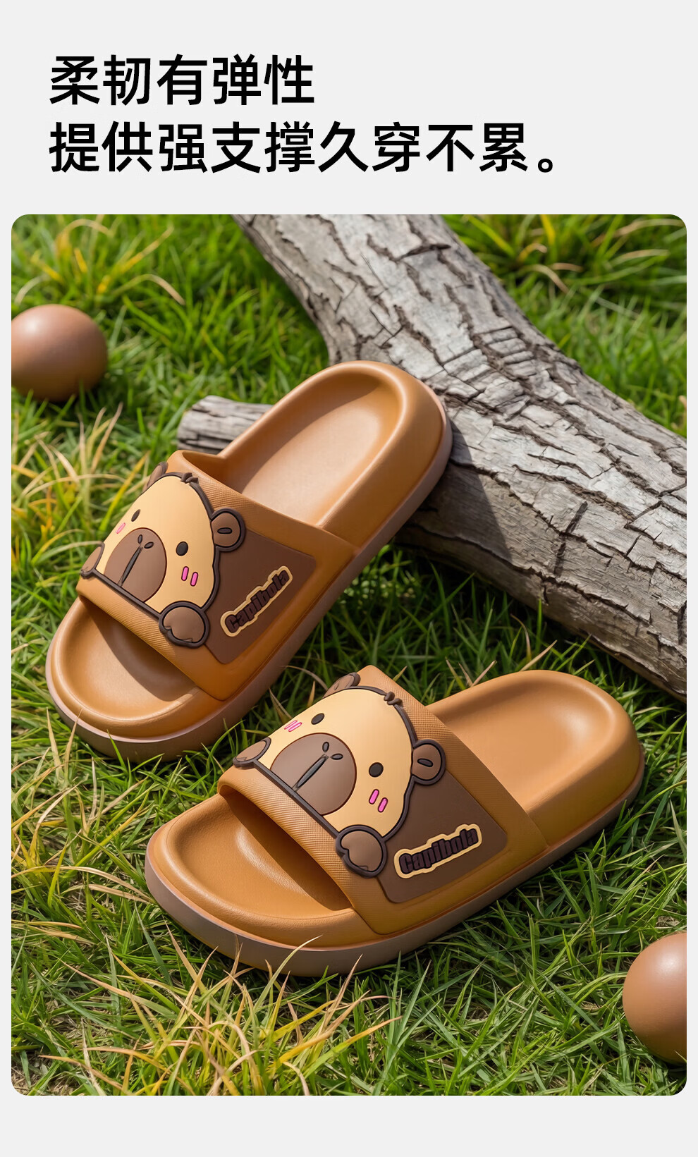 Bermuda Qingchen Cartoon Sandals Indoor Home Summer Outdoor Wear 2026 Summer New Non-Slip Thick Soled Kapibala Slippers Women Khaki 27 Inner Length 190mm