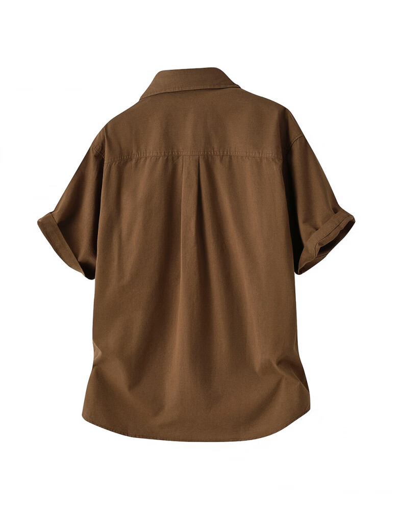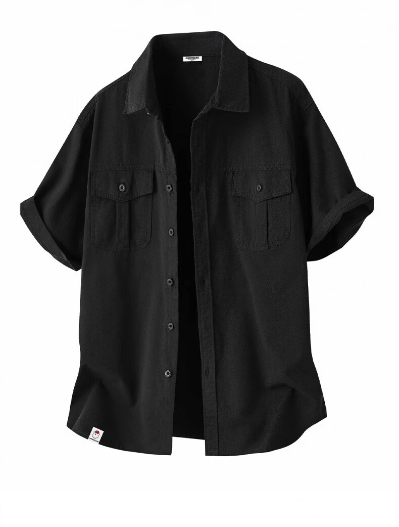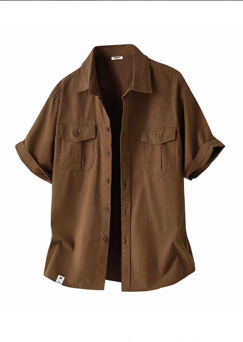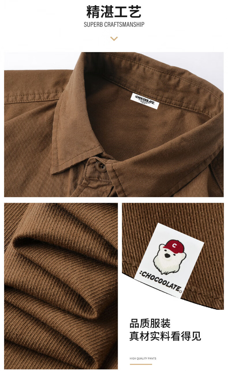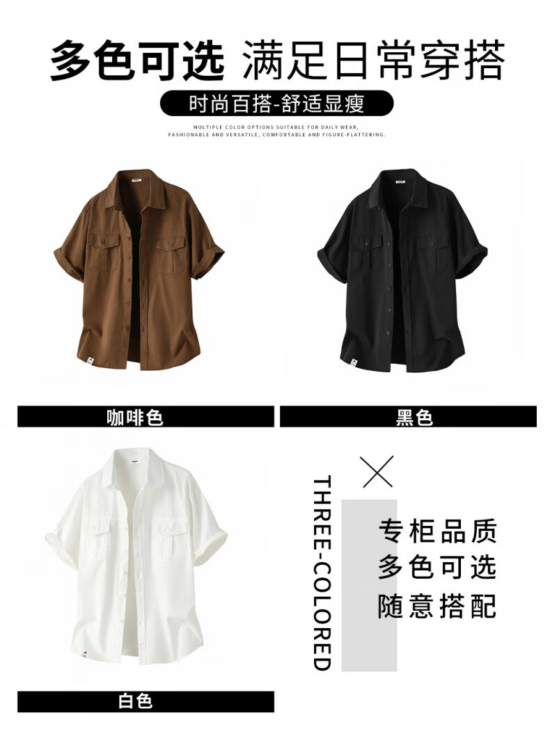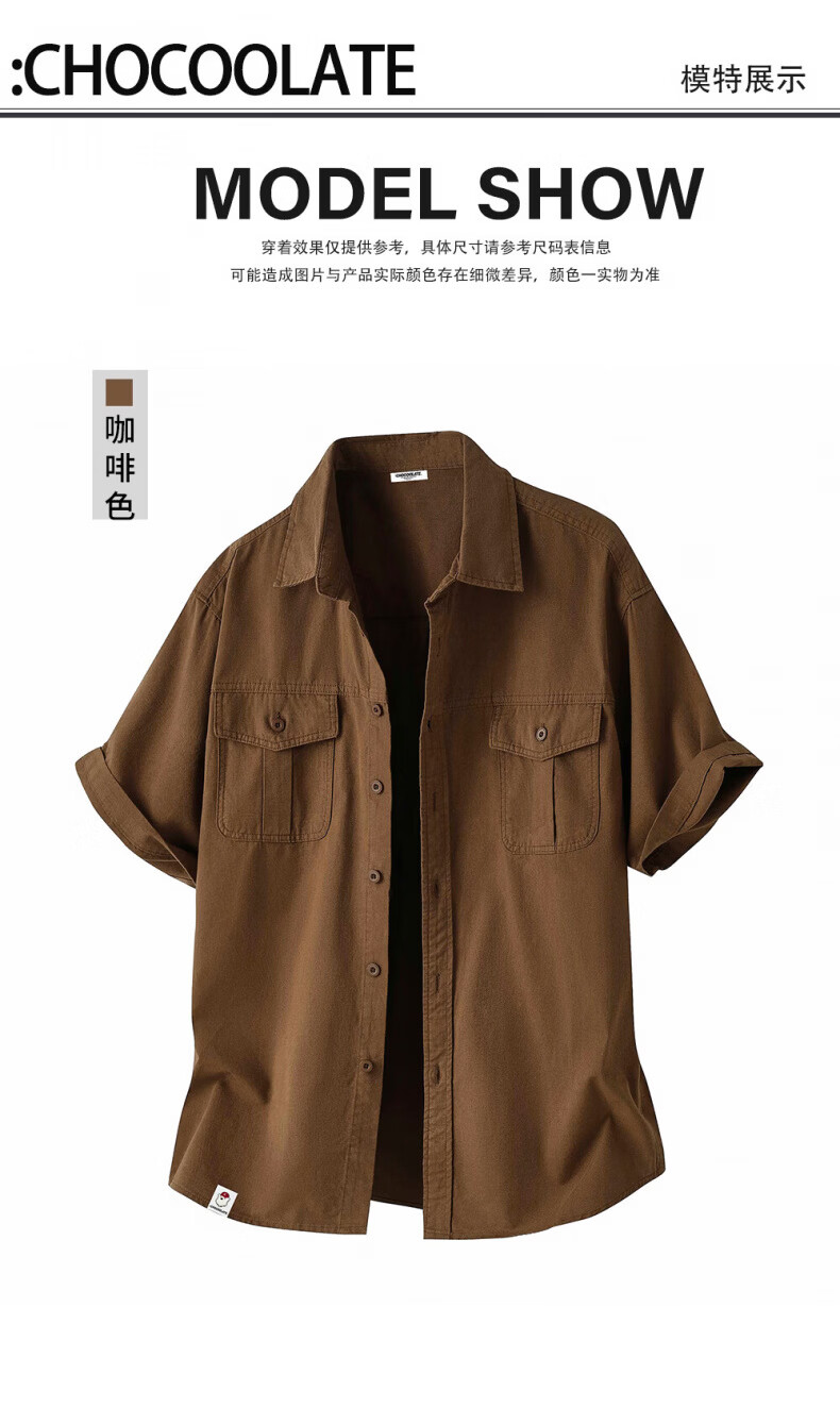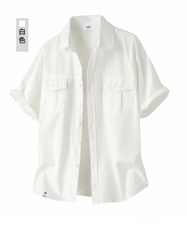 CHOCOOLATE it workwear short-sleeved shirt for men 2026 summer American multi-pocket pure cotton retro shirt white XL recommended 140-160Jin Jin equals 0.5 kg