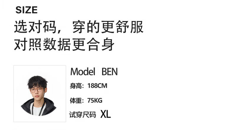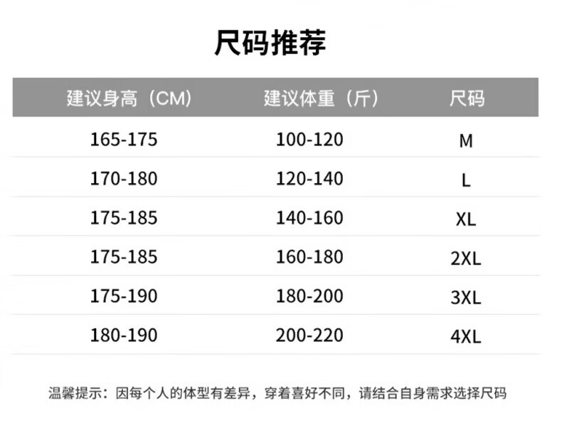 China (cm) 165 / 88-90 170 / 96-98 175 / 108-110 180 / 118-122 185 / 126-130