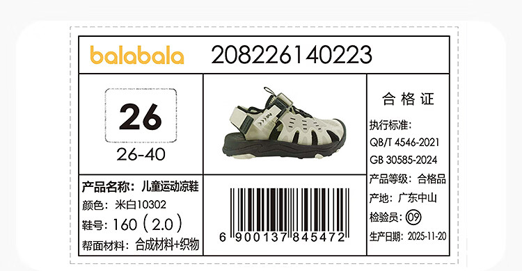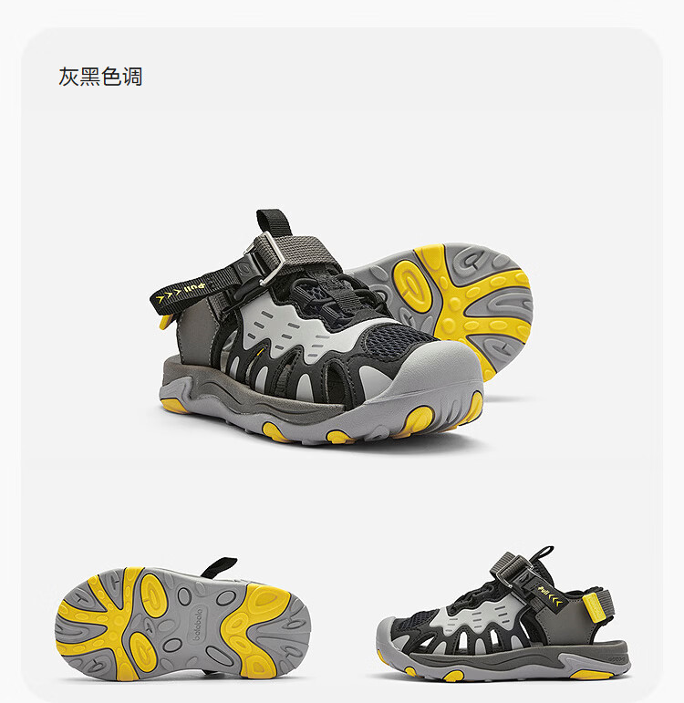 BALABALA balaOne children's shoes, children's sandals, boys' and girls' sports shoes, 2026 summer new outdoor shoes, gray and black tone 00429 30 (foot length 18.3-18.7/inner length 19.6)