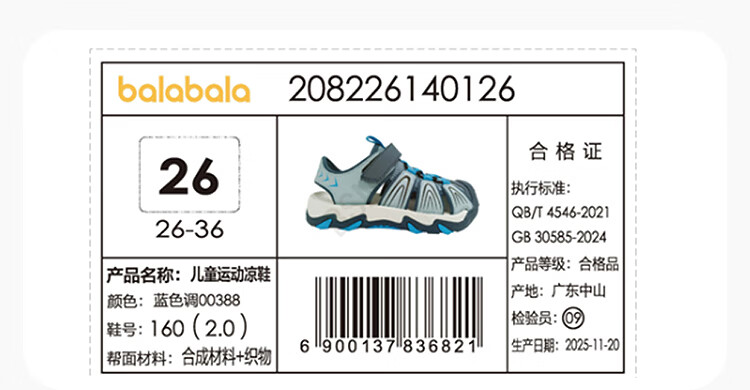Bala Bala One children's shoes children's sandals boys' sports shoes 2026 Xia Xin outdoor toe-toe shoes blue tone 00388 28 (foot length 16.8-17.2/inner length 18.3)