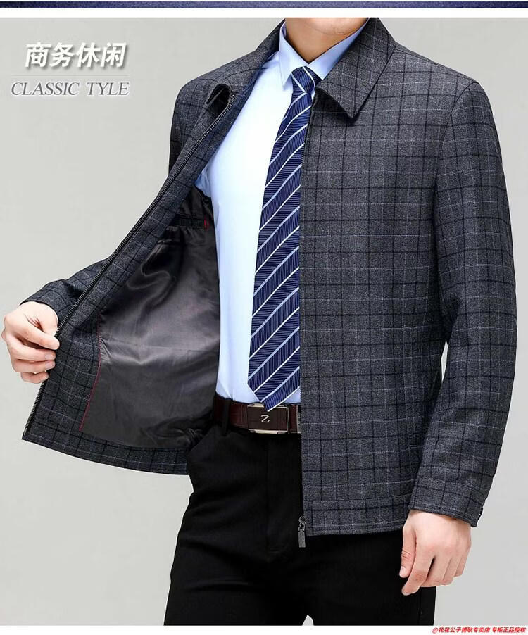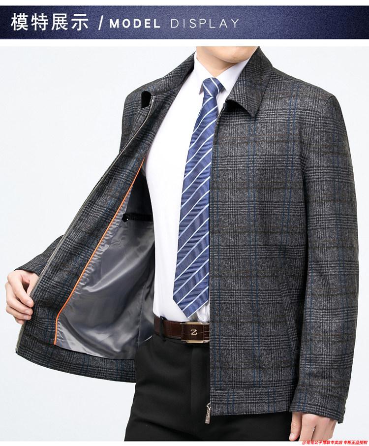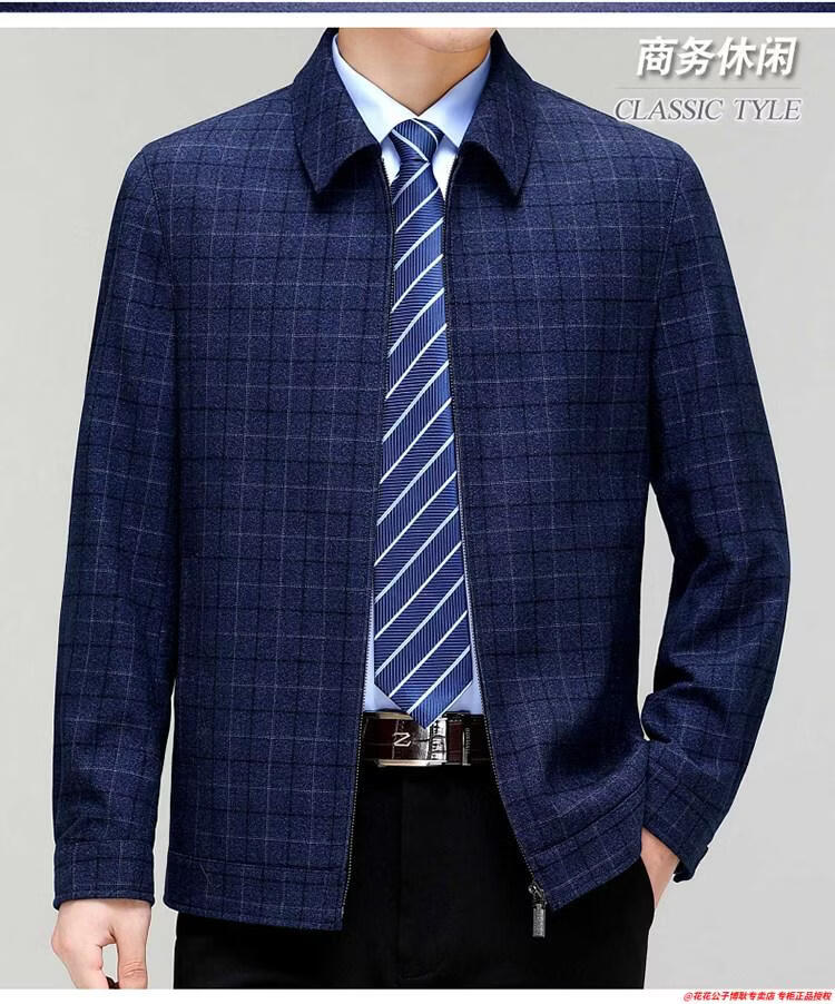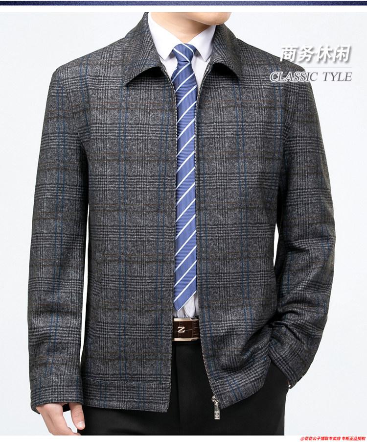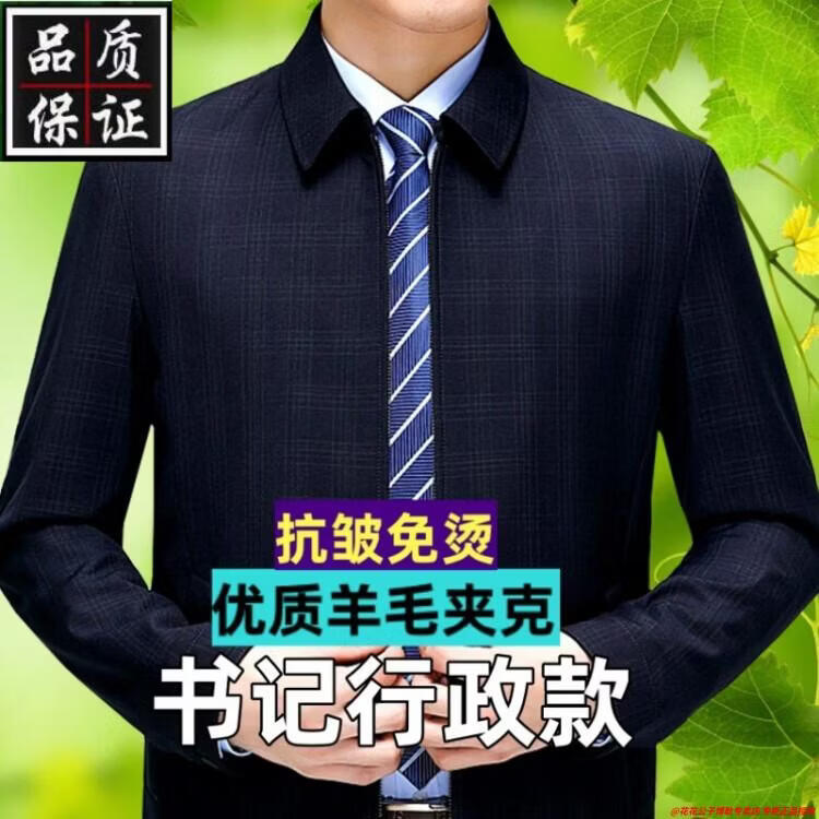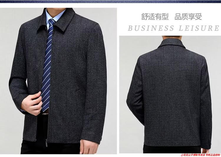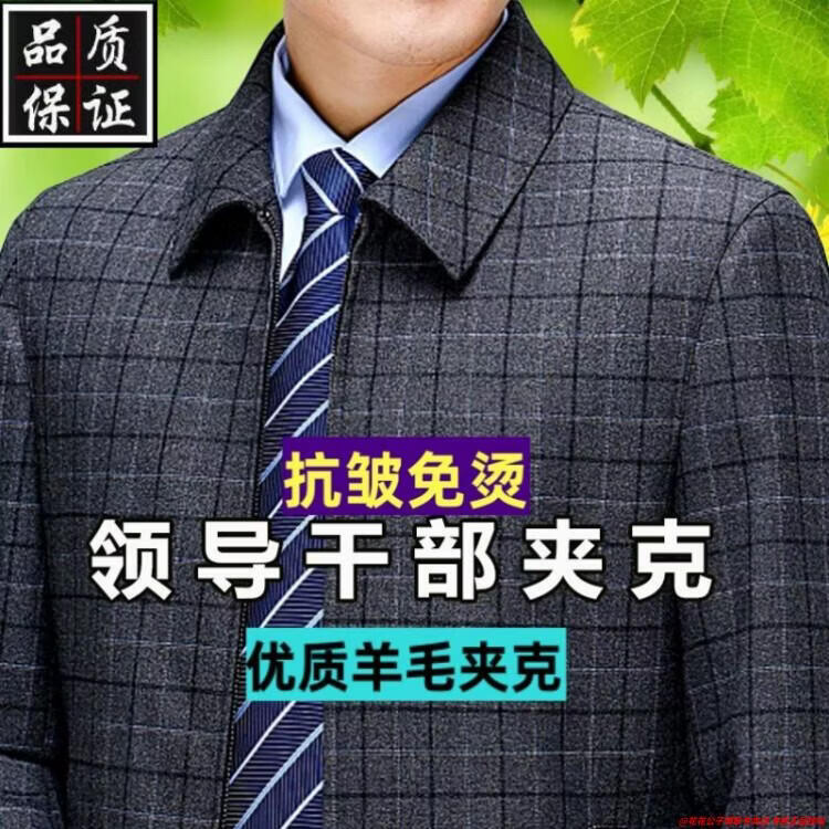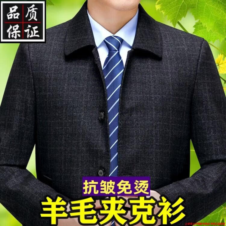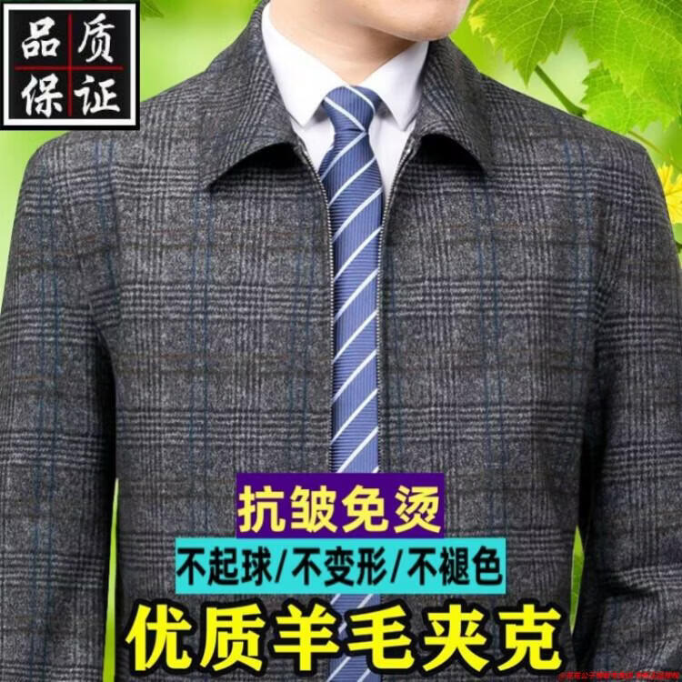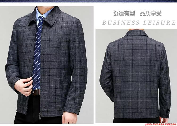 Playboy high-end administrative wool jacket men's spring and autumn new style middle-aged and elderly civil servants and leading cadres non-iron large size jacket mature 2312 gray grid 3XL 190