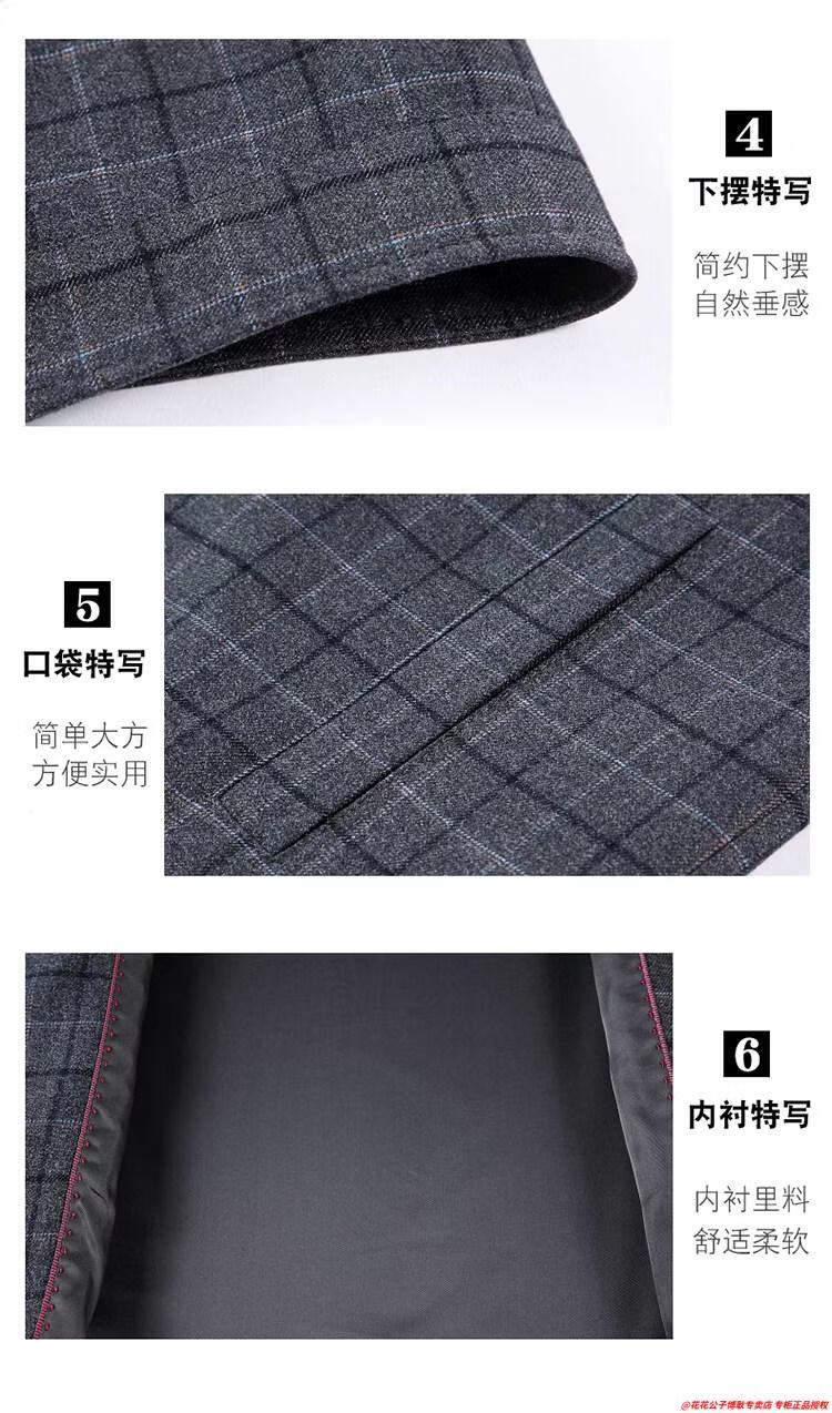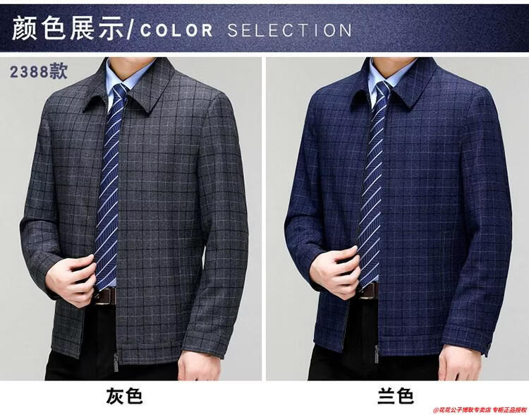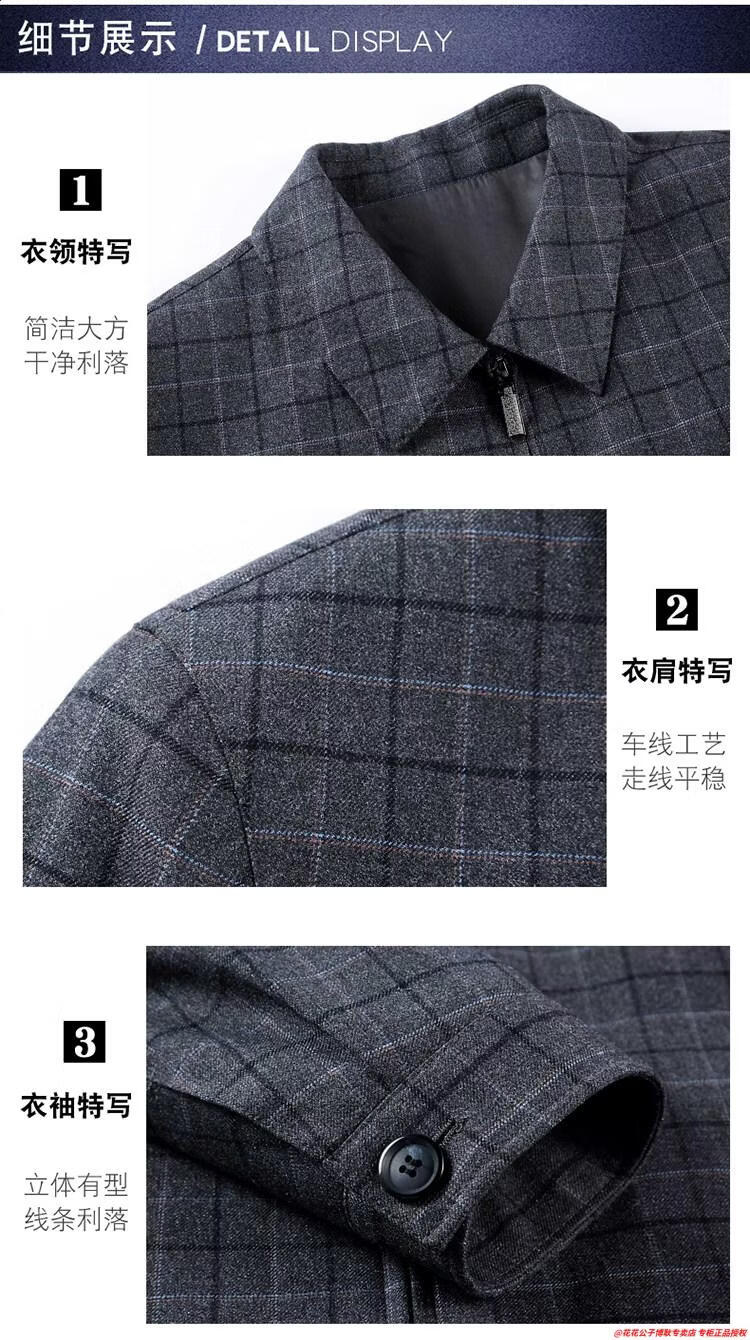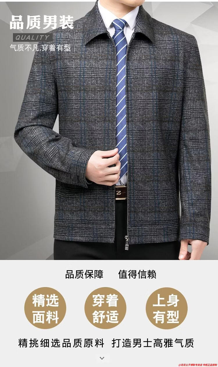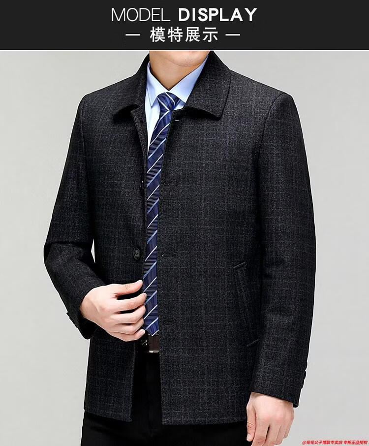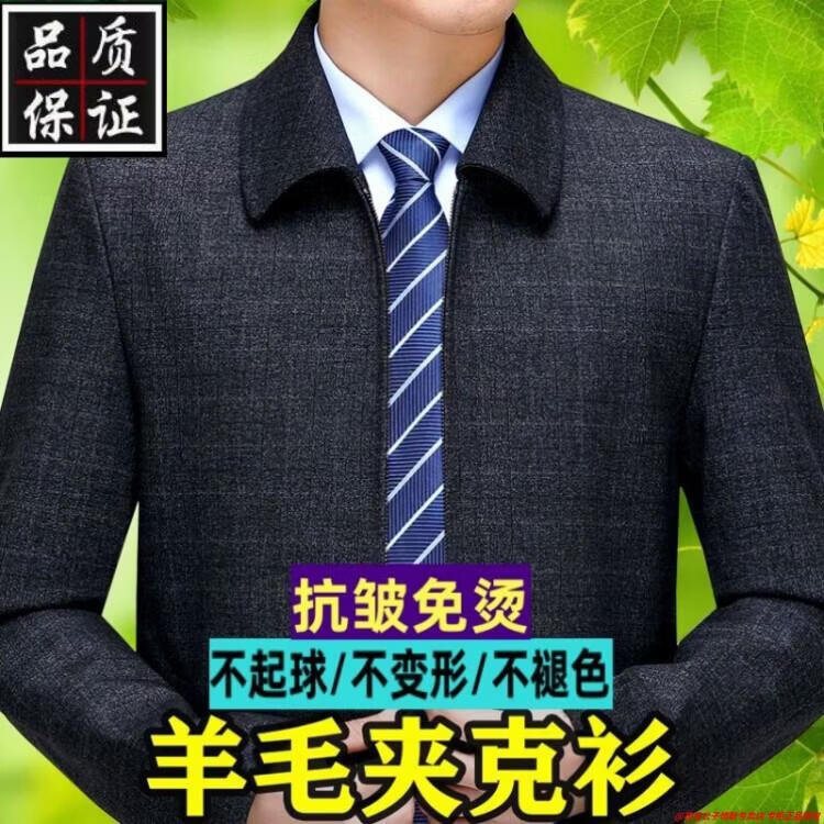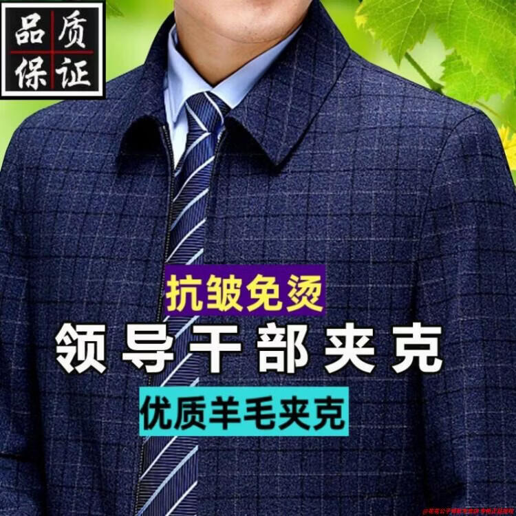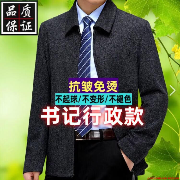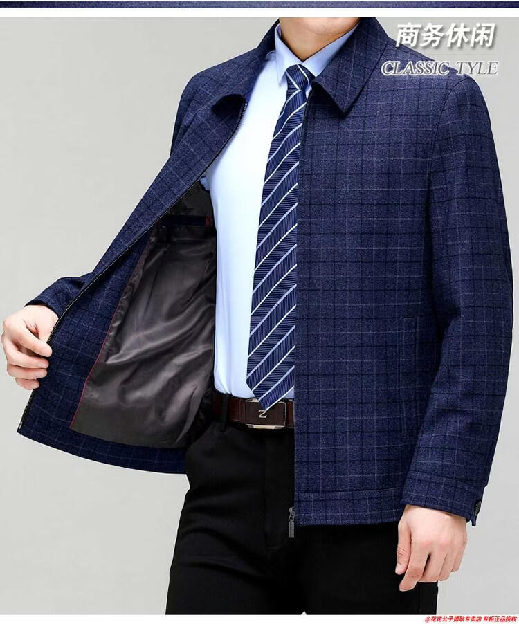 Playboy high-end administrative wool jacket men's spring and autumn new style middle-aged and elderly civil servants and leading cadres non-iron large size jacket mature 2312 gray grid 3XL 190