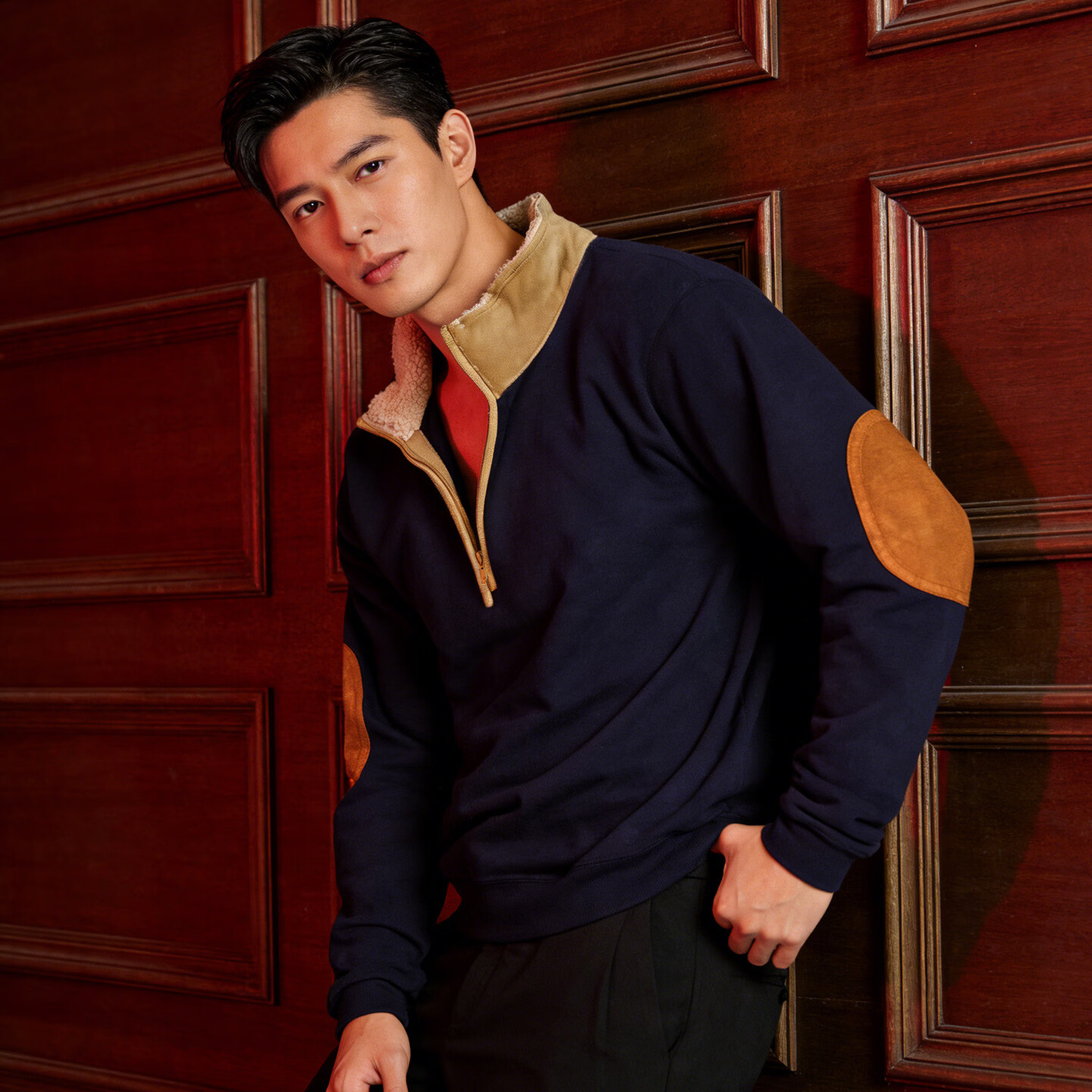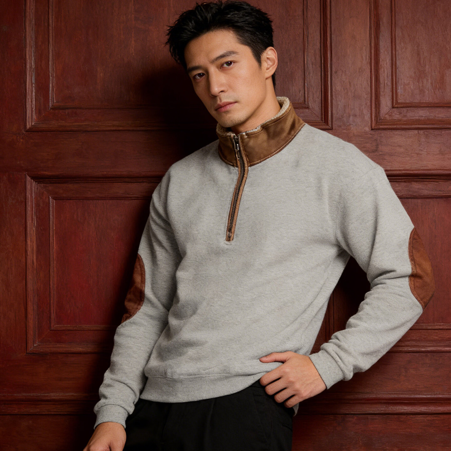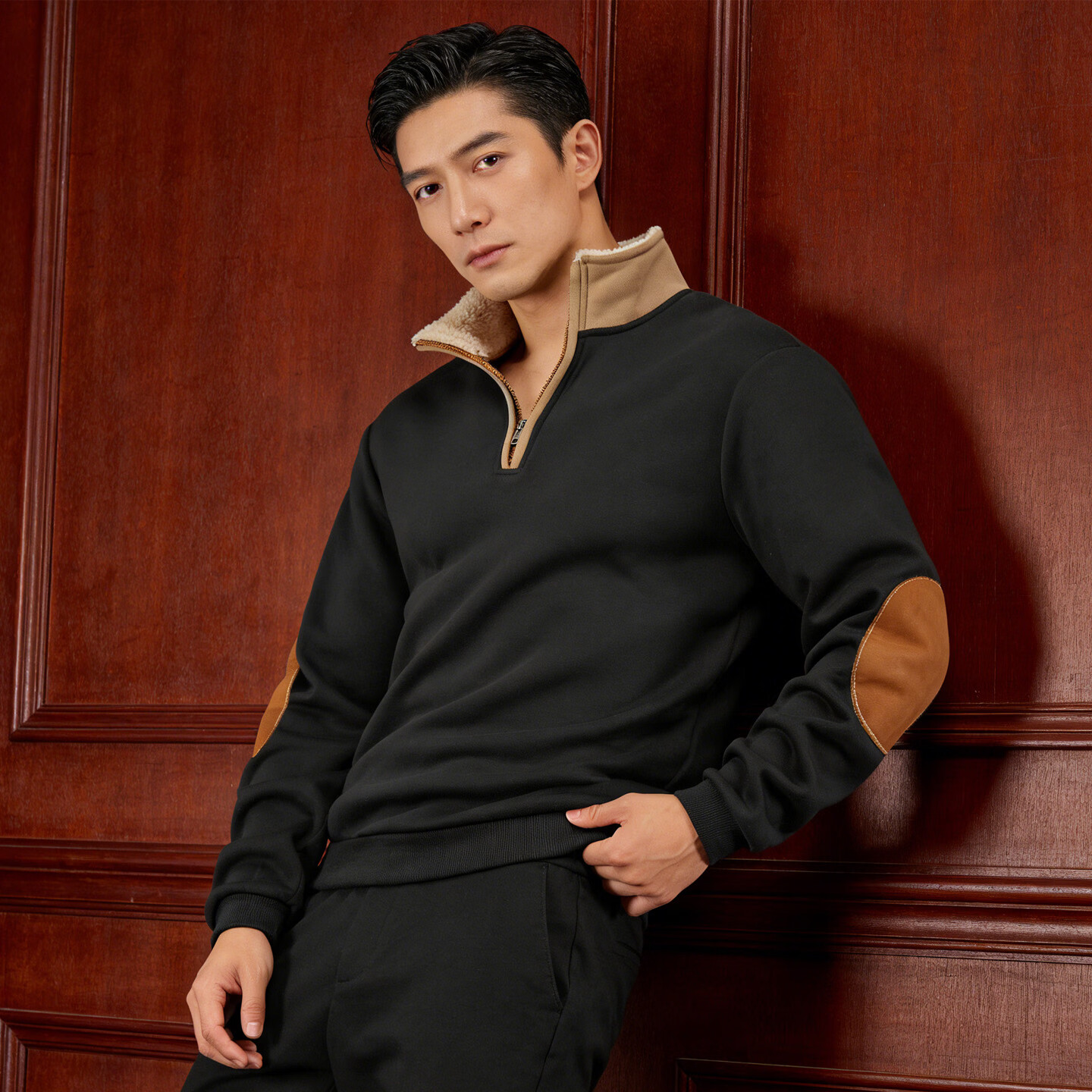 Playboy (PLAYBOY) 2026 European and American new style sweatshirt retro splicing embroidery half-cardigan men's long-sleeved sweatshirt outdoor casual sweatshirt black S 55-70