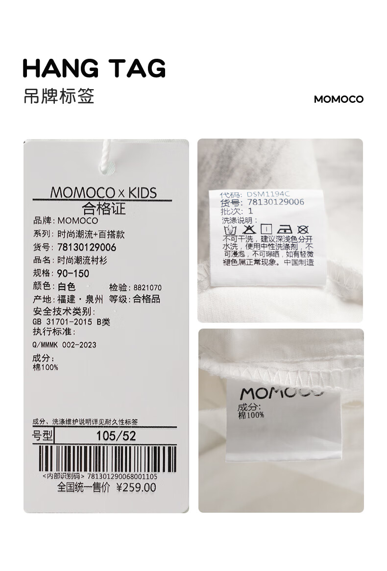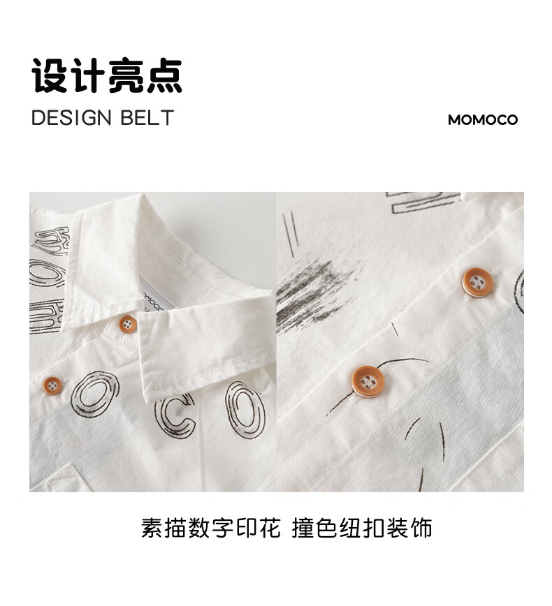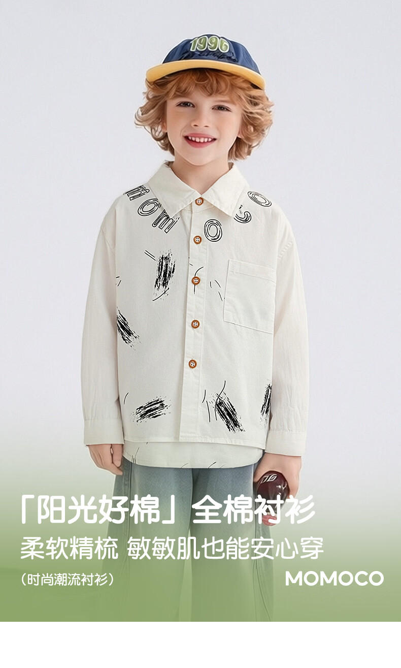 Mami Maka (MOMOCO) children's clothing boys' shirts 2026 spring fashion trendy shirts for middle and large children white 006 90
