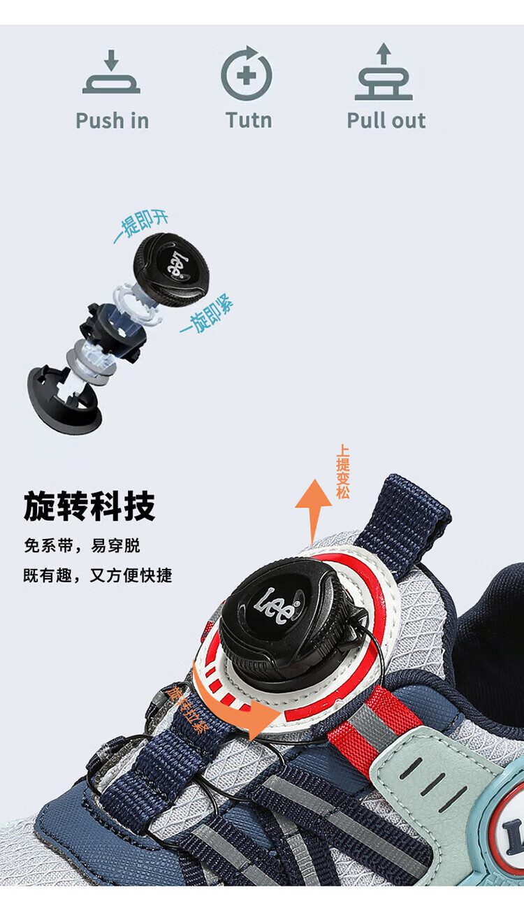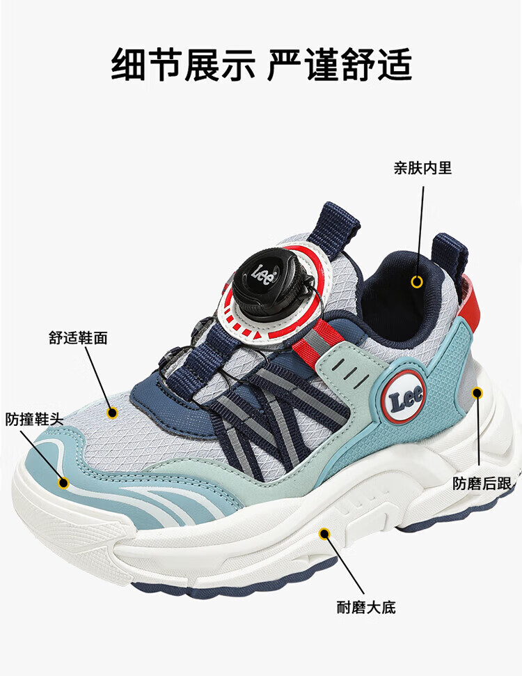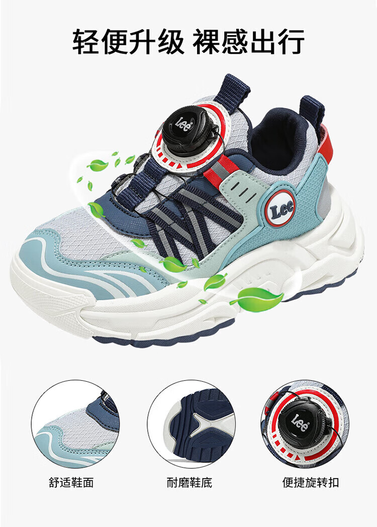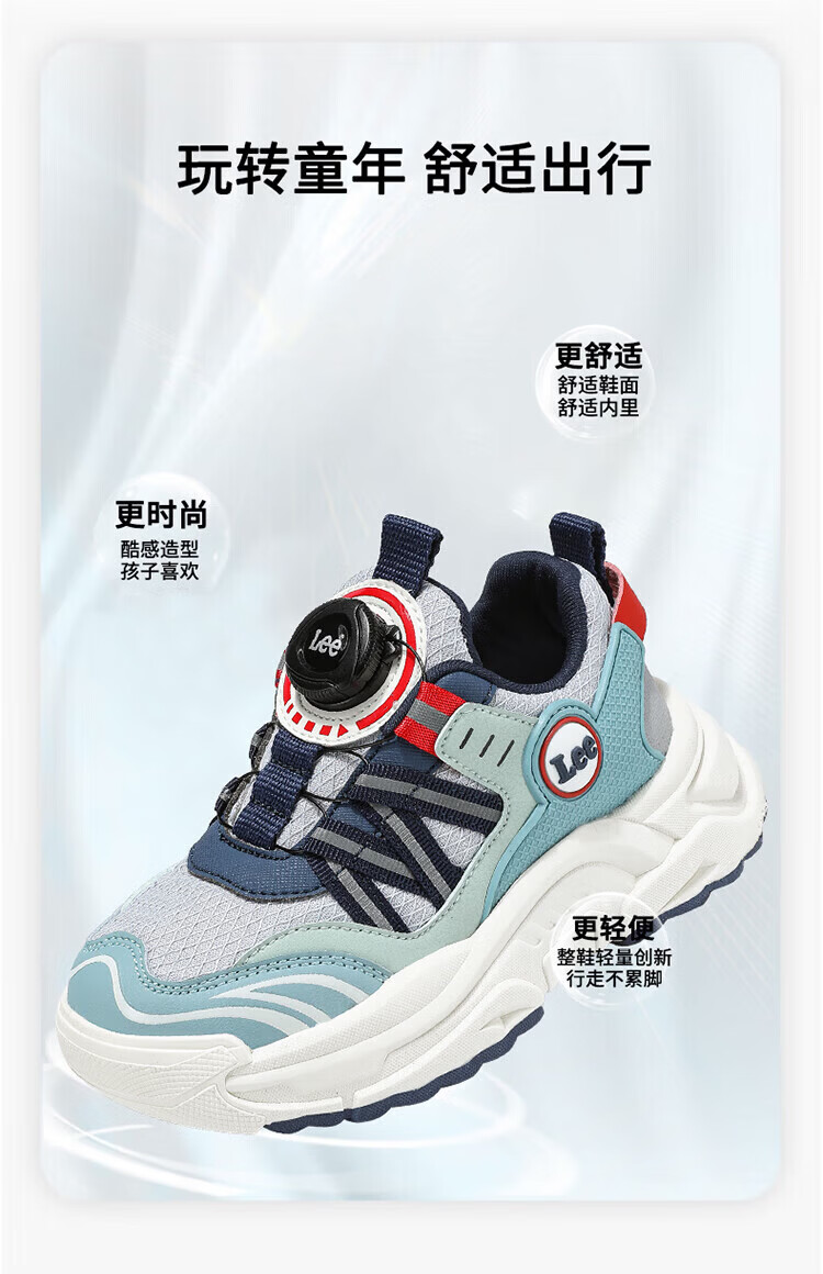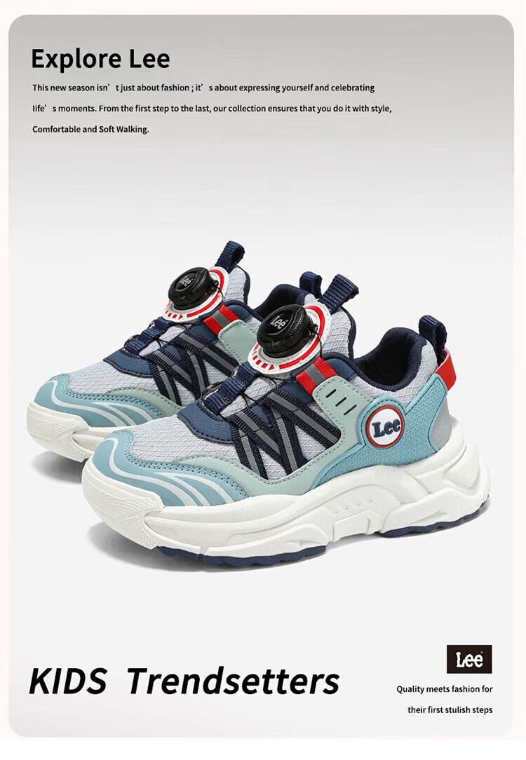 Lee children's shoes spring new all-match casual shoes boys sports comfortable sneakers dad shoes girls 50% off rice blue 36 recommended foot length 219mm