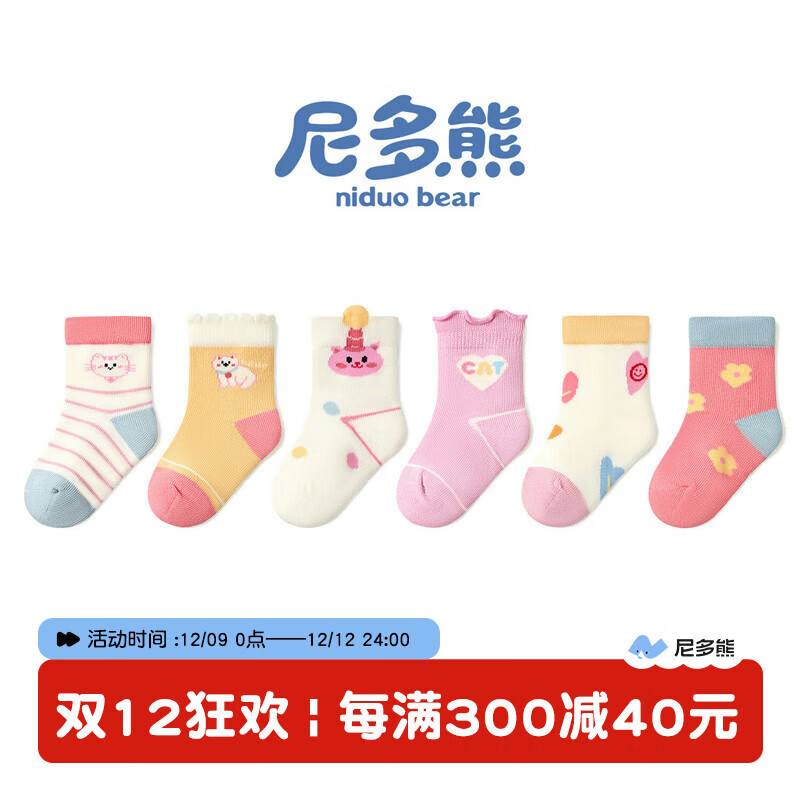 Niduoxiong Children's Socks Winter Cotton Socks Cute Baby Socks Boneless Socks for Girls Spring and Autumn Six Pairs AW2426 Spring and Autumn Style 6 Pairs June-December (Suitable for Feet Length 9-11cm)