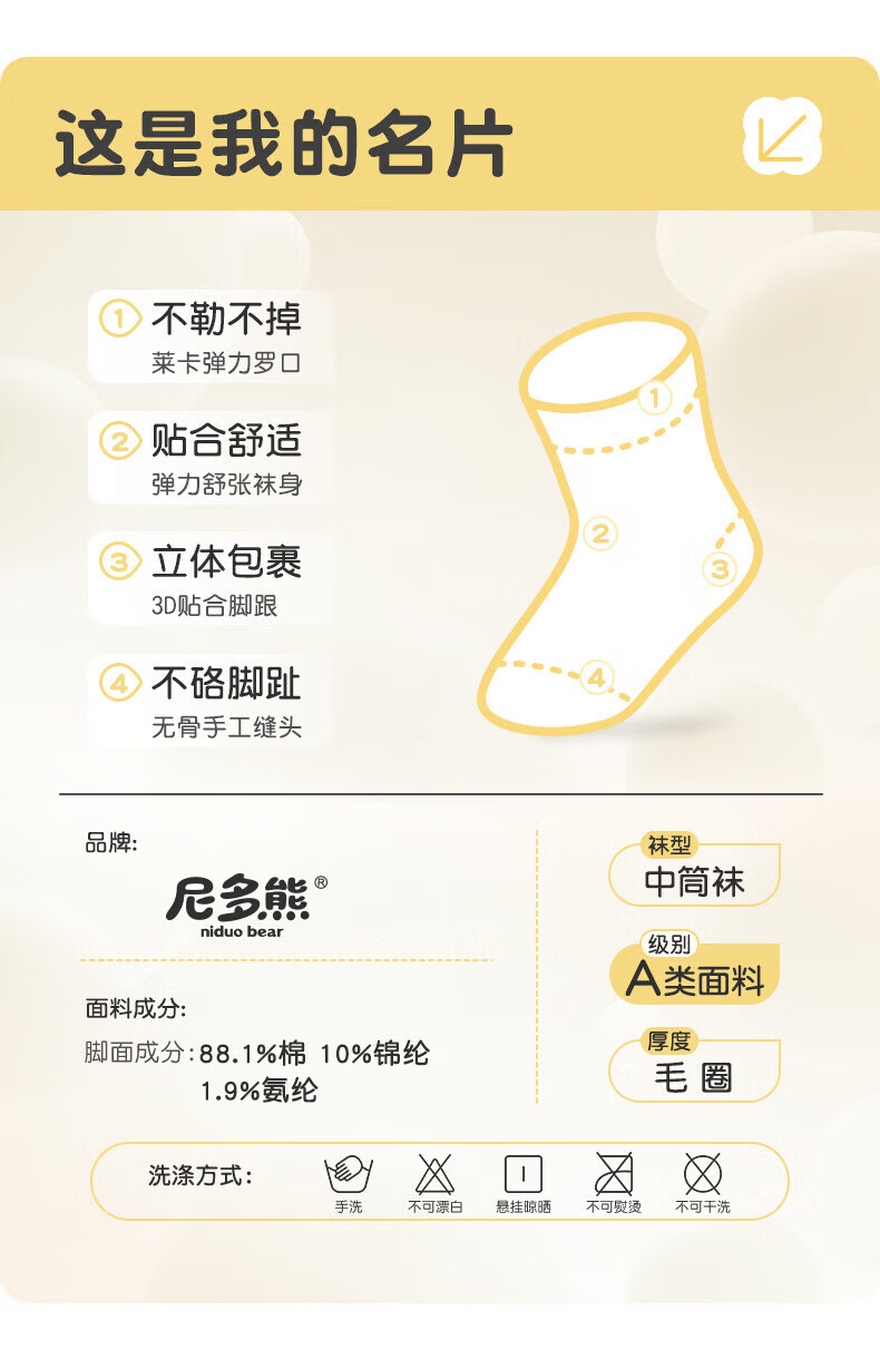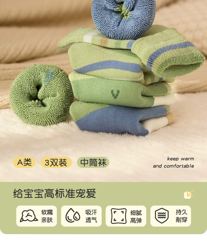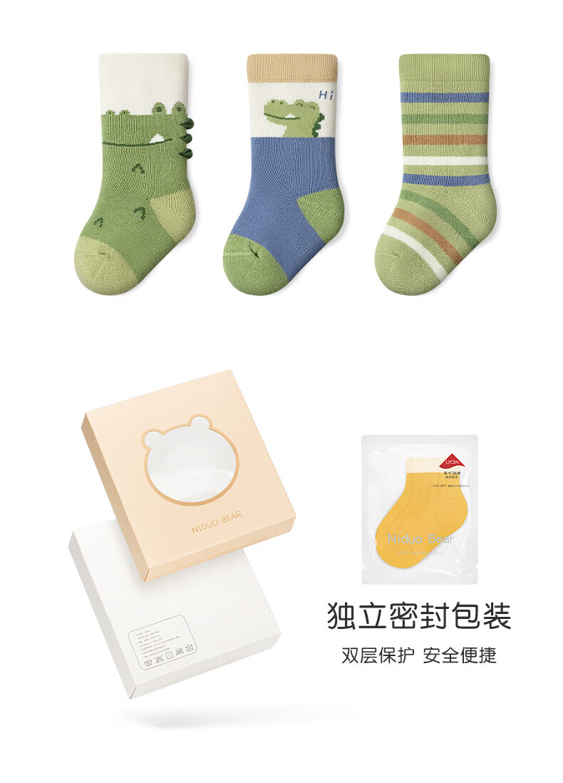 Niduoxiong trial pack, a pair of children's socks, boys' autumn and winter cotton socks, baby socks, spring and autumn baby socks, cotton socks, boys' socks trial pack, 1 pair, 6-12 months (suitable for feet 9-11cm long)