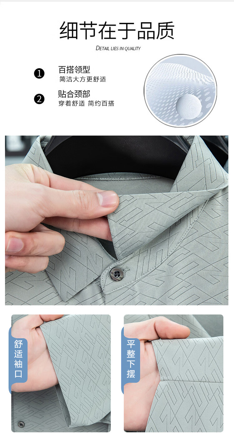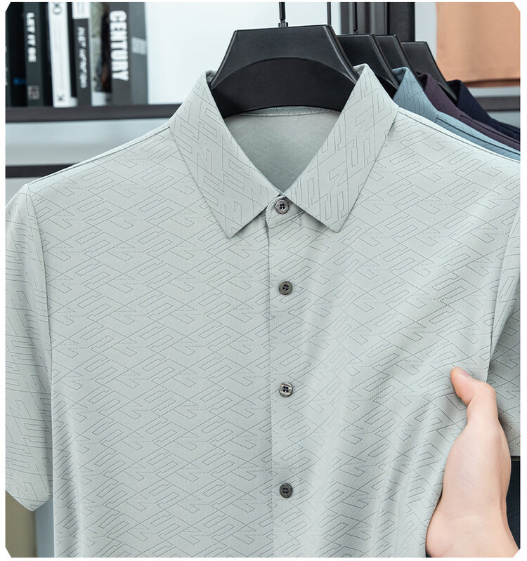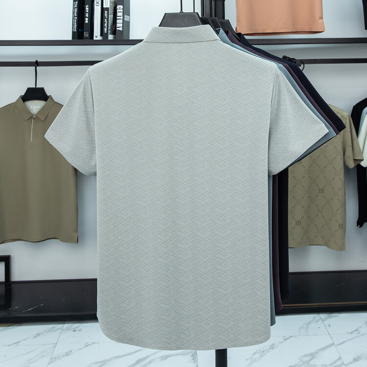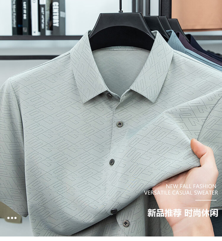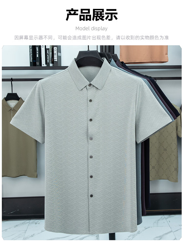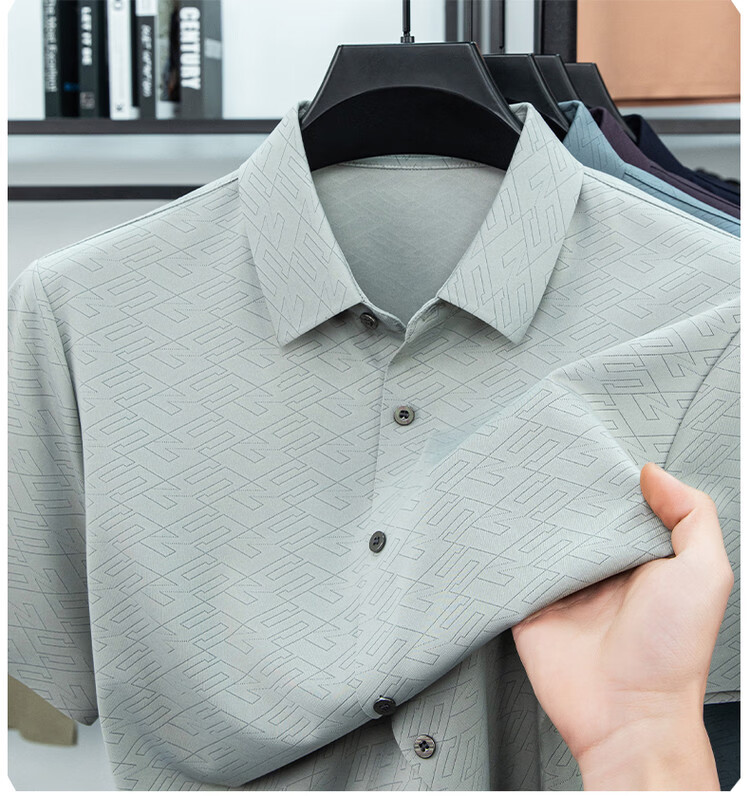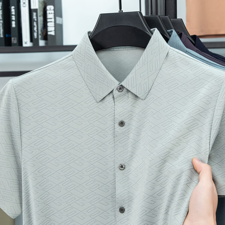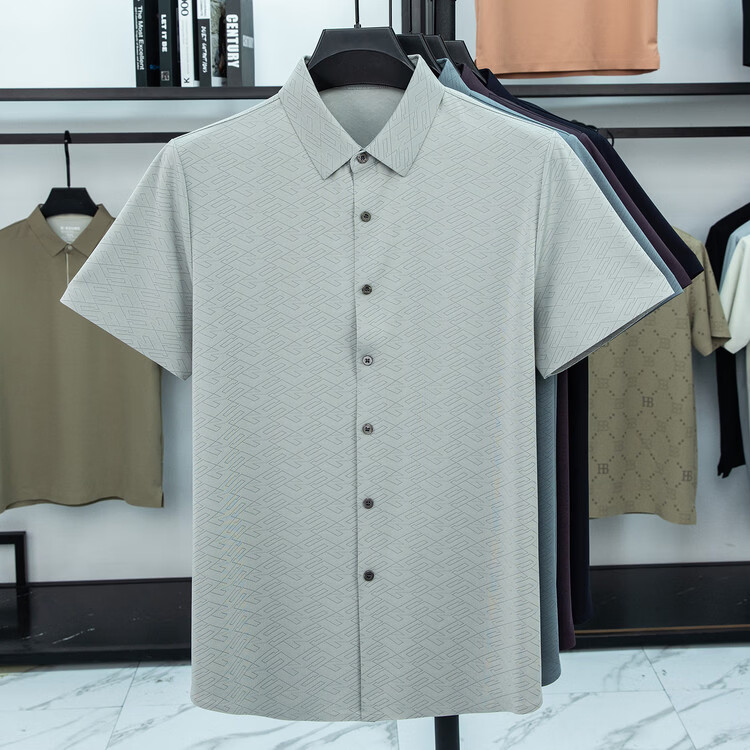 LILANZ summer business casual seamless short-sleeved shirt men's thin breathable ice silk shirt trendy men's loose top white gray M 105