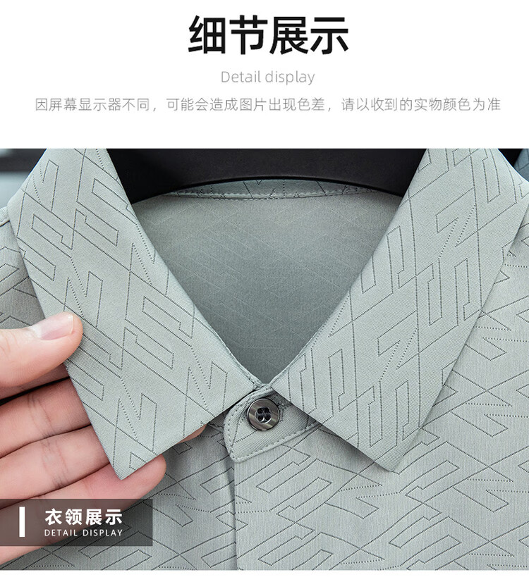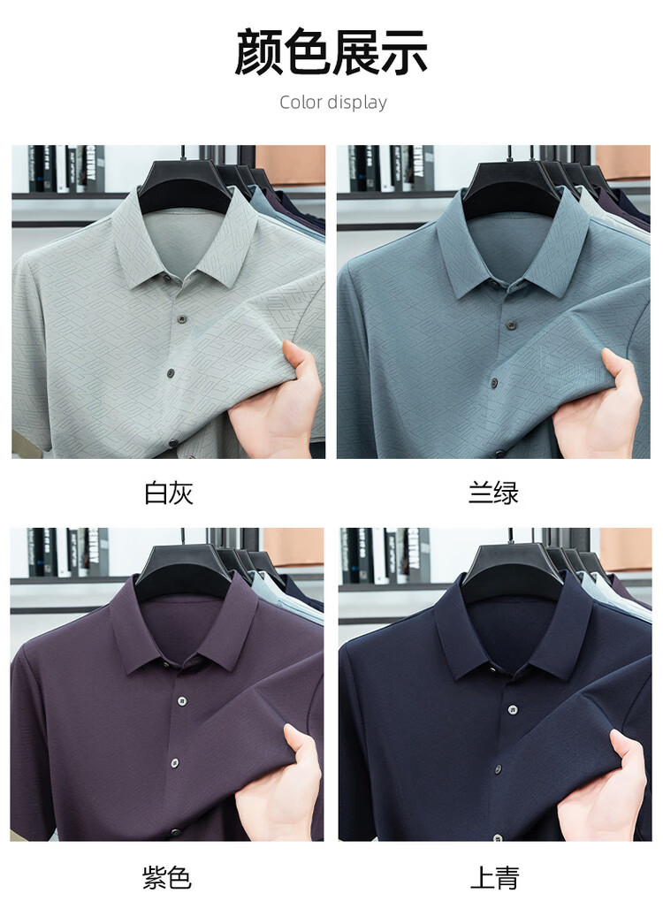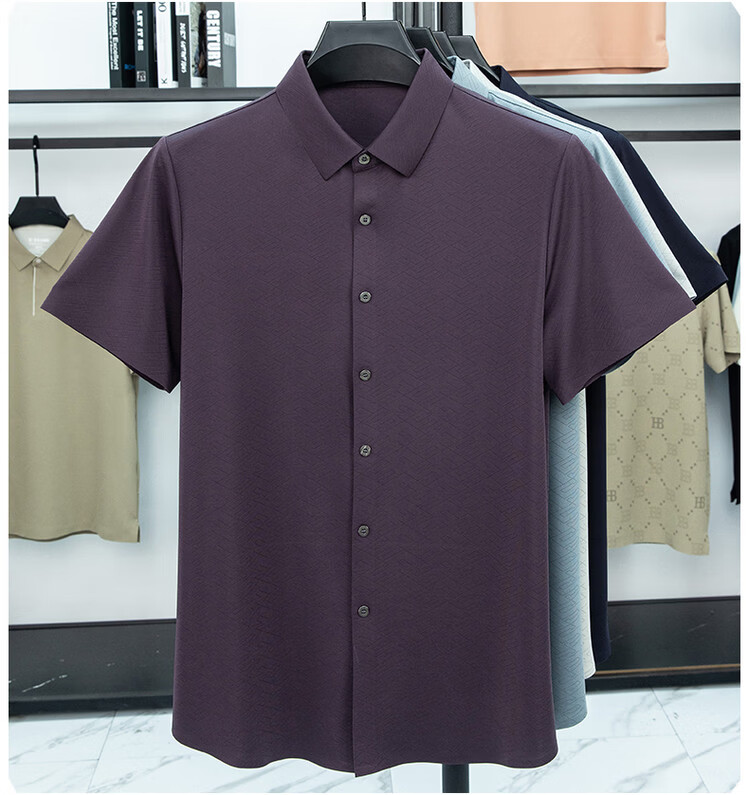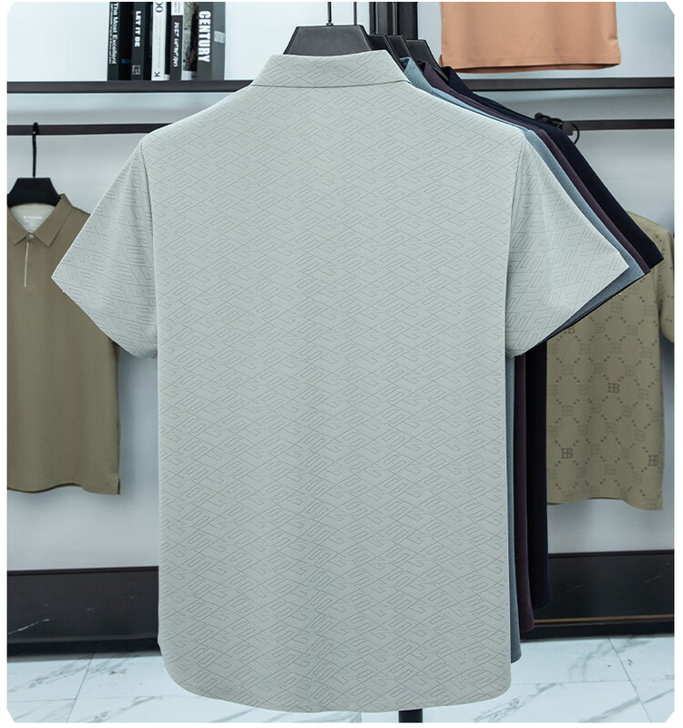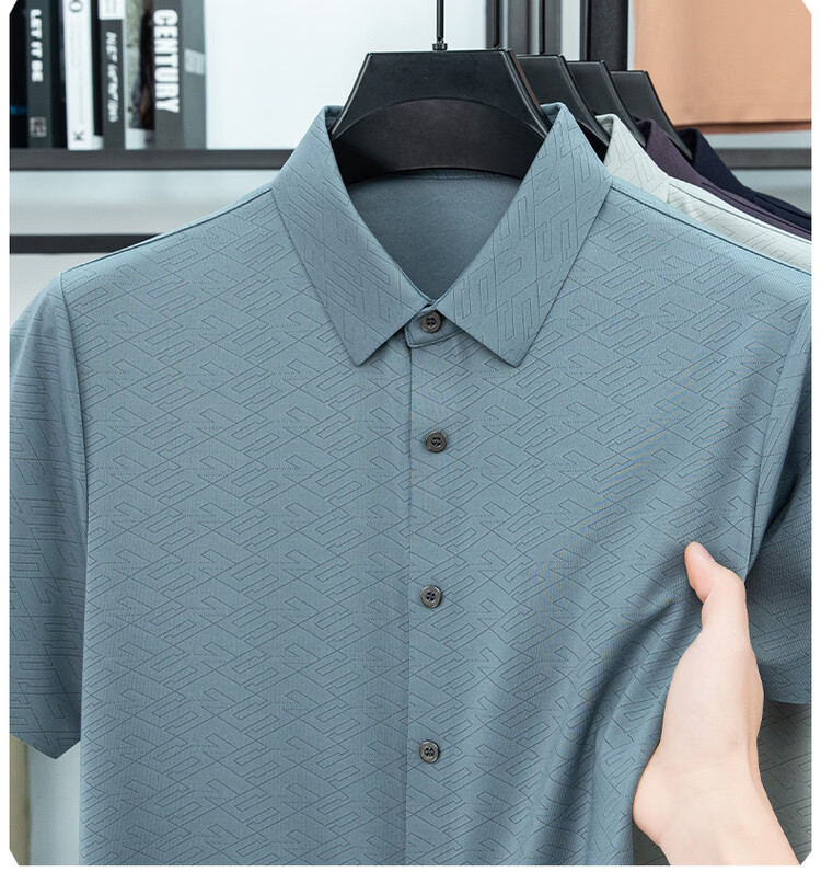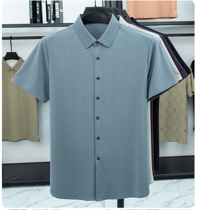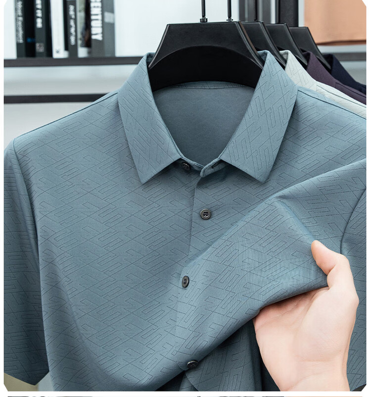LILANZ summer business casual seamless short-sleeved shirt men's thin breathable ice silk shirt trendy men's loose top white gray M 105