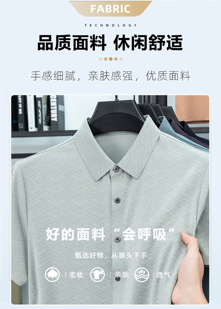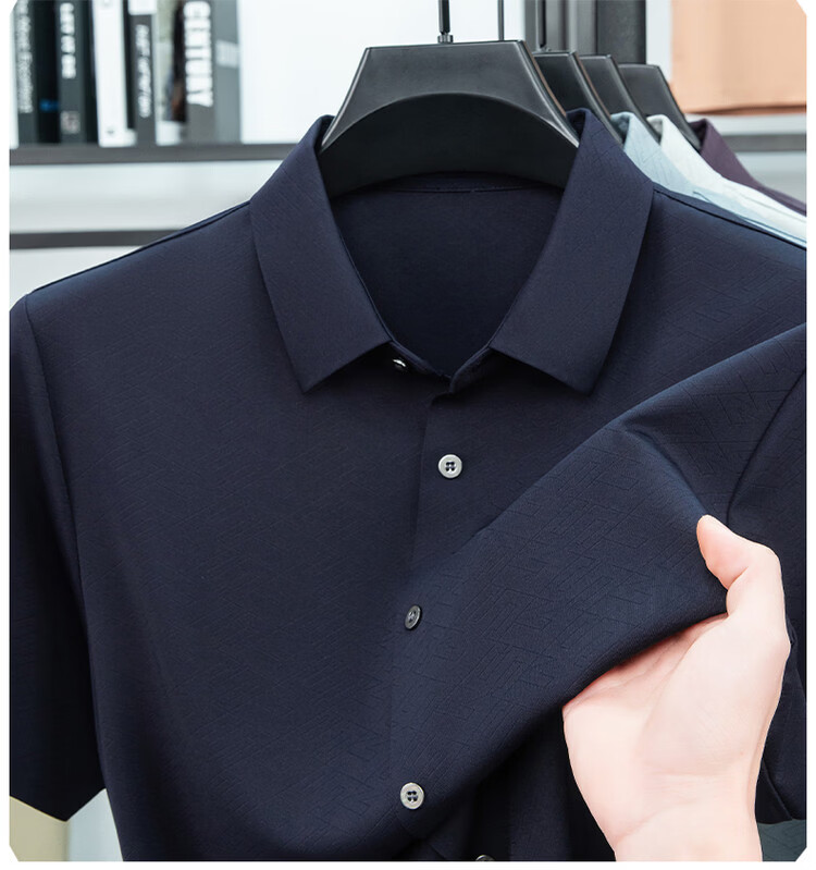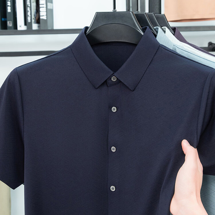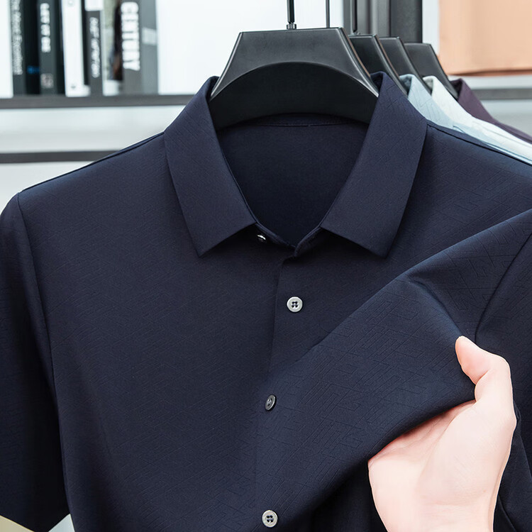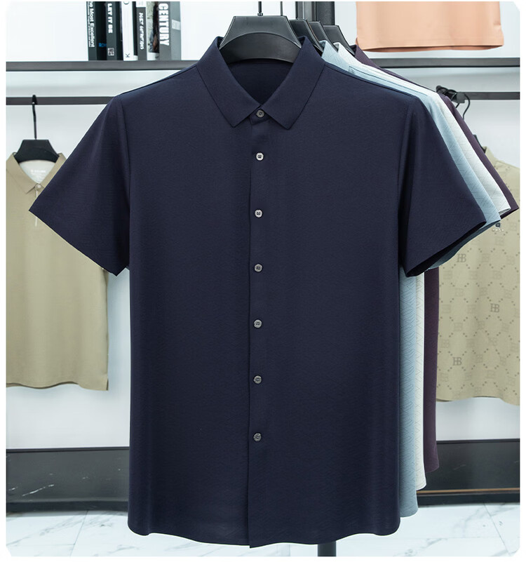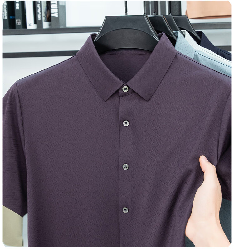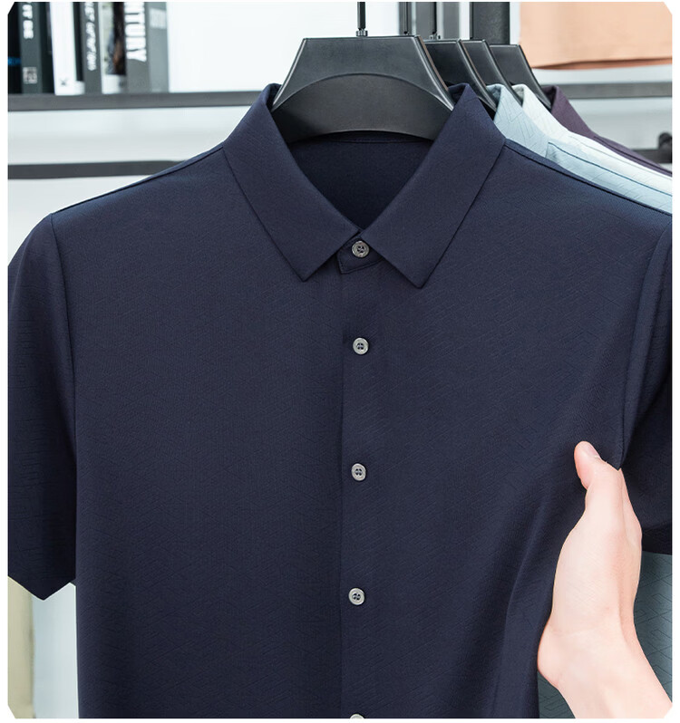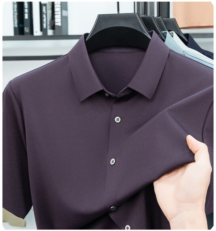LILANZ summer business casual seamless short-sleeved shirt men's thin breathable ice silk shirt trendy men's loose top white gray M 105