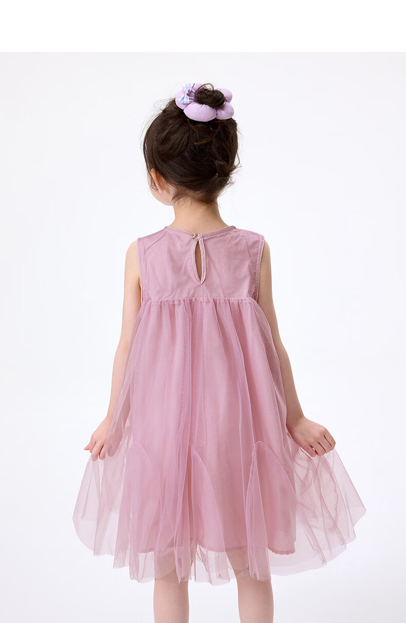 Xiaoyinman floral gauze skirt girls dress summer dress small and medium-sized children fashionable princess dress thin breathable sleeveless A-line skirt pink 105