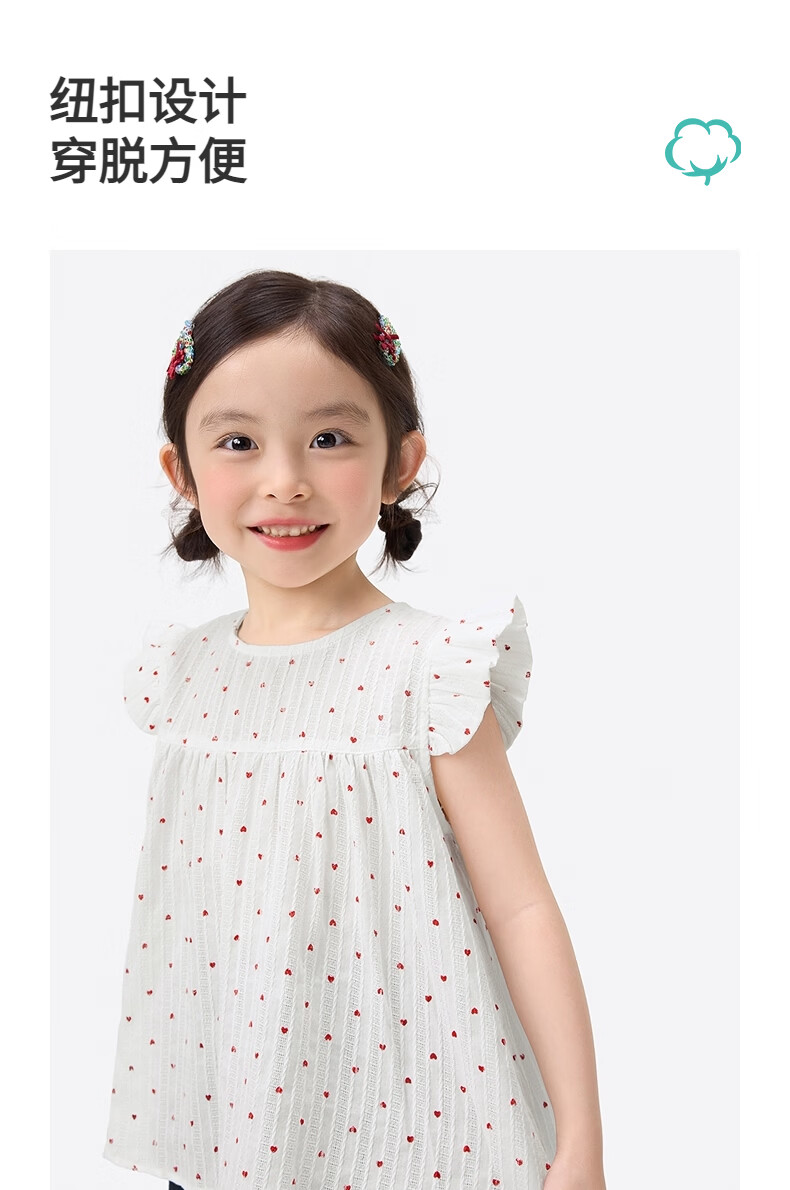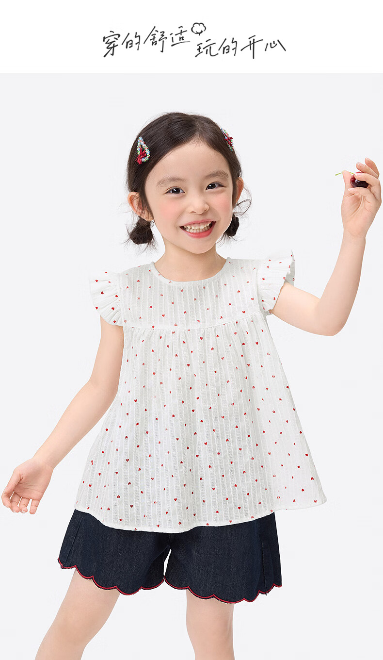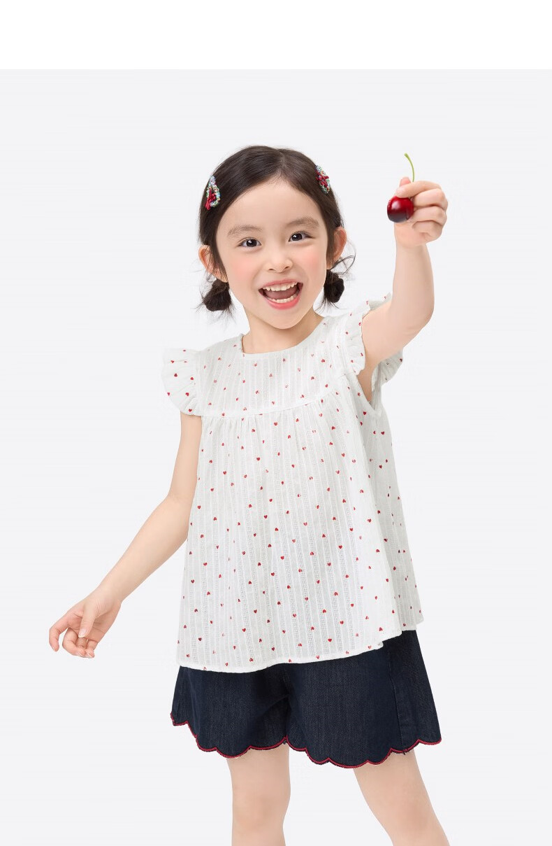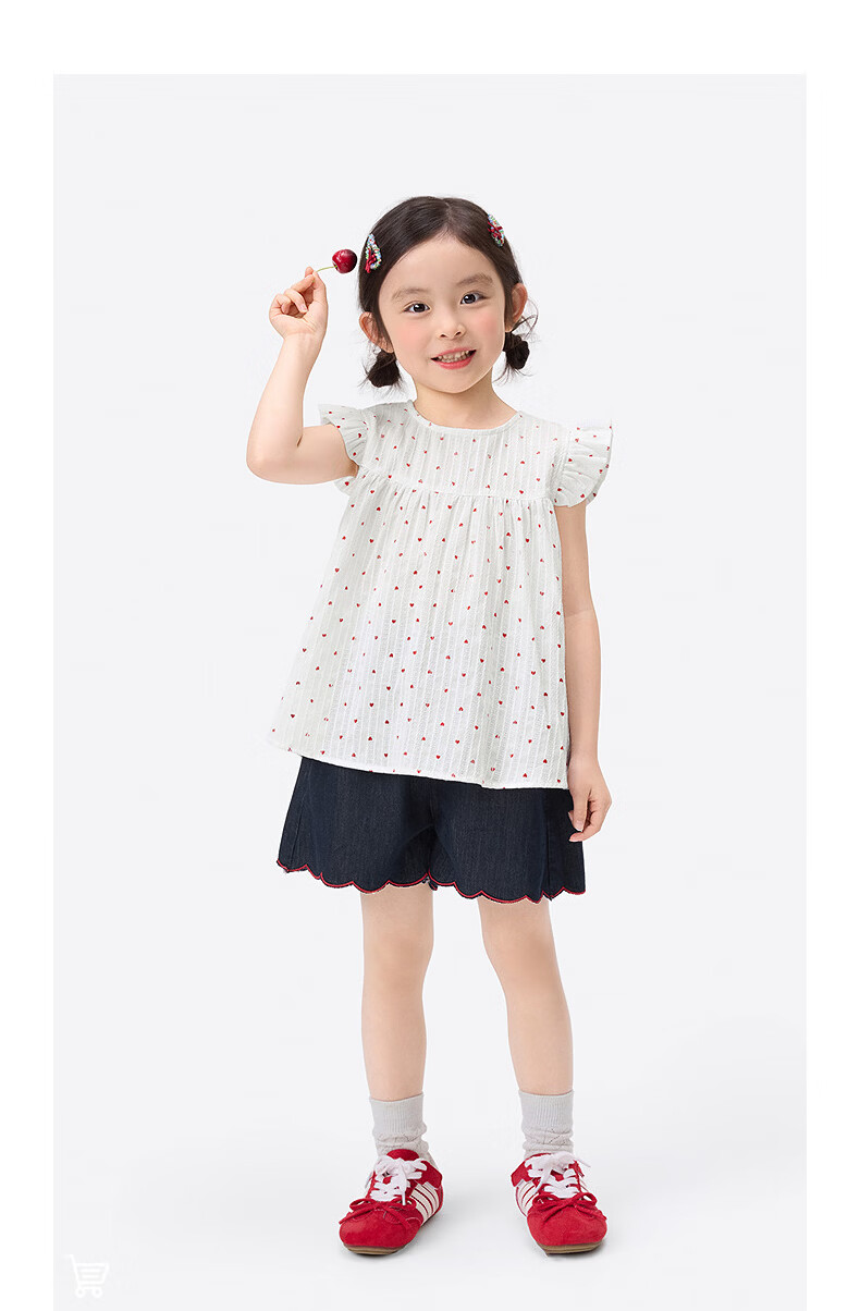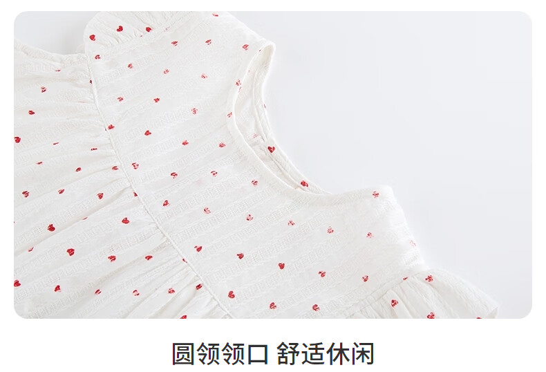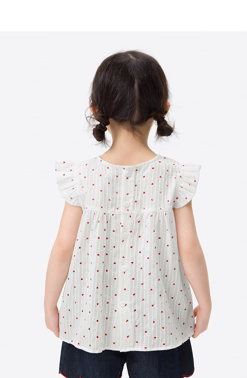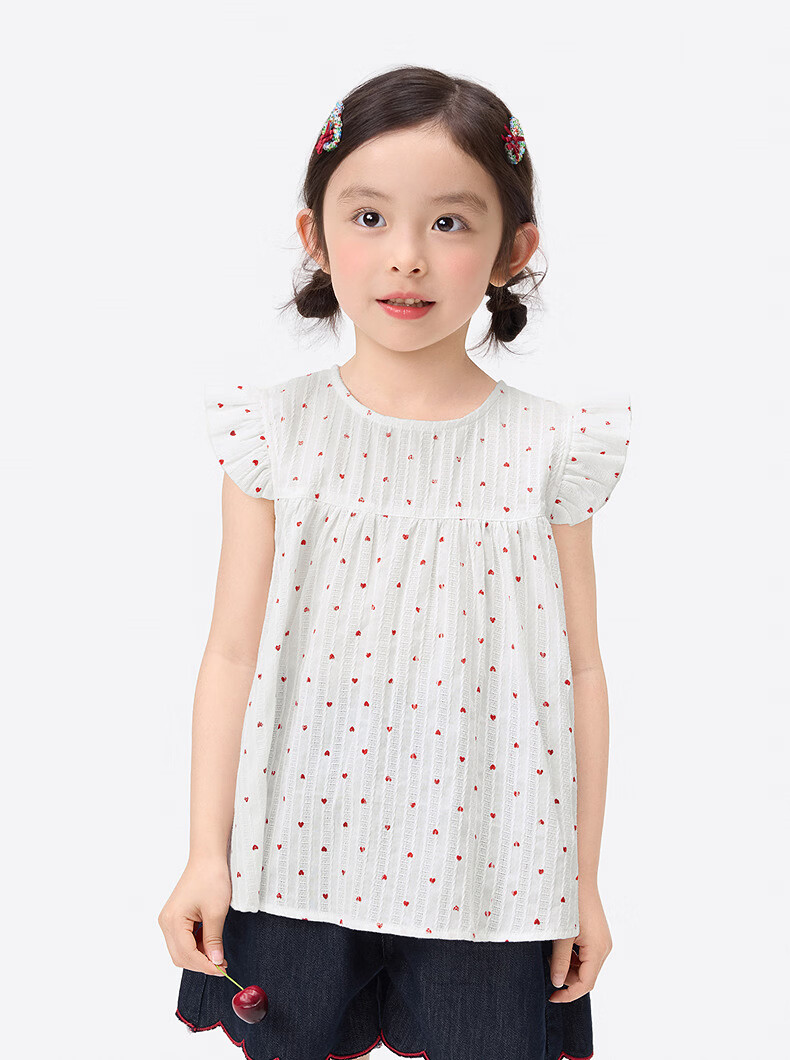 Xiaoyinman girls' small flying sleeve baby doll's shirt 26 summer clothes for children and middle-aged children sweet and fashionable love printed small shirt thin shirt white 105
