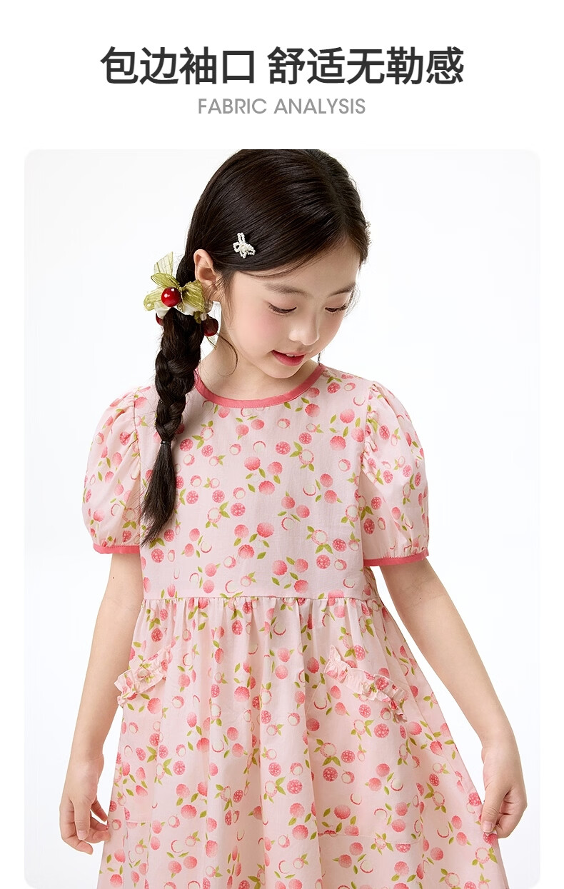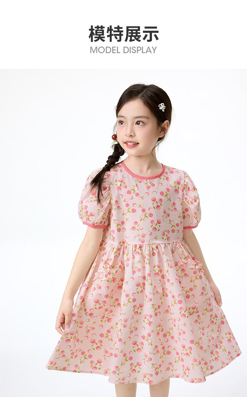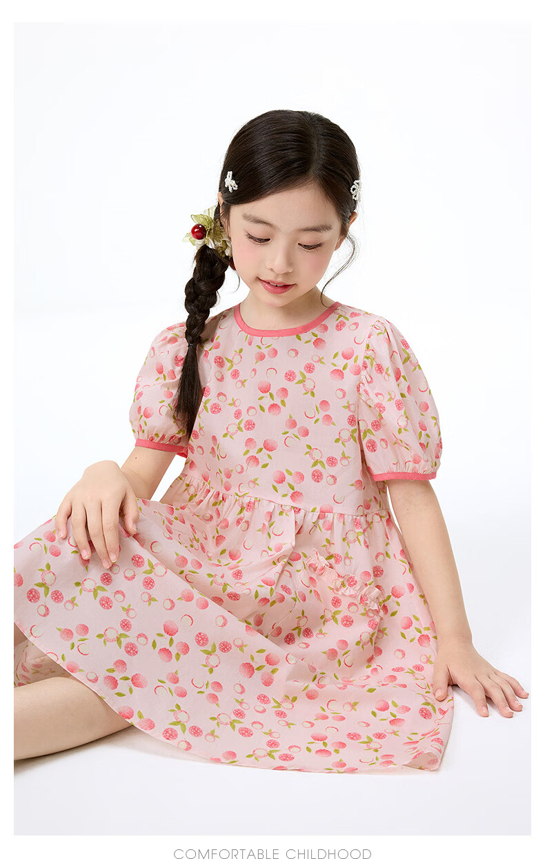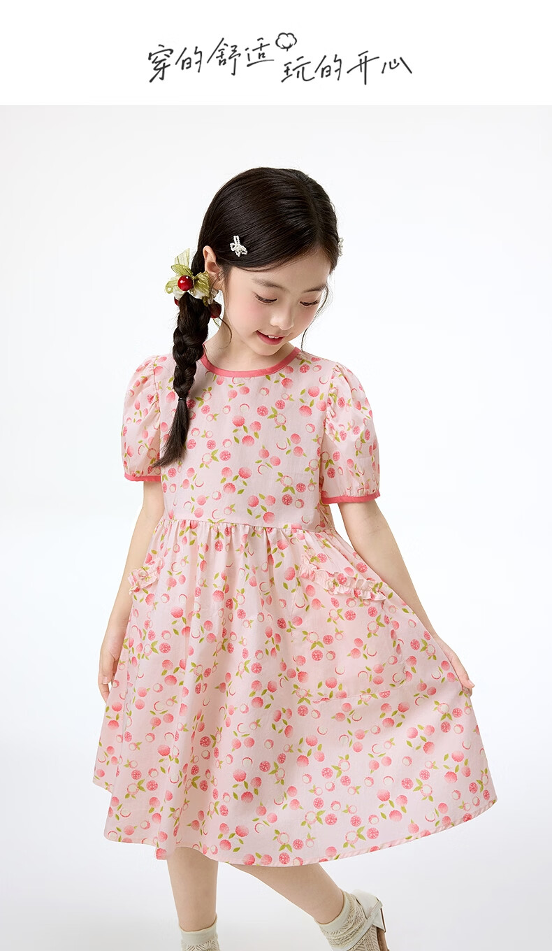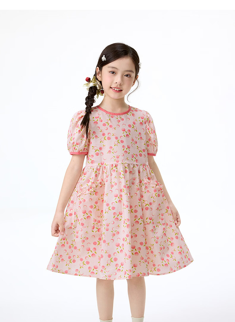 Xiaoyinman children's clothing girls pure cotton round neck dress 26 mid-summer big children casual comfortable breathable sweet skirt pink 130