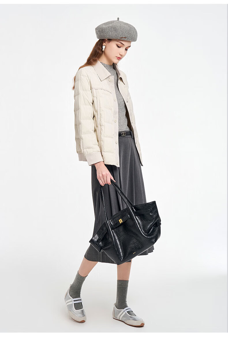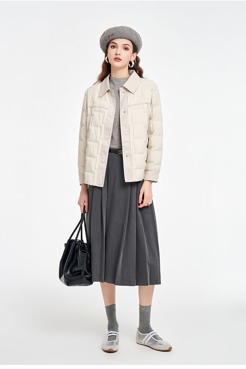 Giovanni 90 White Duck Down Casual Down Jacket Women 2026 Early Spring Lightweight Simple Versatile Down Jacket Pearl Gray S