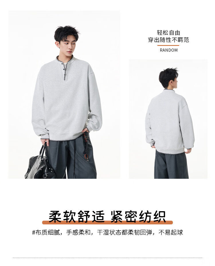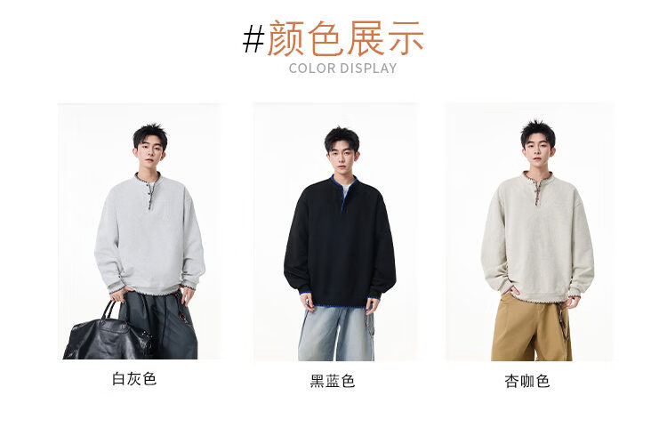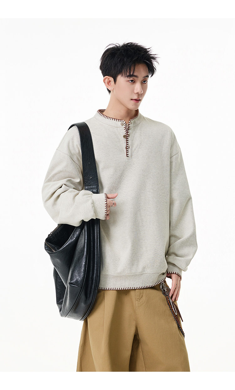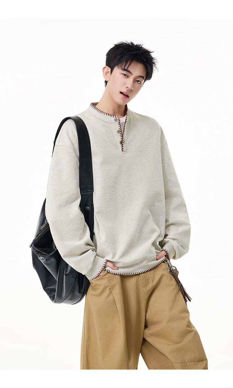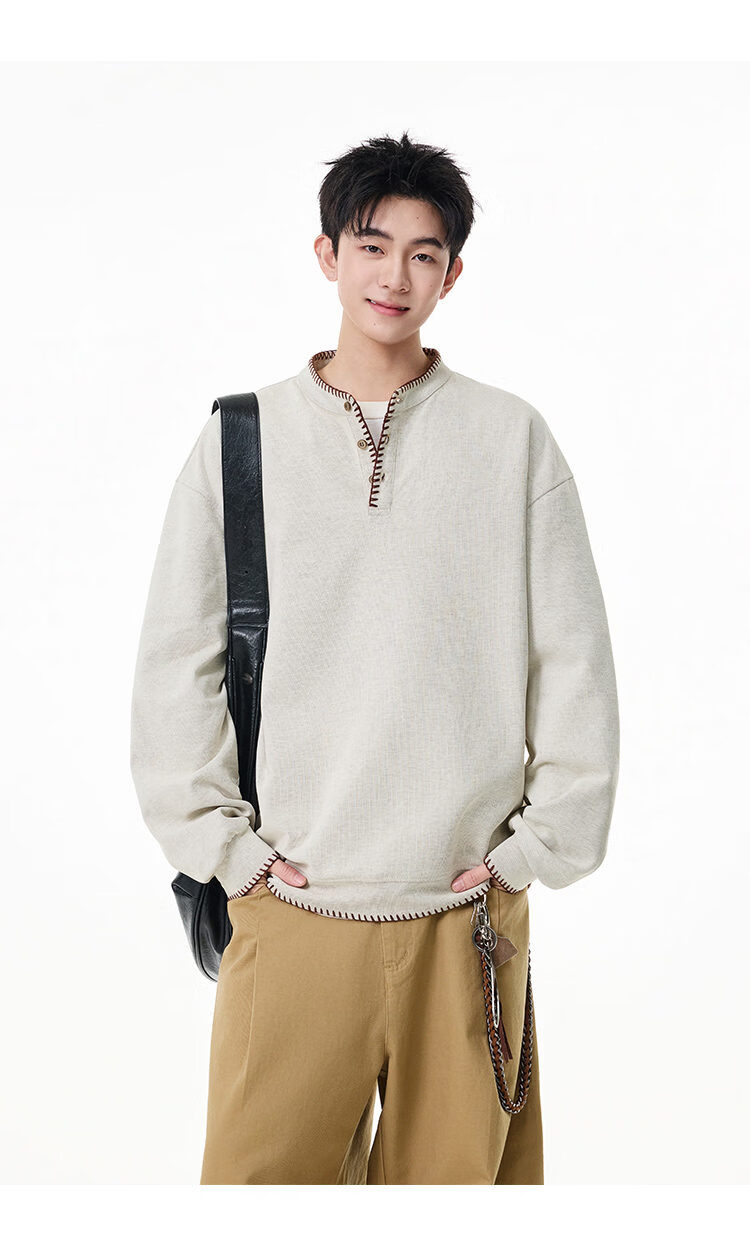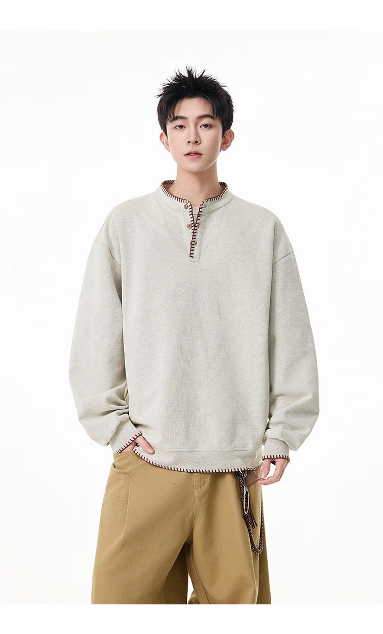 Scarecrow hand-stitched Henry collar sweatshirt for men 2026 spring new trendy brand couple loose pullover top, apricot color HW3801 M