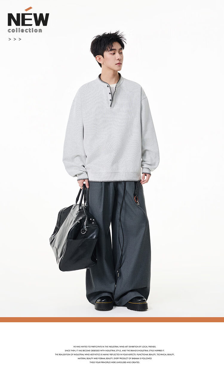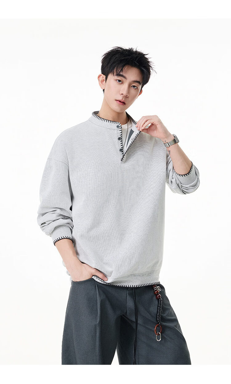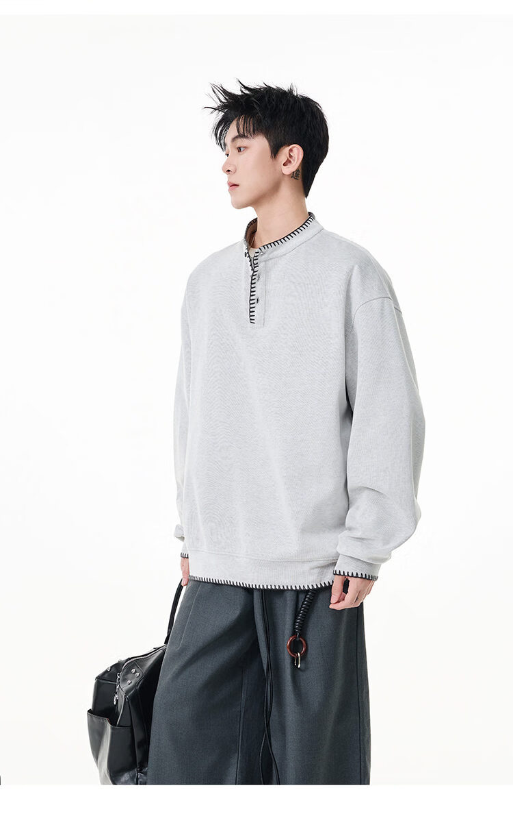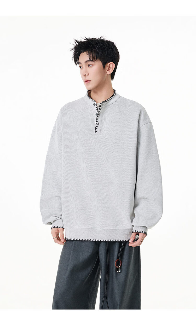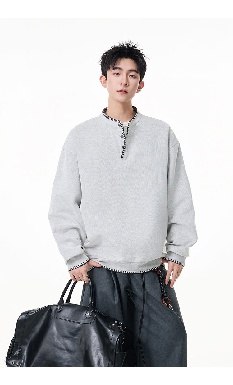 Scarecrow hand-stitched Henry collar sweatshirt for men 2026 spring new trendy brand couple loose pullover top, apricot color HW3801 M