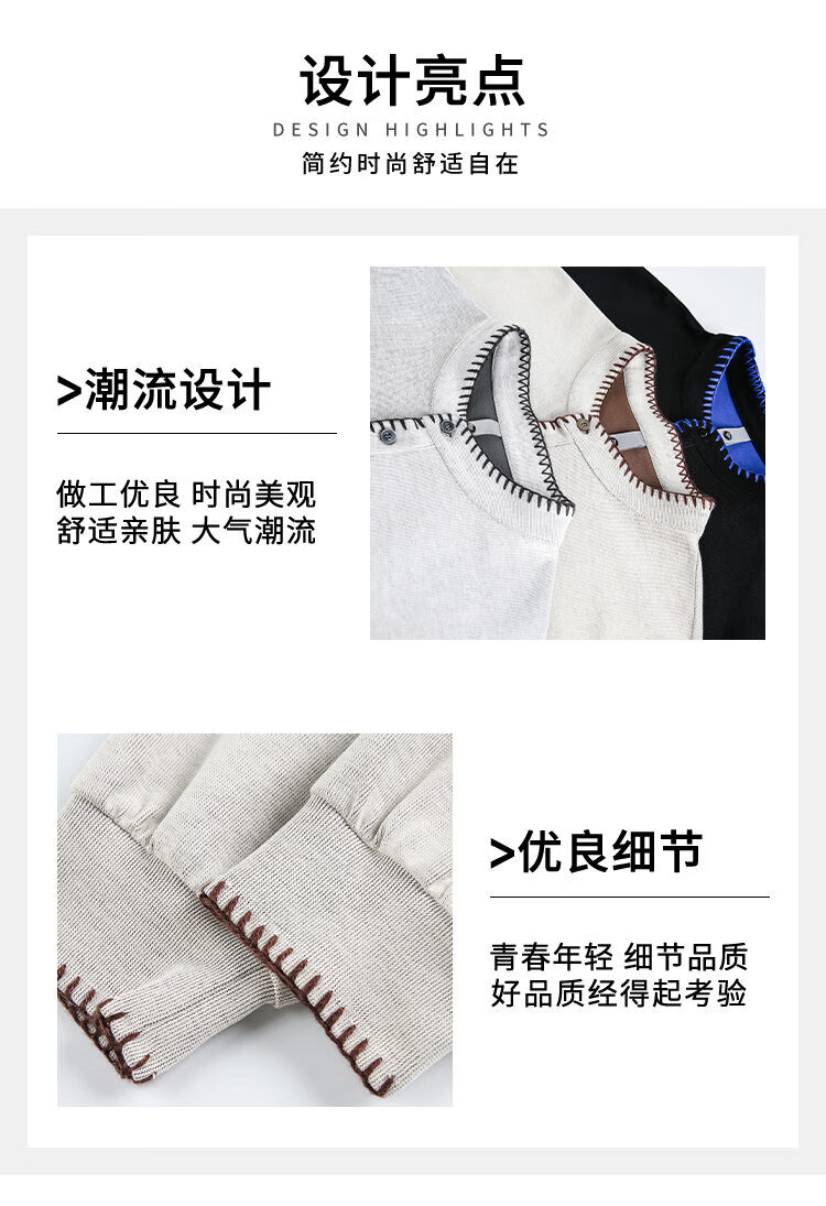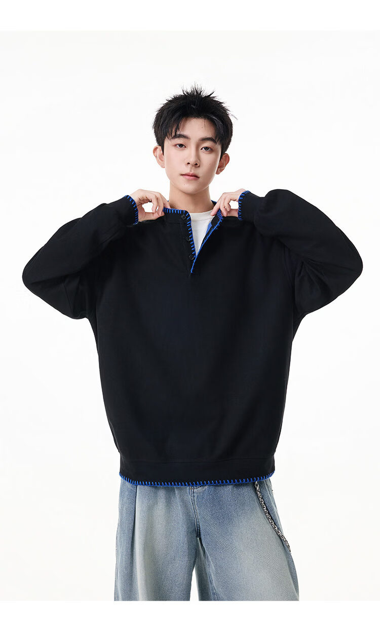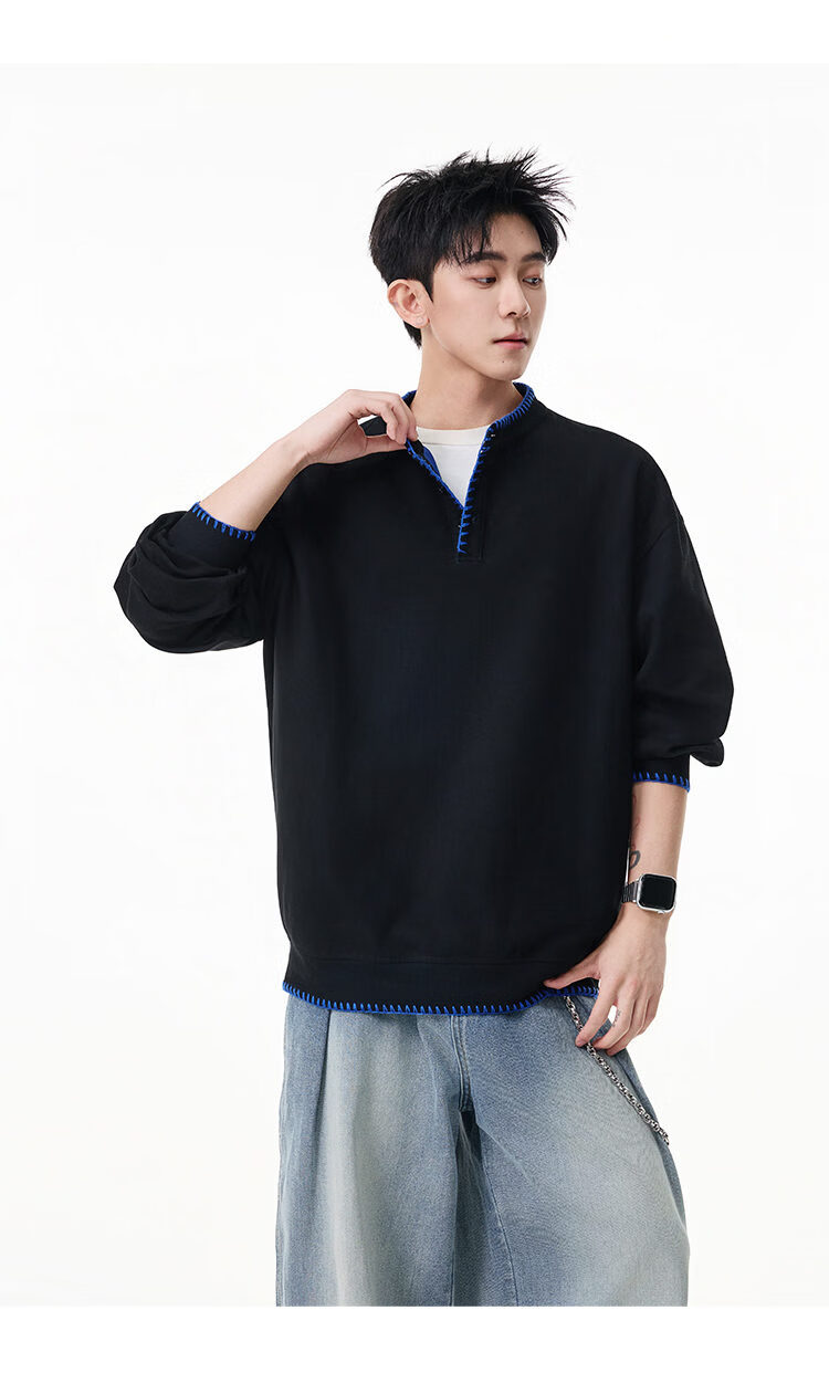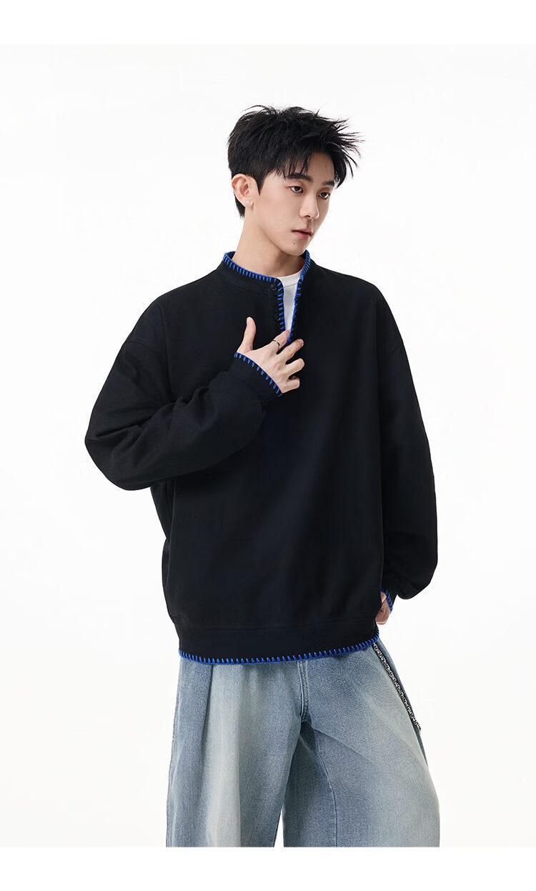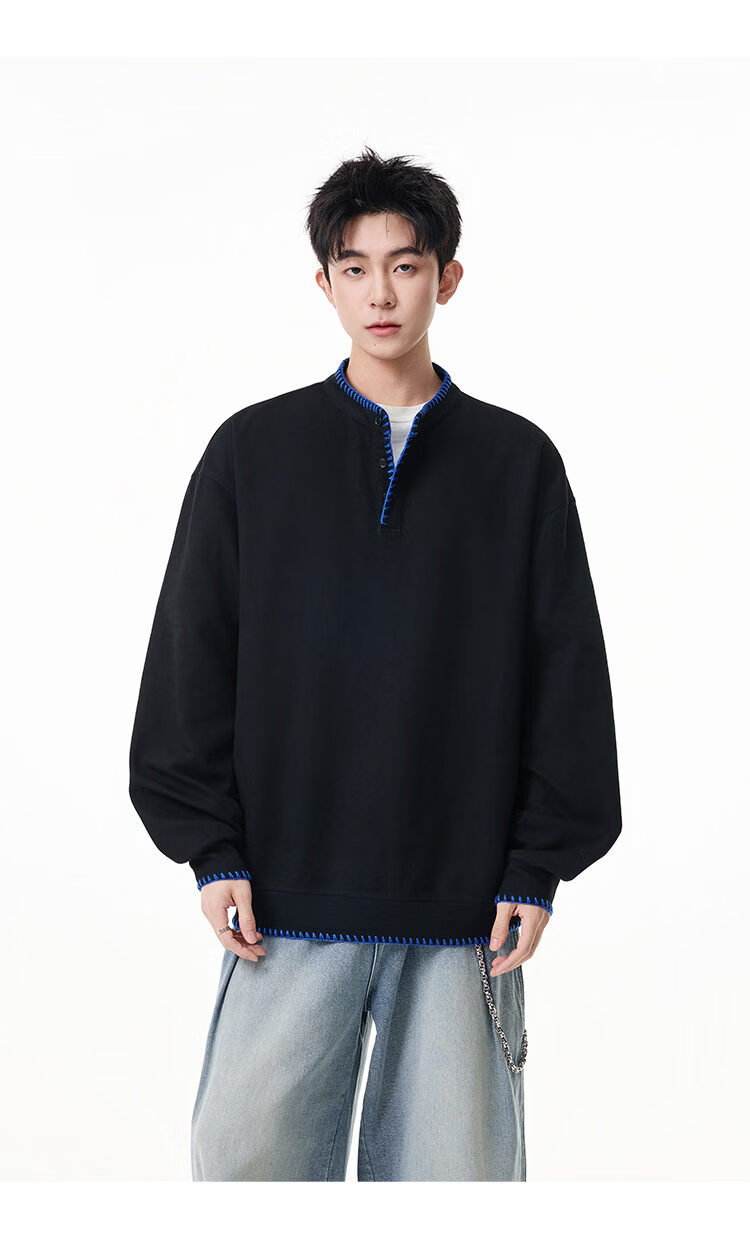 Scarecrow hand-stitched Henry collar sweatshirt for men 2026 spring new trendy brand couple loose pullover top, apricot color HW3801 M