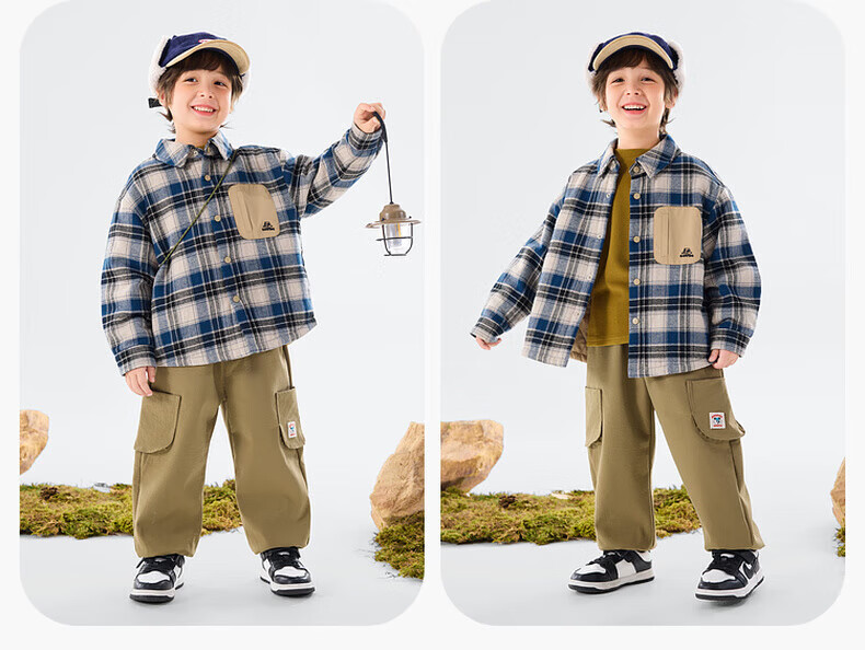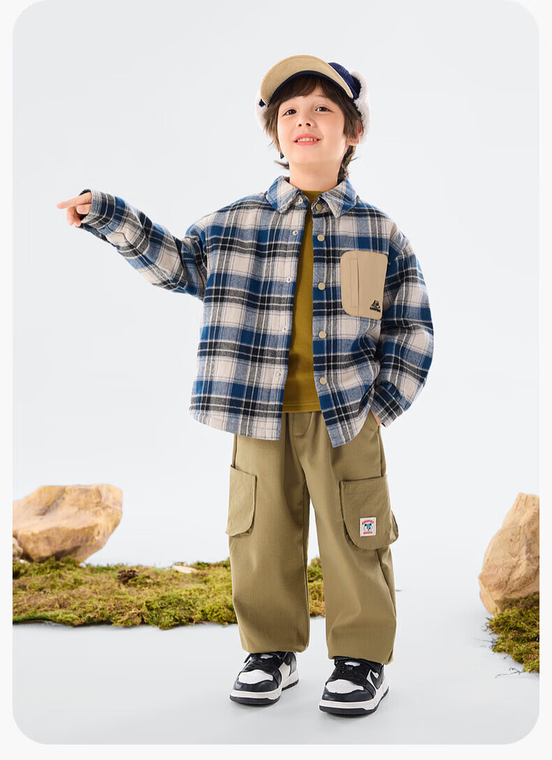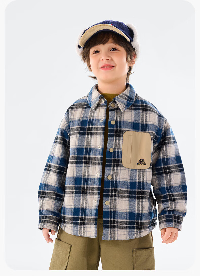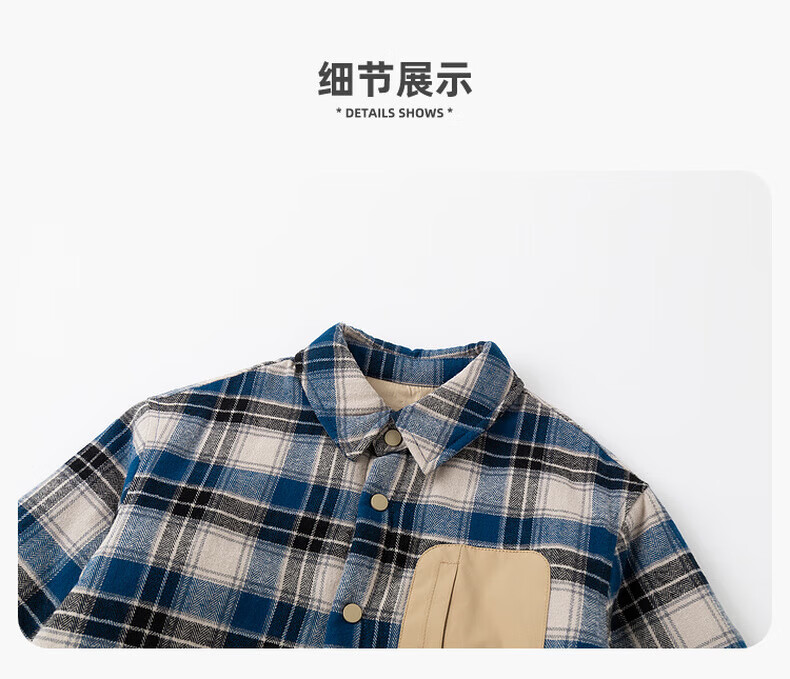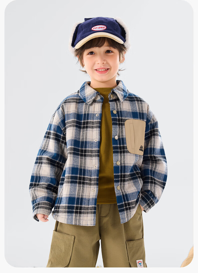 Dudujia Boys' Shirts Winter Children's Plaid Jackets Women's Plaid Fashion Versatile Autumn and Winter Style Shirts Trendy Navy 90