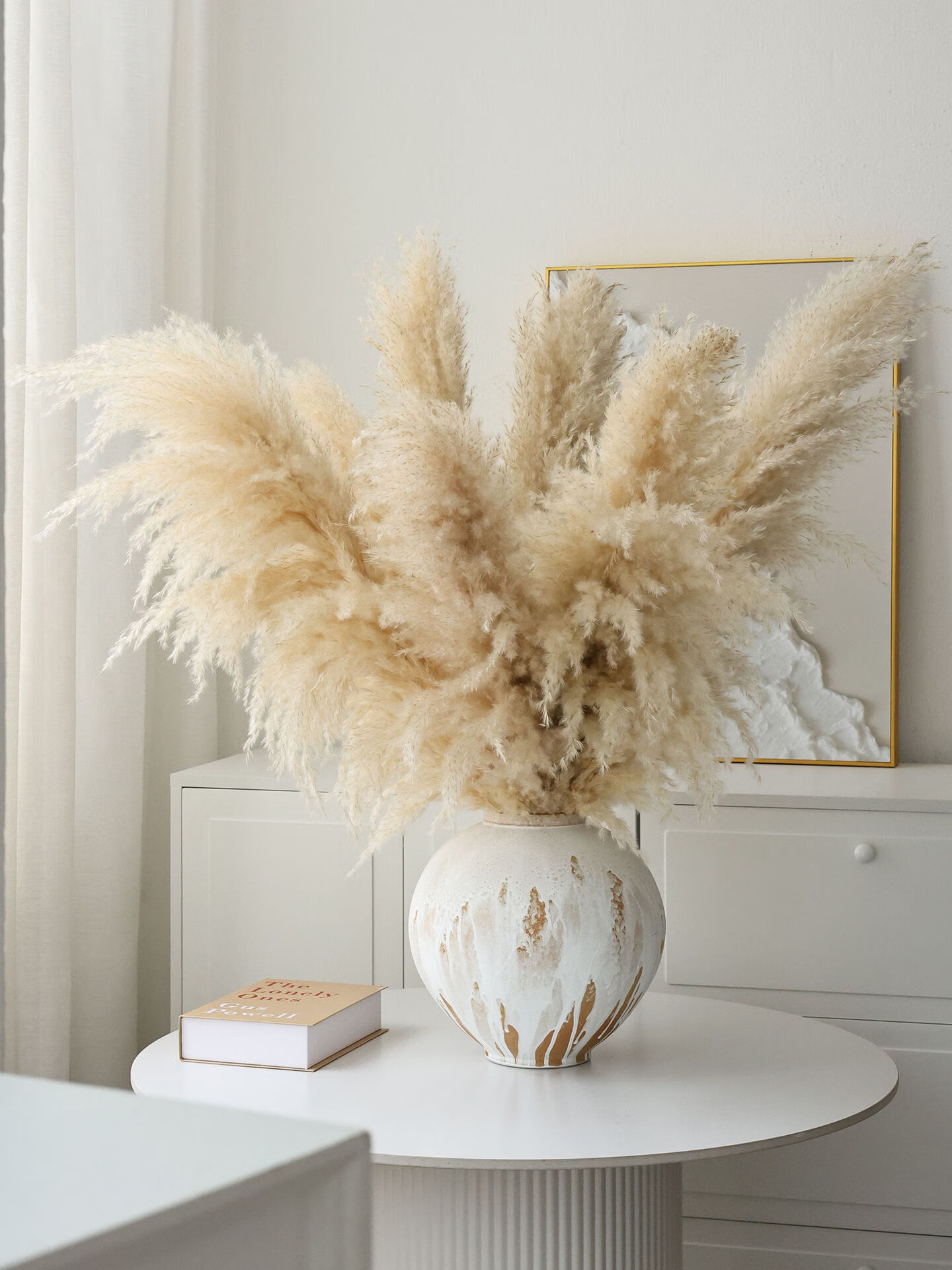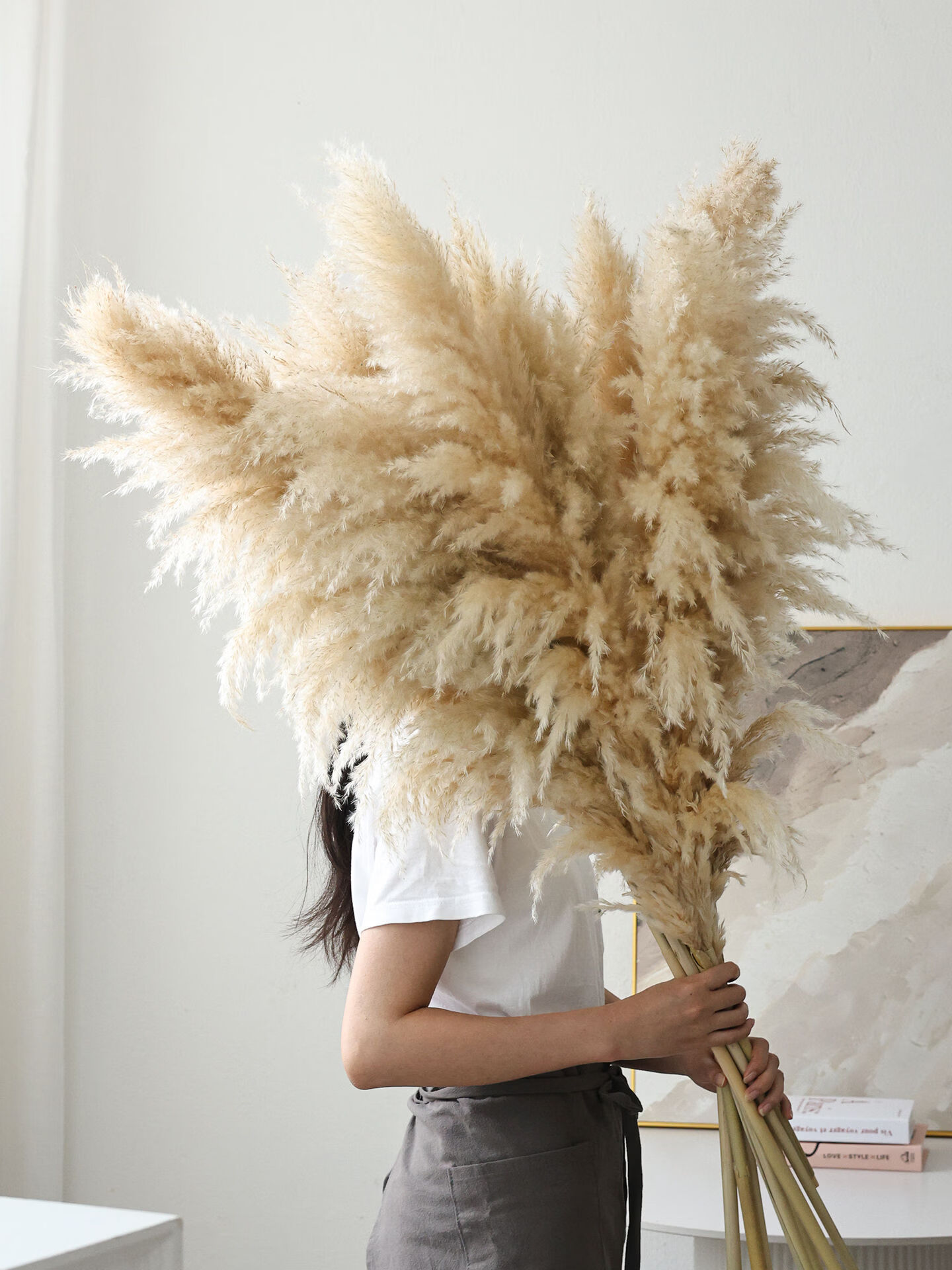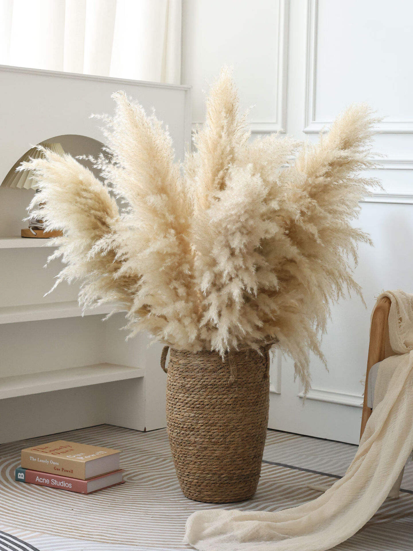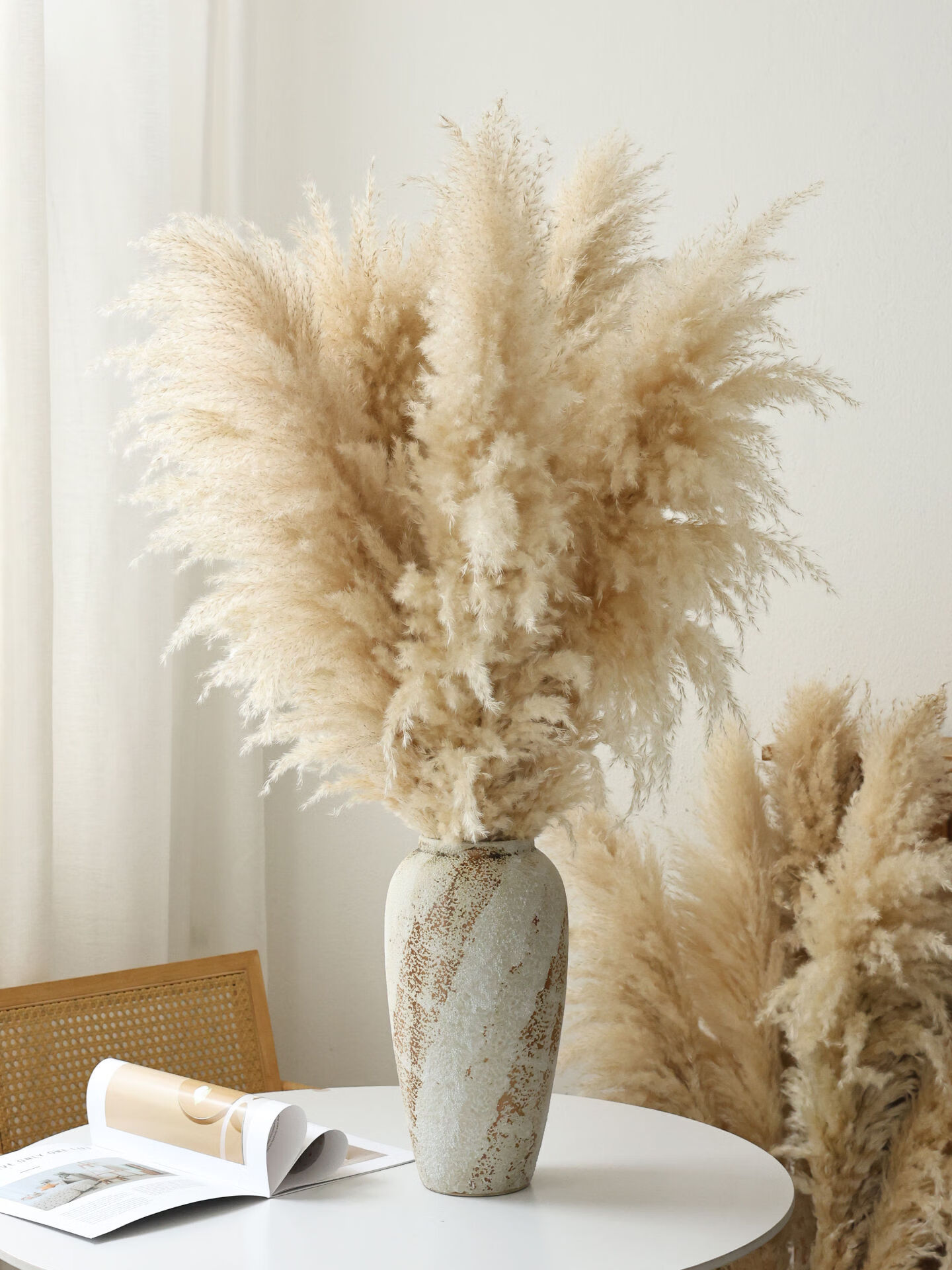 Internet celebrity natural reed pampas grass dried flower bouquet living room window soft decoration exhibition hall layout floor-standing flower arrangement photo props 10 large pampas grass + woven flower basket extra large_length 90-10013
