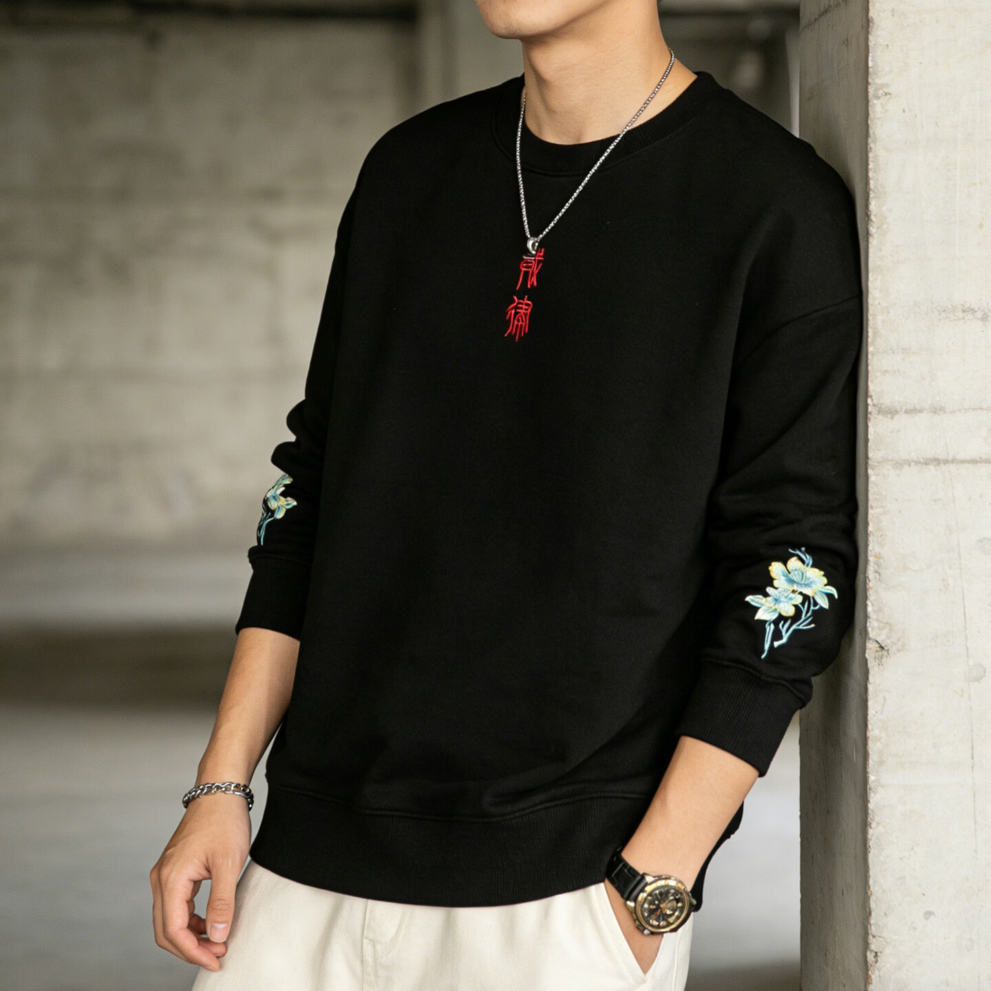 JEEP SPIRIT Year of the Dragon Limited Sweater Men's 2026 Spring National Style Embroidered Embossed Top Loose Large Size Round Neck White Regular 2XL 175-185cm 180-210Jin Jin is equal to 0.5 kg