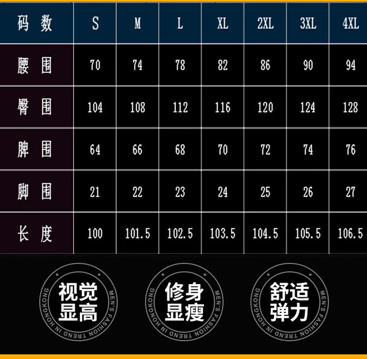 Outseam (cm) 99 cm 101.5 cm 104 cm 106.5 cm 109 cm