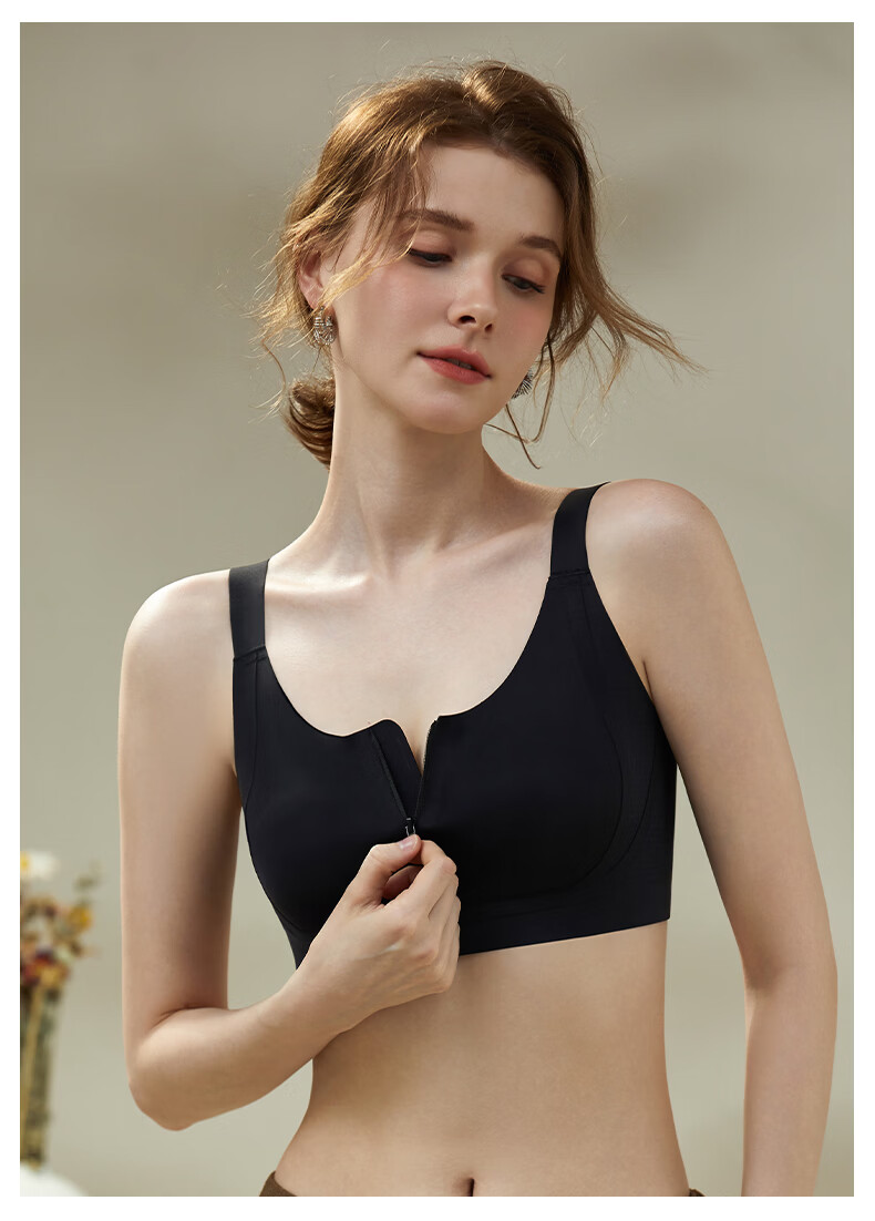Tingmei (GRACEWELL) Big Breast Reducing Small Bra Women's Thin Seamless Front Button Zipper Pull-Up Anti-sagging Breast Reduction Sports Shockproof Bra Black One Pull to Make You Slim - Light and Traceless M Suitable for BCD cup, recommended 80-100Jin Jin is equal to 0.5kg