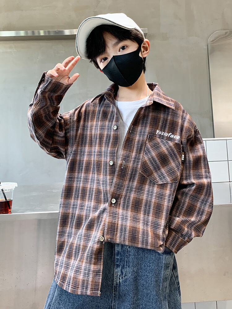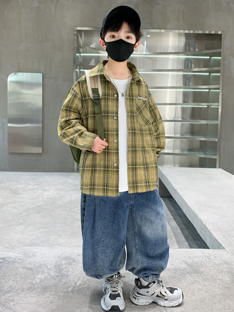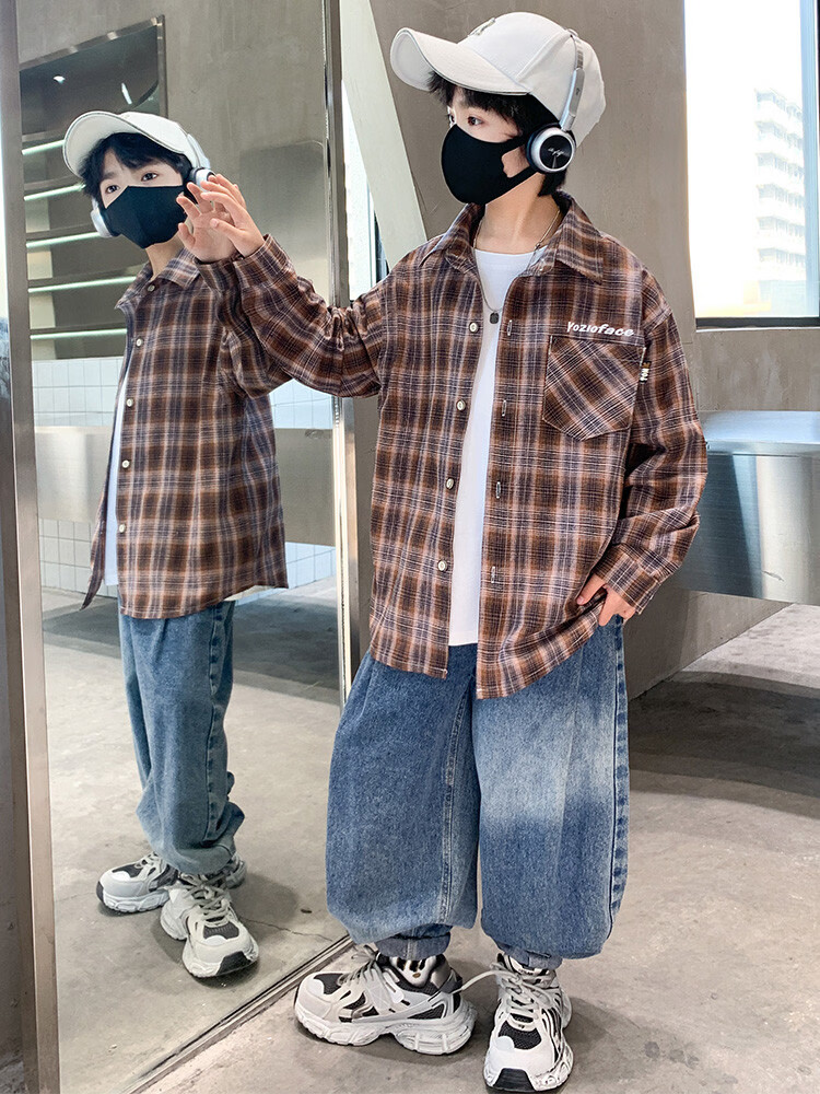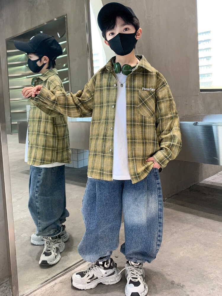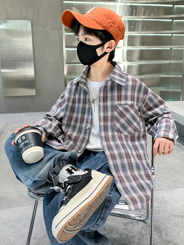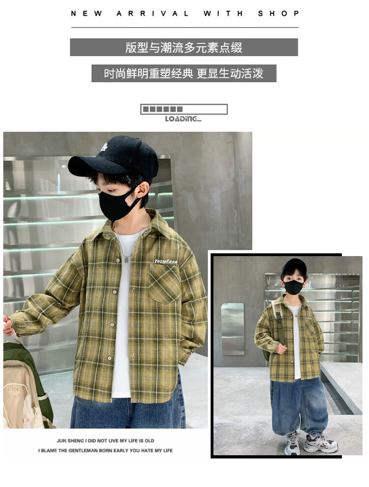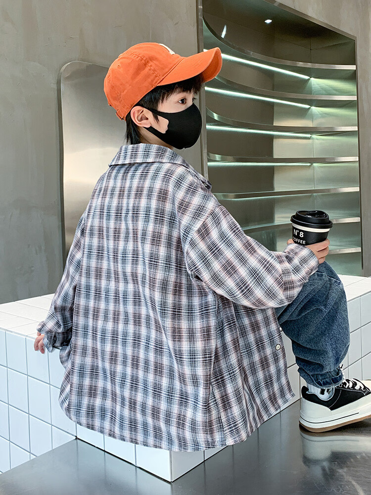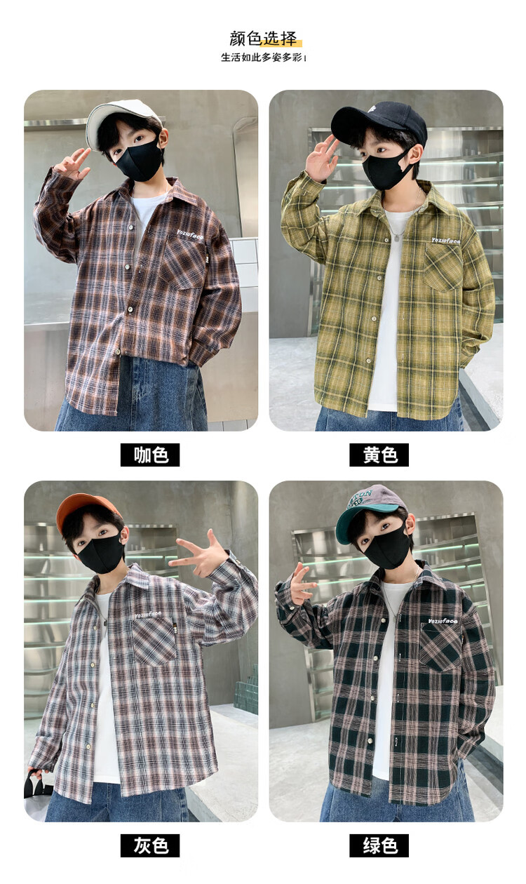 Boys' shirt jacket spring and autumn 2026 new medium and large children's autumn boys' autumn clothing children's handsome plaid shirt yellow 120 cm