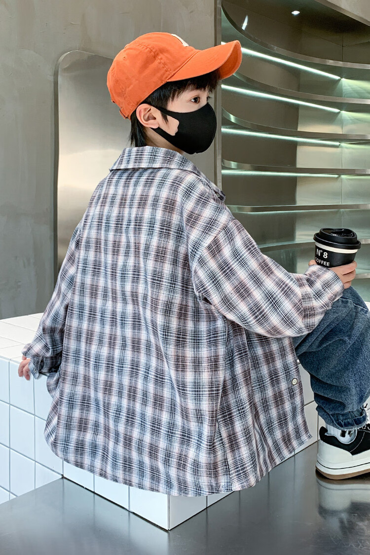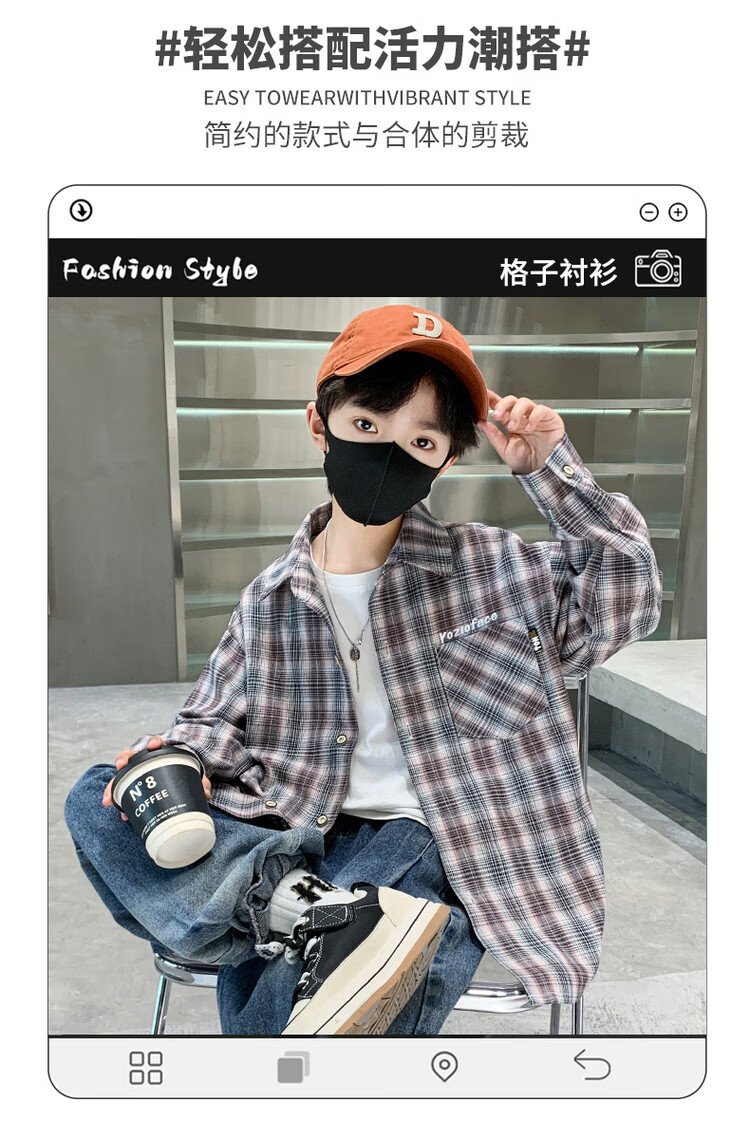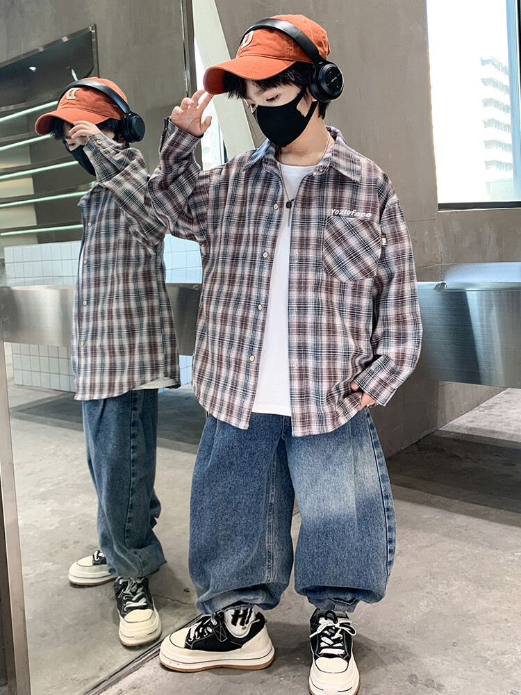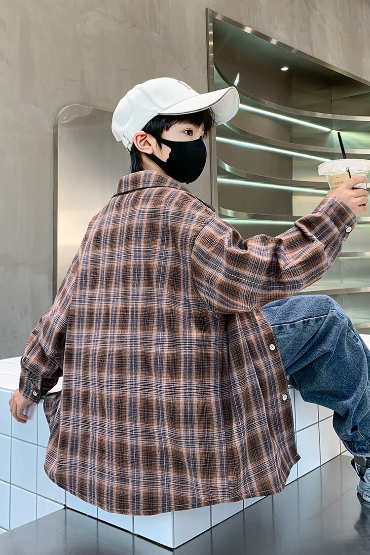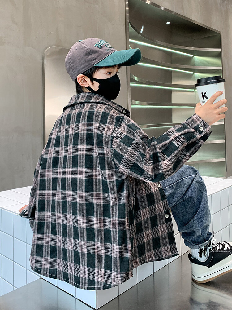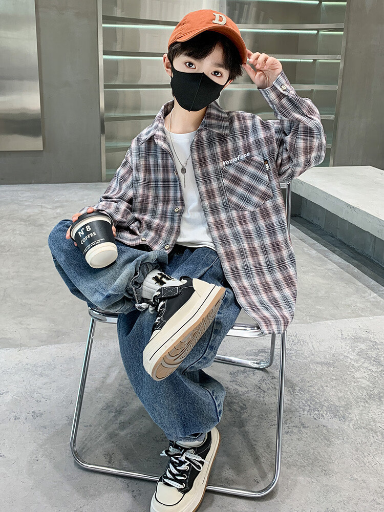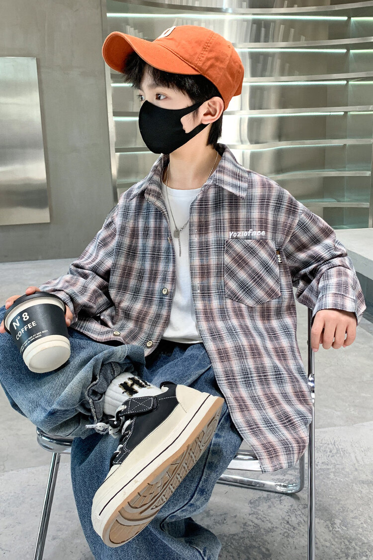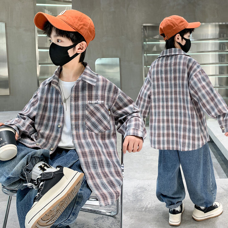 Boys' shirt jacket spring and autumn 2026 new medium and large children's autumn boys' autumn clothing children's handsome plaid shirt yellow 120 cm