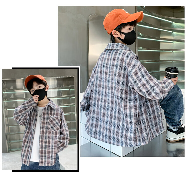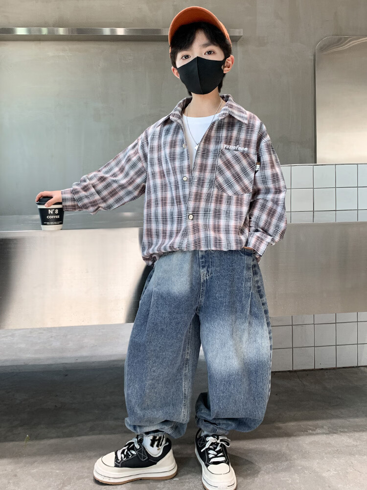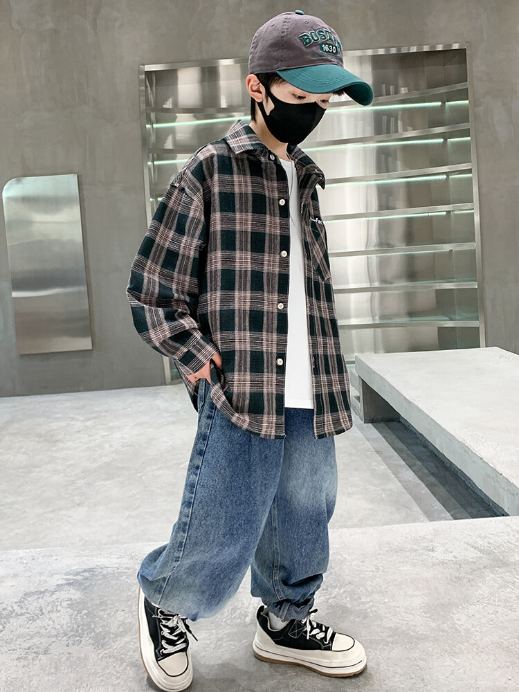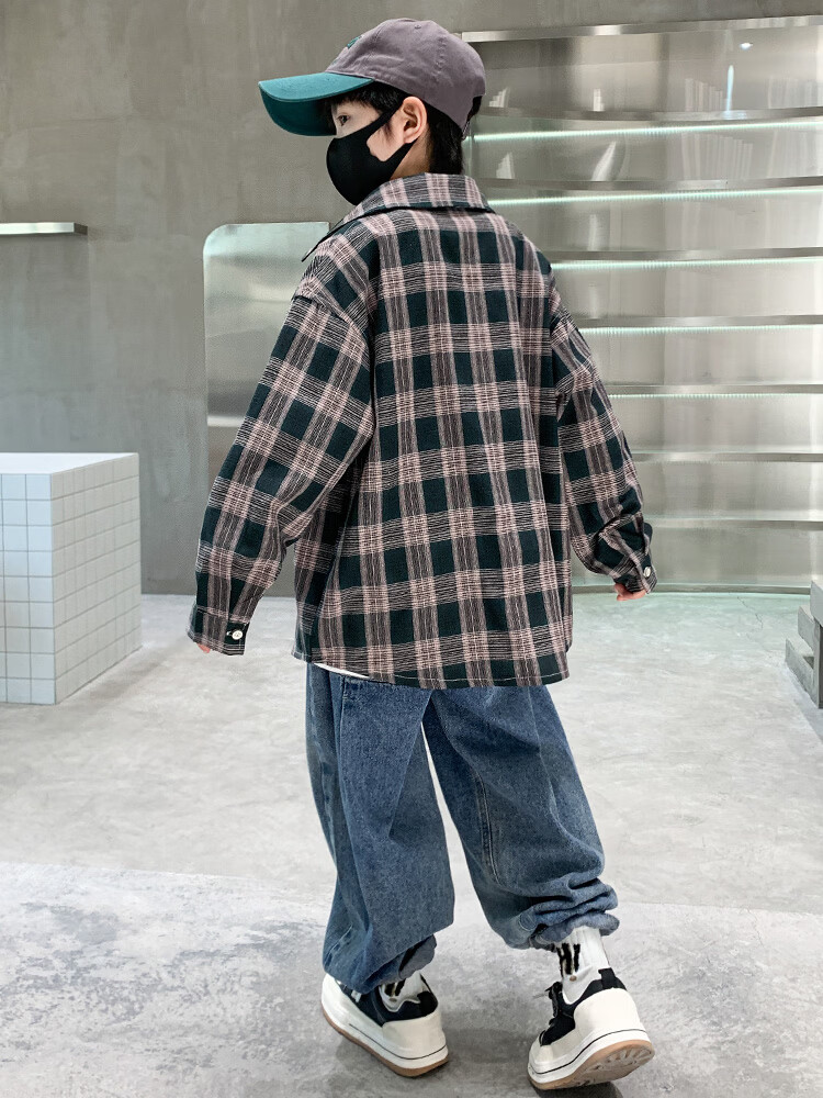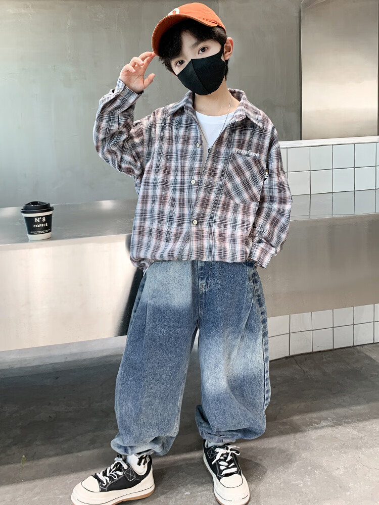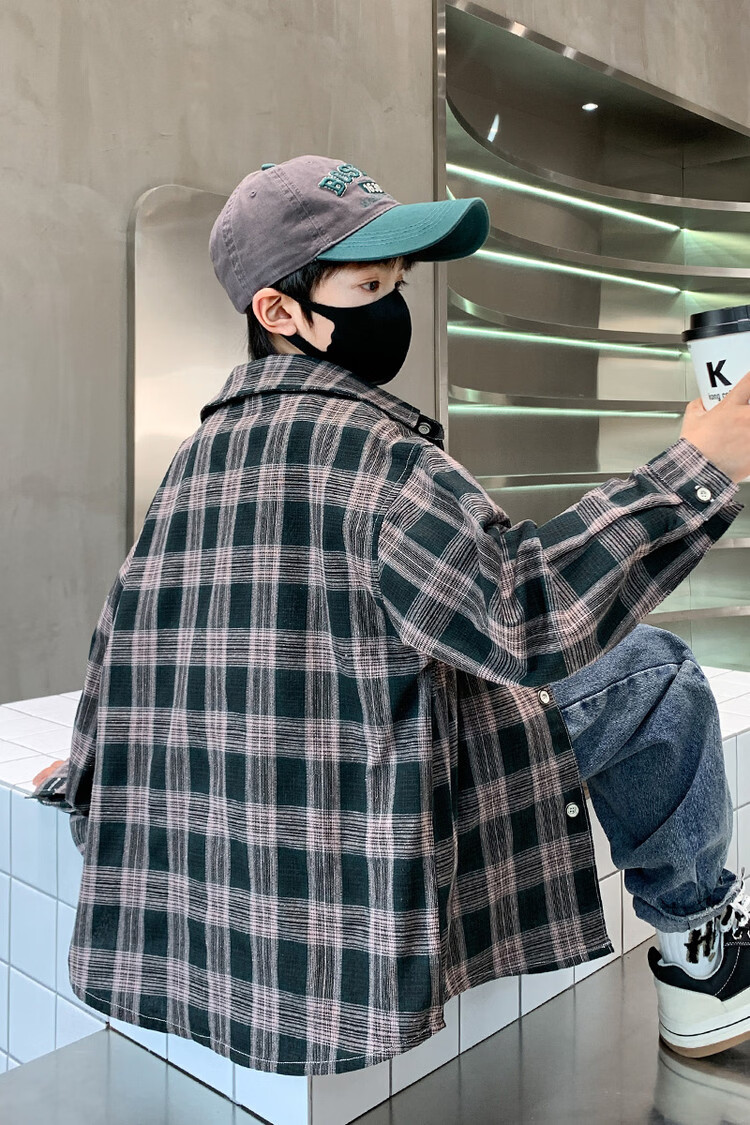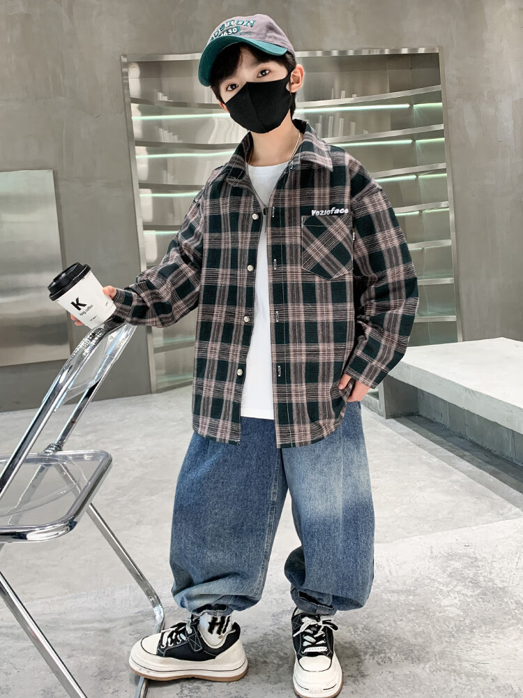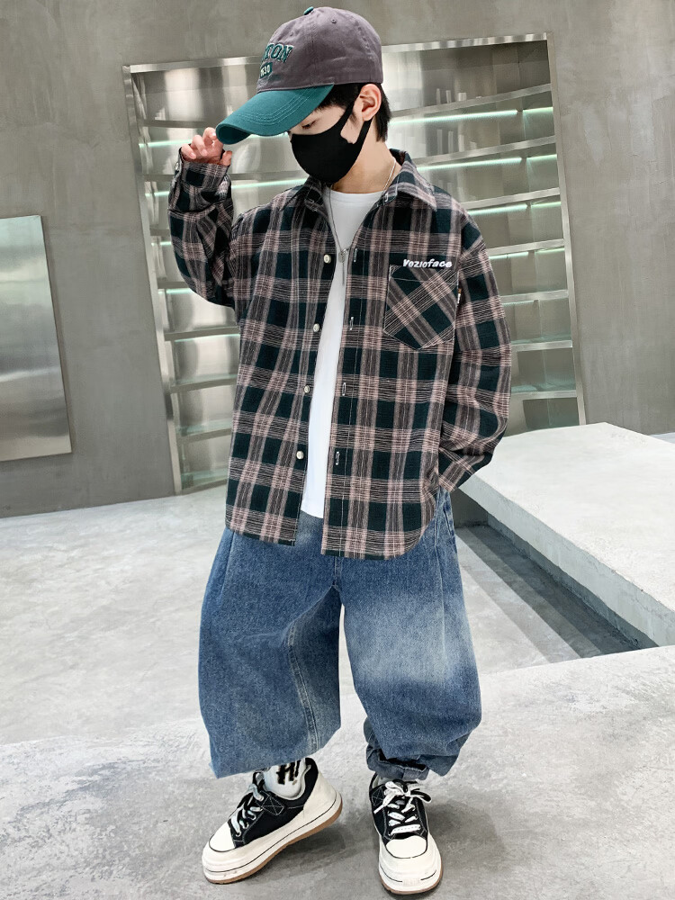 Boys' shirt jacket spring and autumn 2026 new medium and large children's autumn boys' autumn clothing children's handsome plaid shirt yellow 120 cm