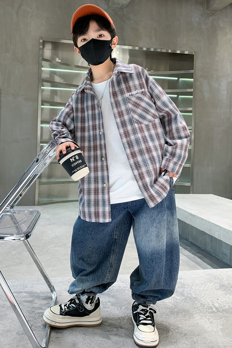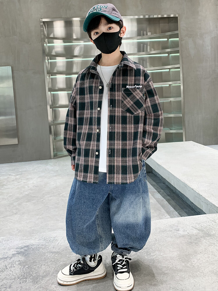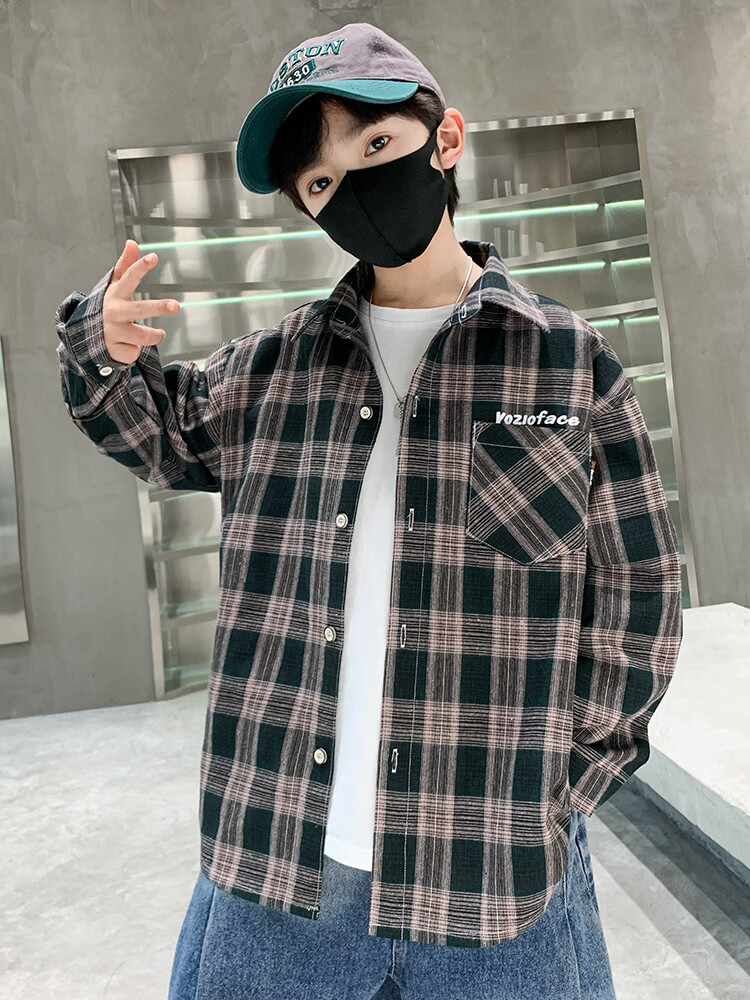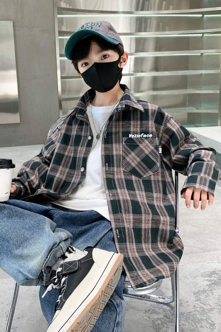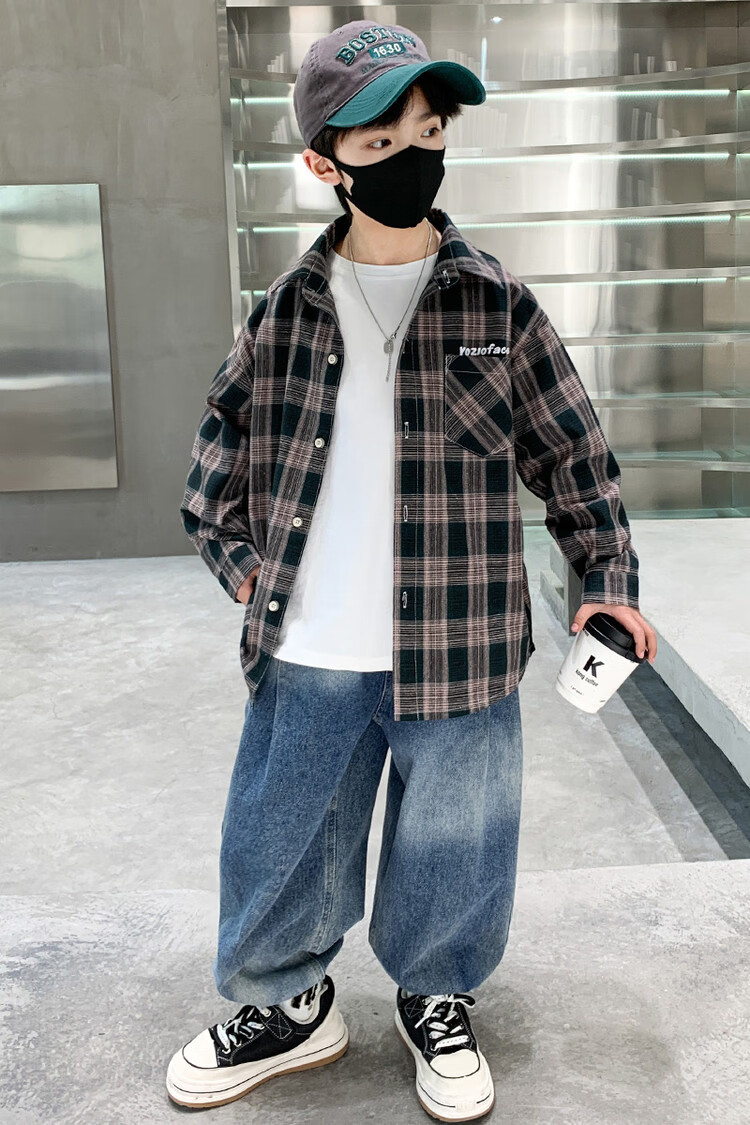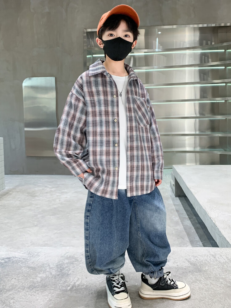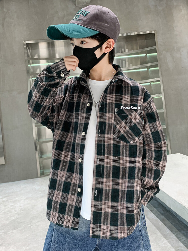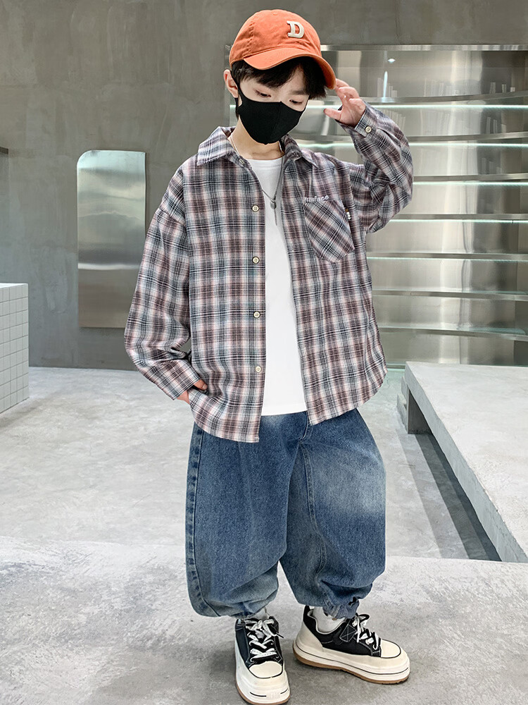 Boys' shirt jacket spring and autumn 2026 new medium and large children's autumn boys' autumn clothing children's handsome plaid shirt yellow 120 cm