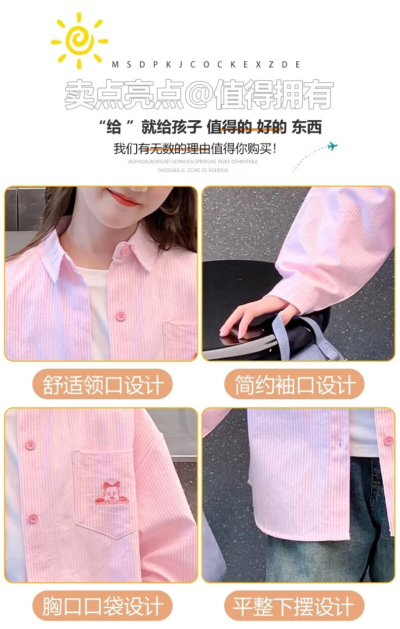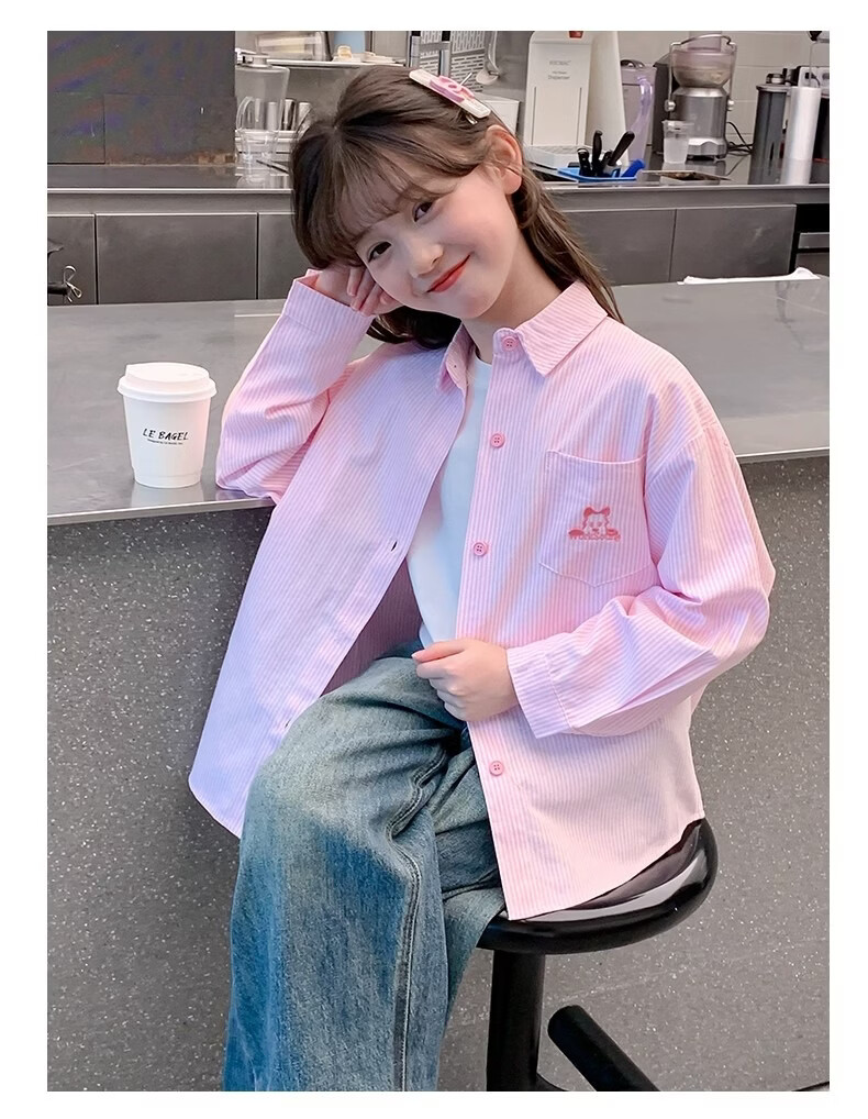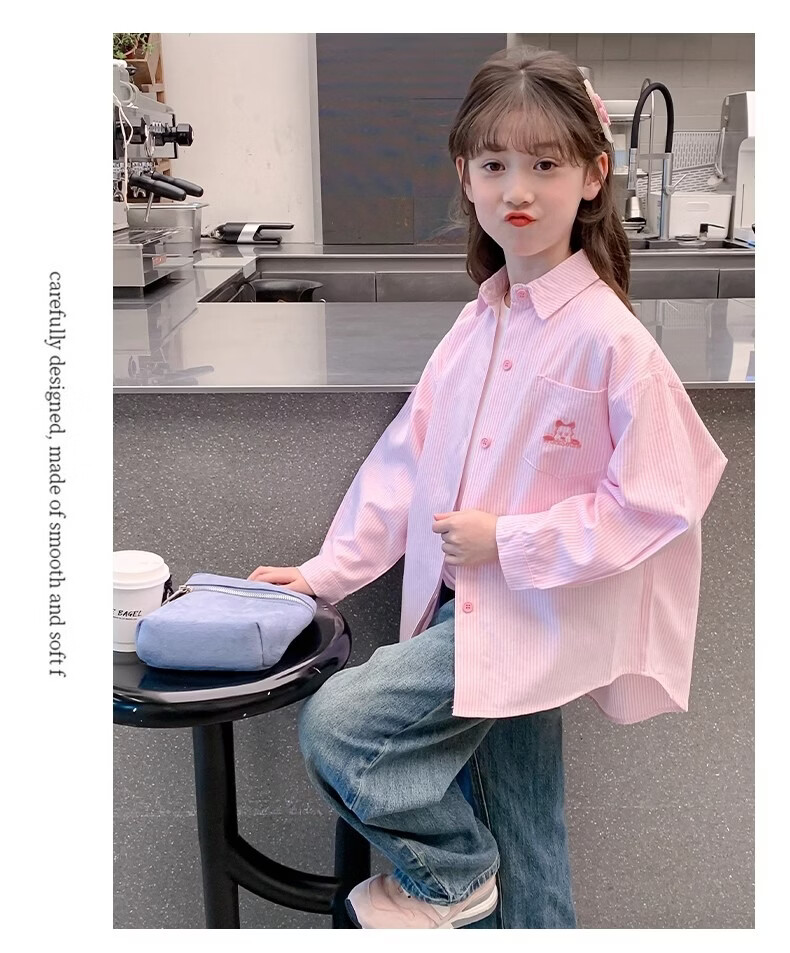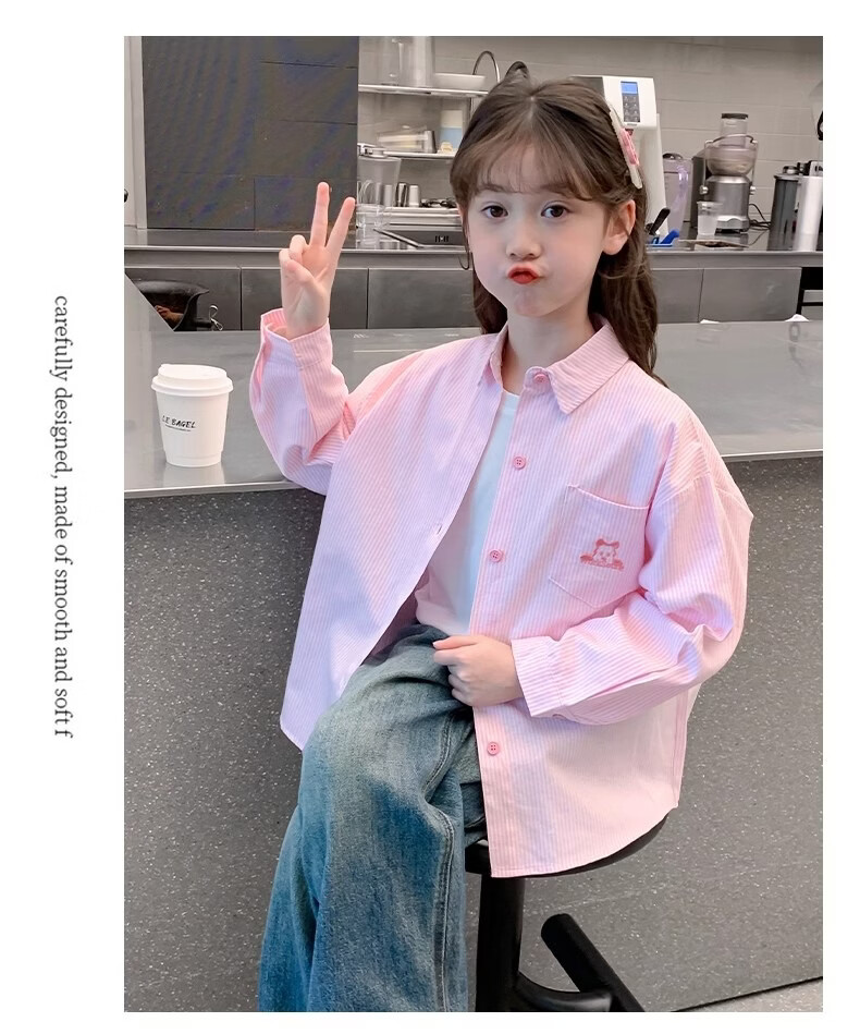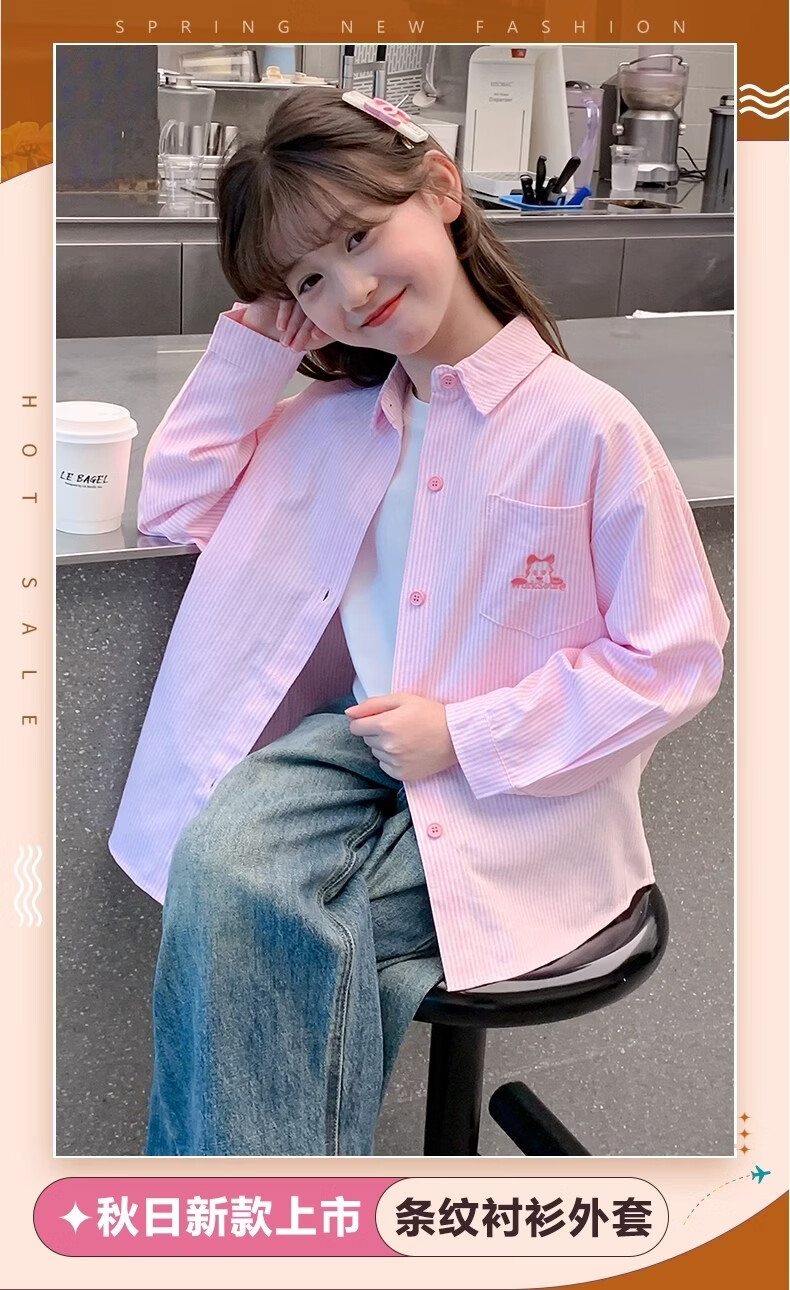Girls' super nice shirt spring and autumn new children's striped loose long-sleeved shirt autumn girls trendy pink 130