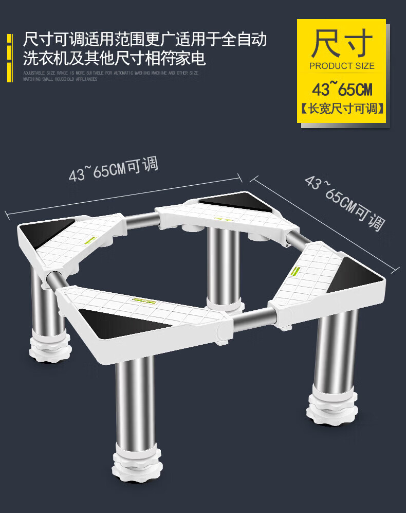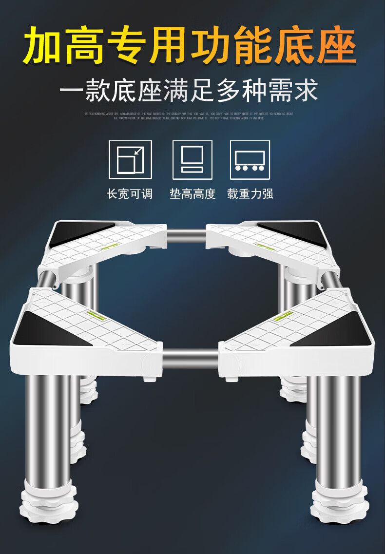 Kezitu washing machine base stainless steel raised pad height stand fully automatic roller adjustable stand refrigerator ice making 8 feet (total shelf height 29-32cm) gray