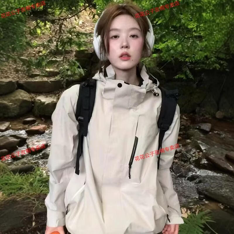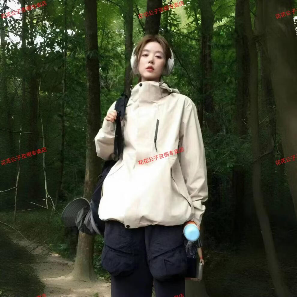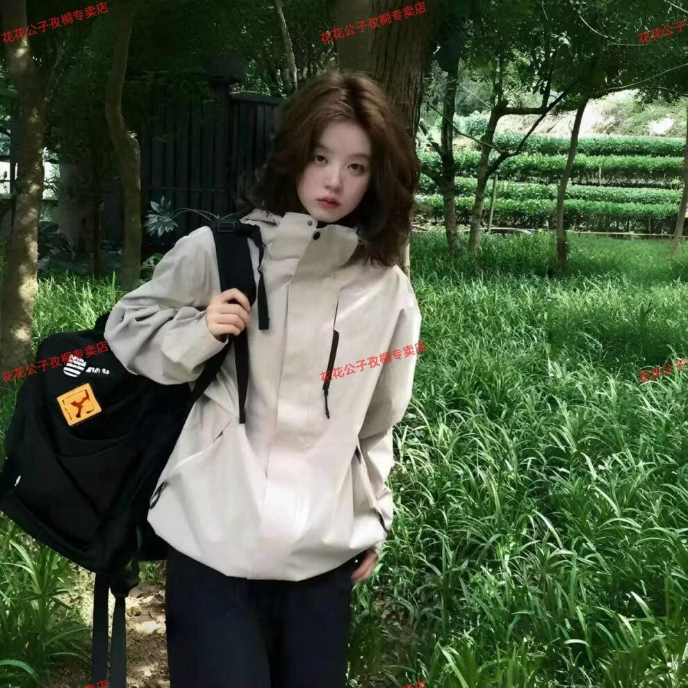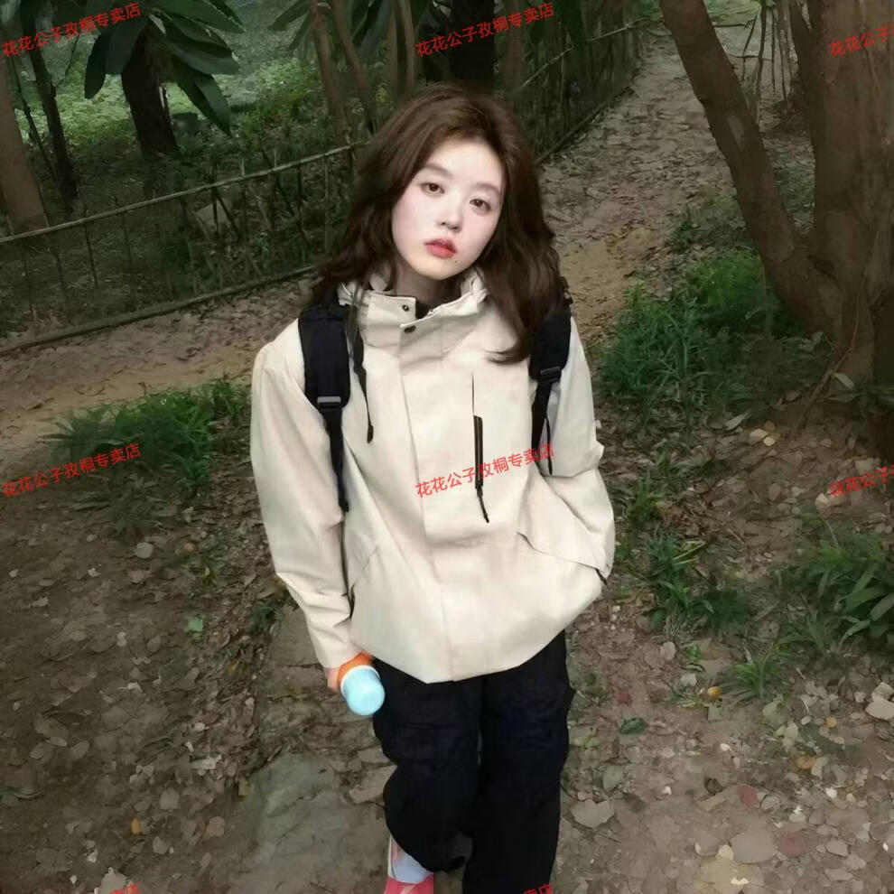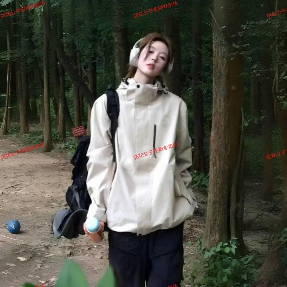 Playboy Spring and Autumn New Niche Hooded Jacket Men and Women Same Style Outdoor Mountaineering Clothes Windproof and Coldproof Versatile Short Jacket Spring and Autumn Style Milky White M 100-120Jin Jin is equal to 0.5 kg