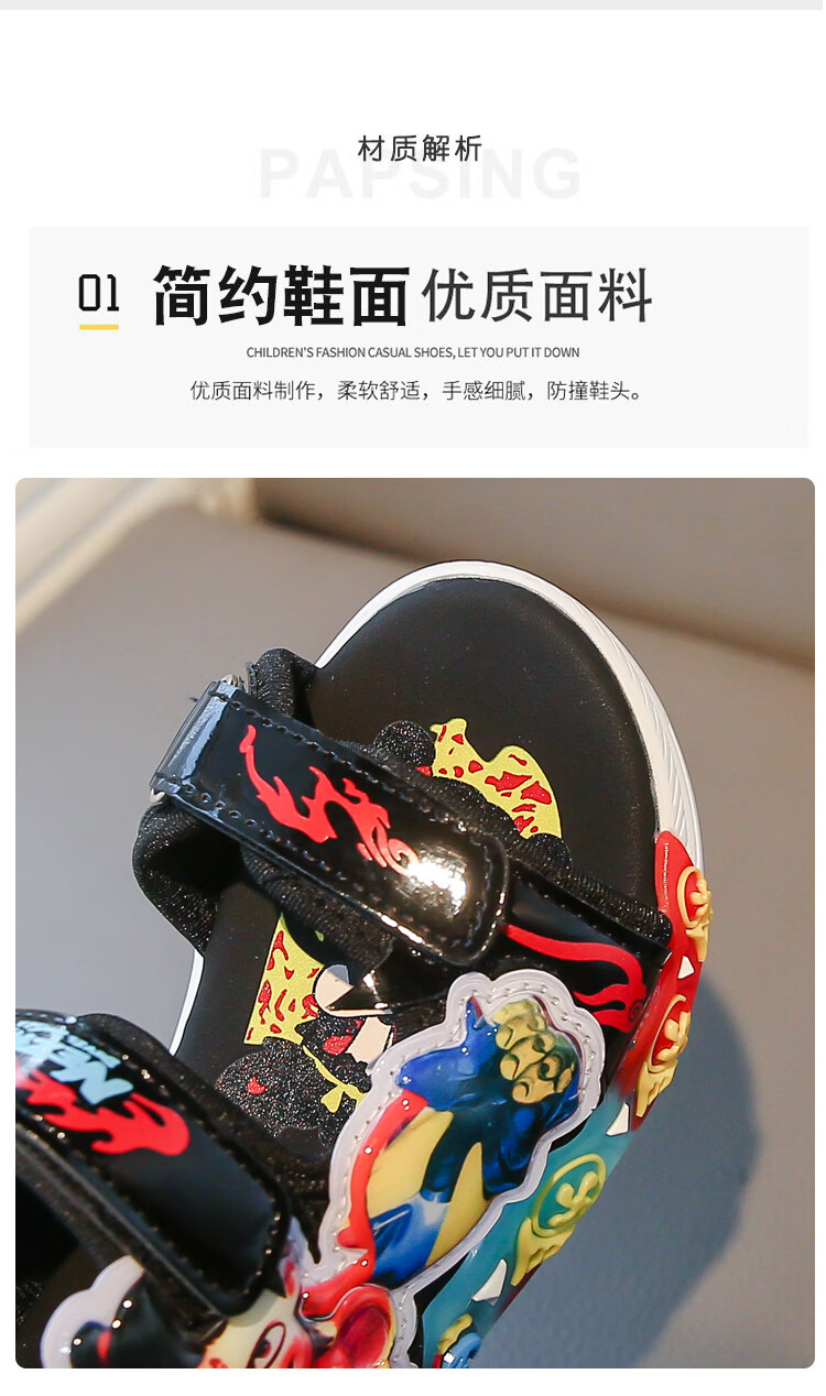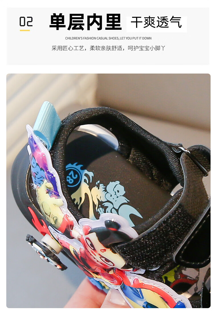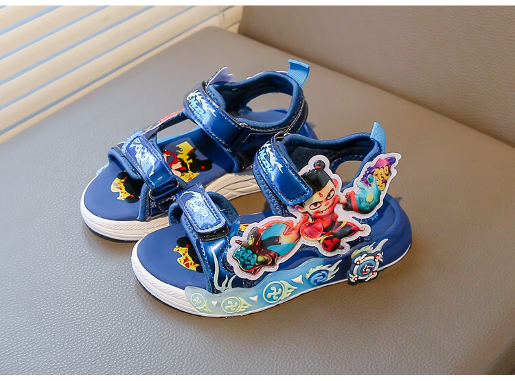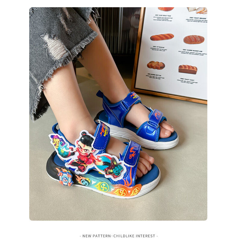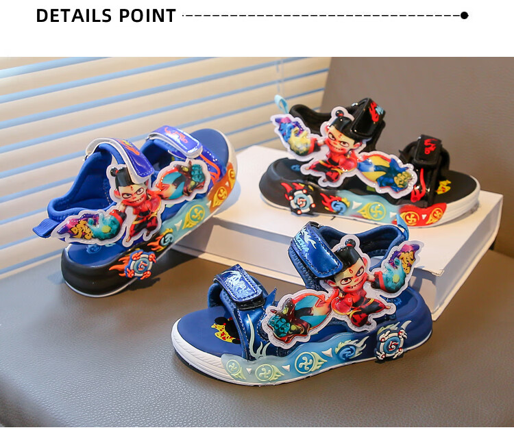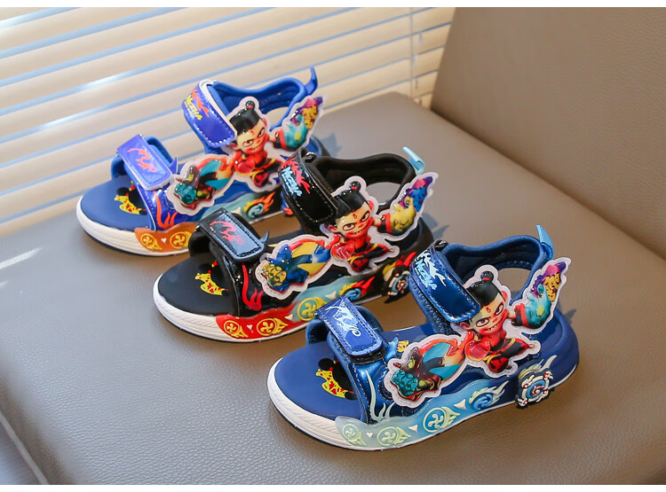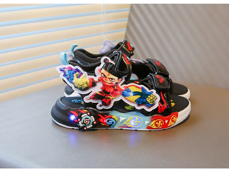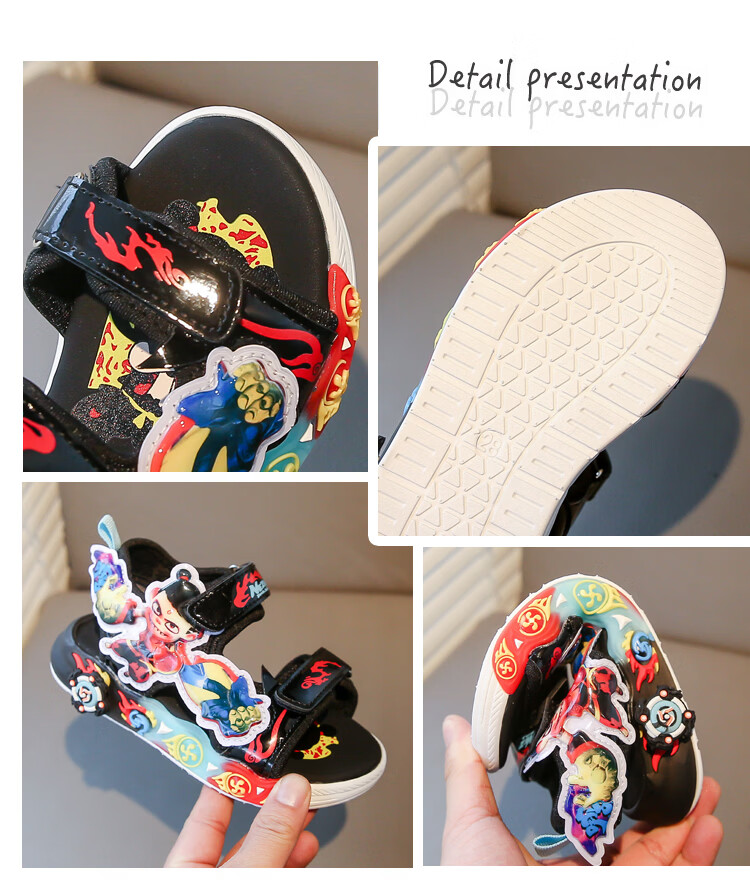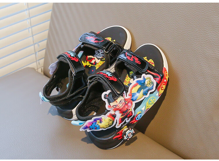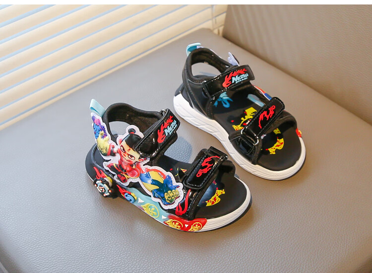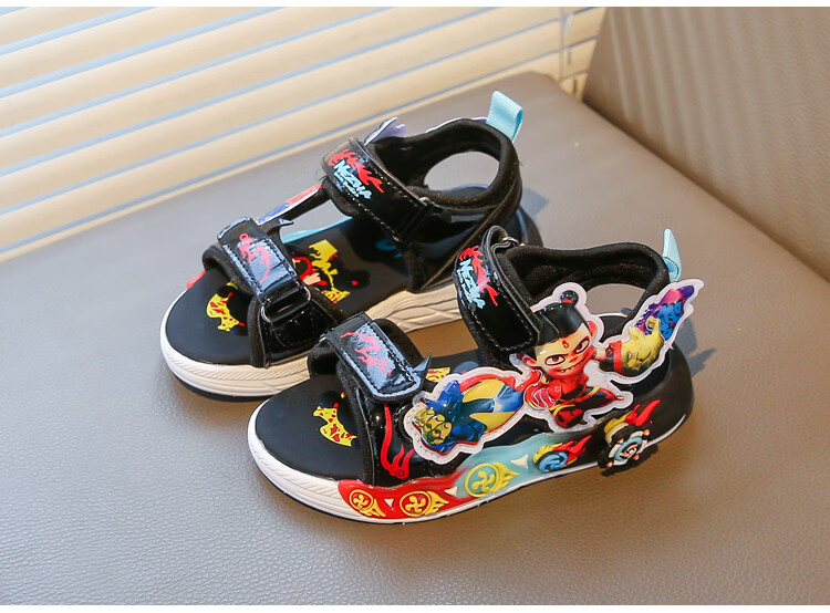 G.duck Nezha Sandals Boys Summer 2026 New Children's Sports Beach Shoes for Big Boys Cartoon Sandals Soft Bottom Black 33