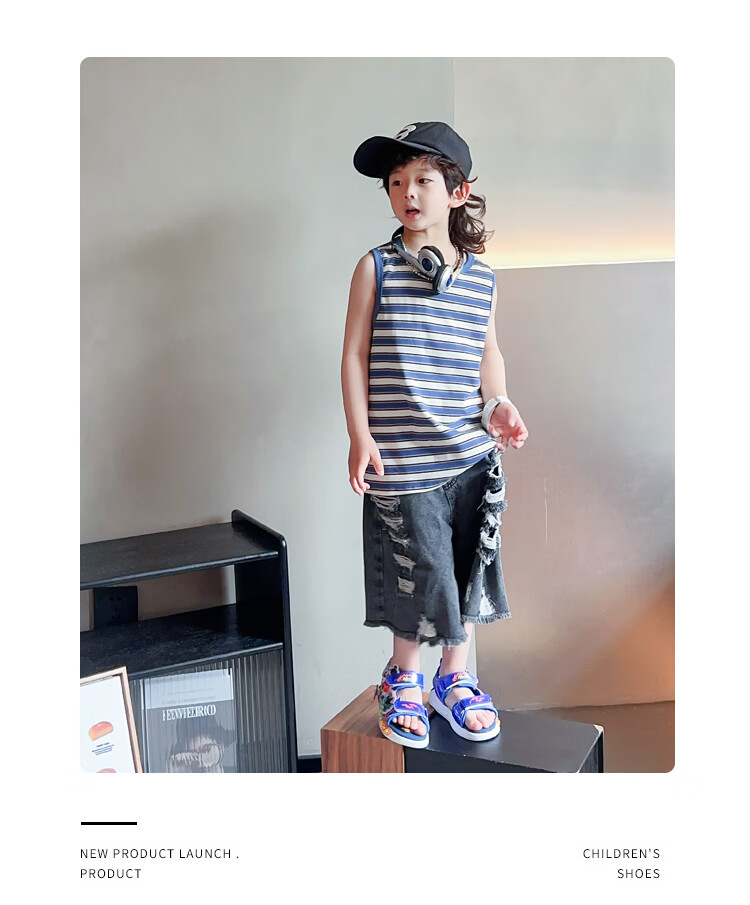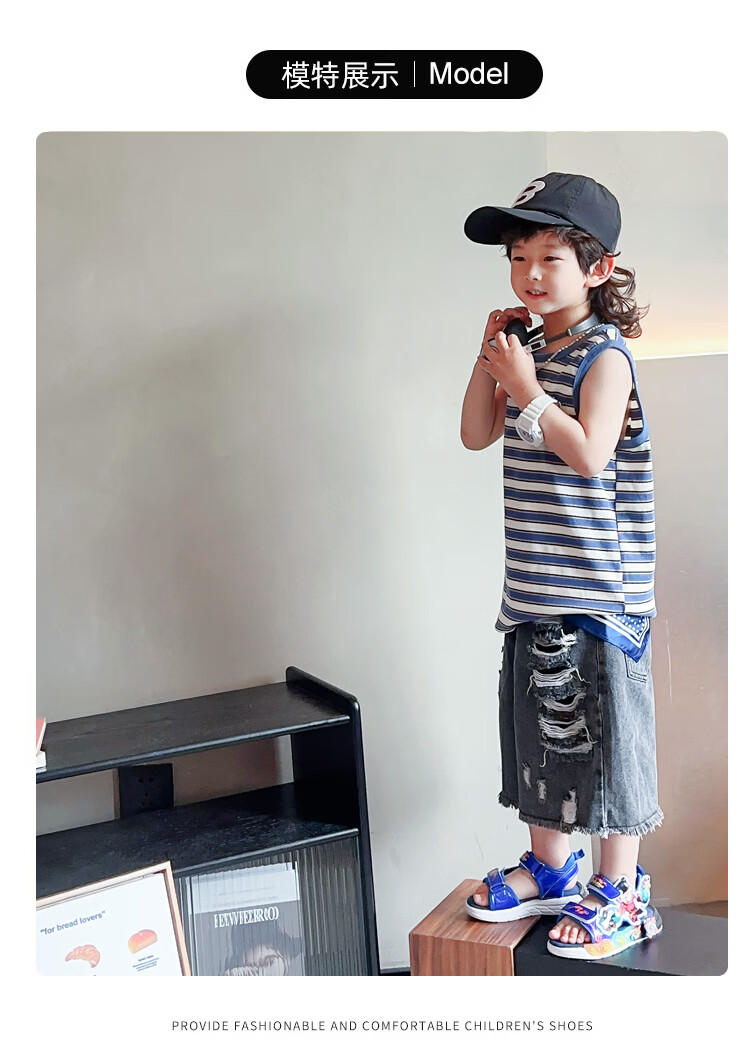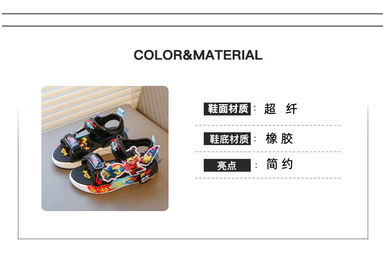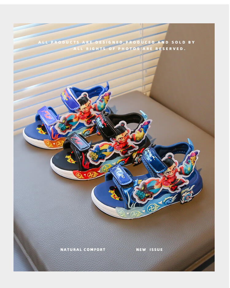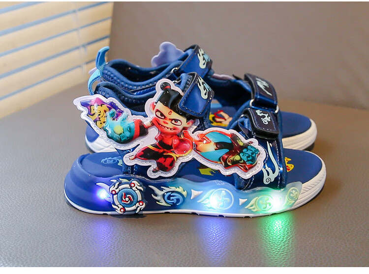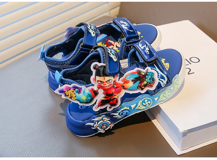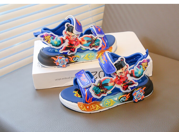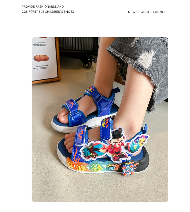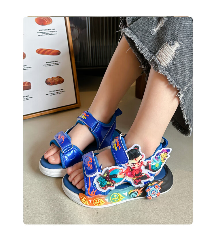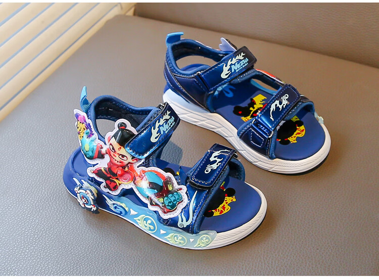 G.duck Nezha Sandals Boys Summer 2026 New Children's Sports Beach Shoes for Big Boys Cartoon Sandals Soft Bottom Black 33
