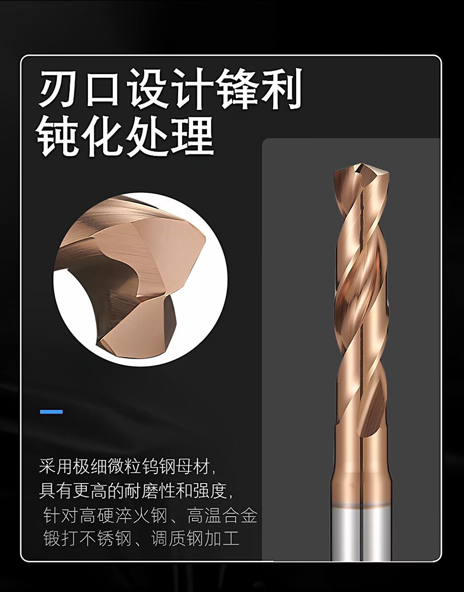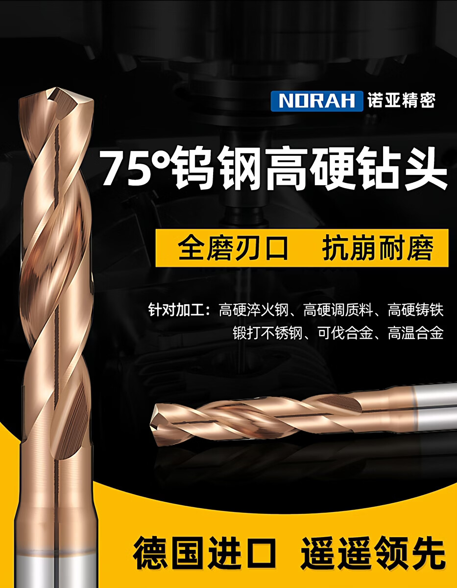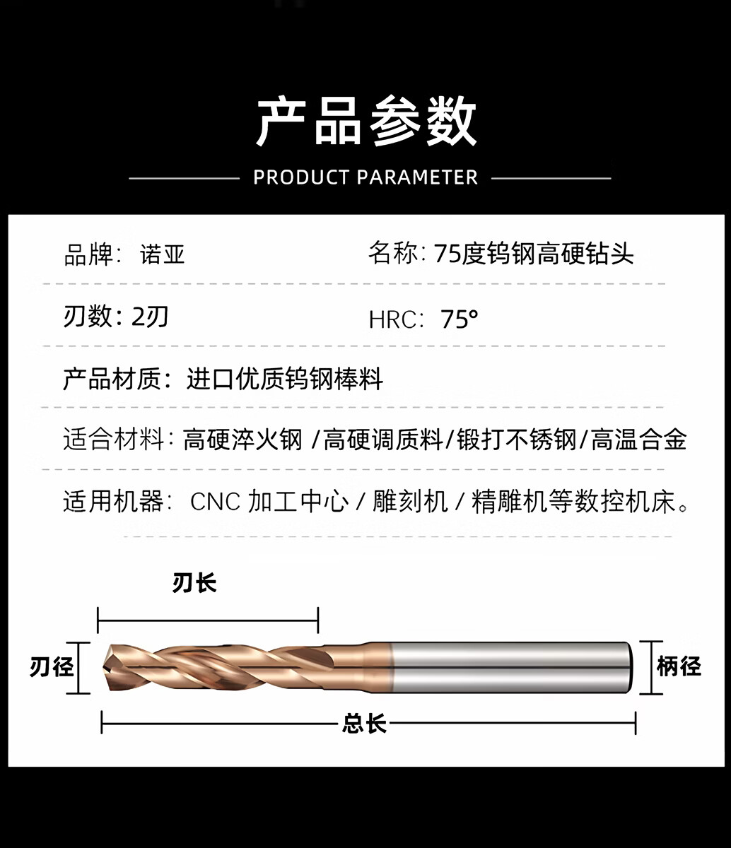 Germany imported 75-degree high-hardness tungsten steel drill bit, quenched steel tempered material, special carbide extended fixed shank drill bit D8.5x61Hx10Dx103L extended version