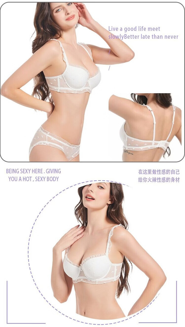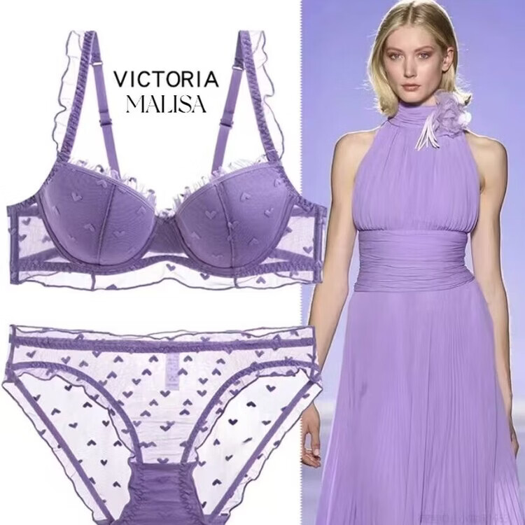 Victoria's Secret Purple Sexy Underwear Women's Pure Desire Thin Lace Soft Wire Wire Big Breast Reducing Large Size Bra Set Purple Single Piece 70B 32/70B
