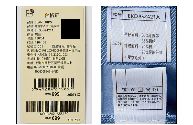 E LAND KIDS icy sun protection 50+ Elove children's clothing girls dress 26th summer new denim skirt Indigo indigo/55 165