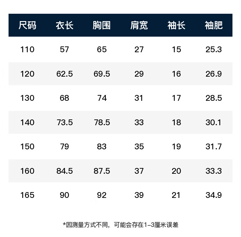 China (cm) 165 / 88-90 170 / 96-98 175 / 108-110 180 / 118-122 185 / 126-130