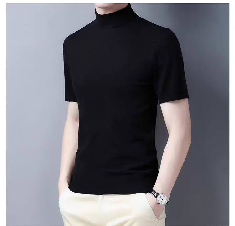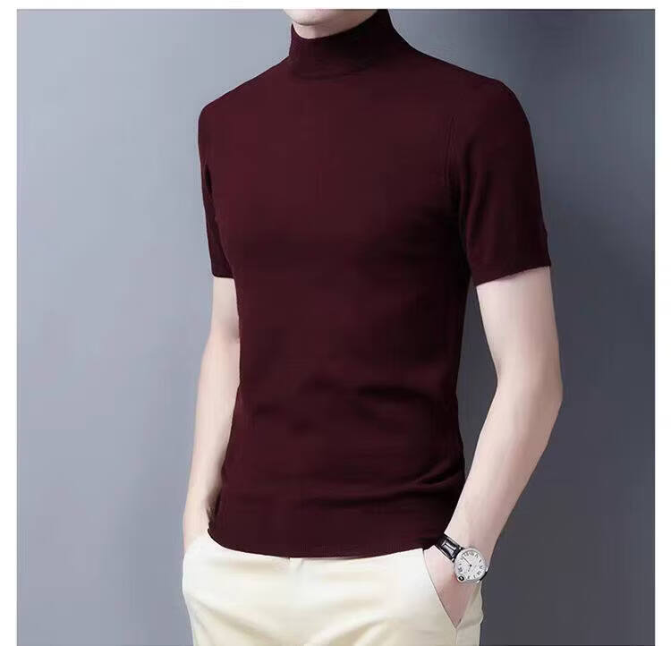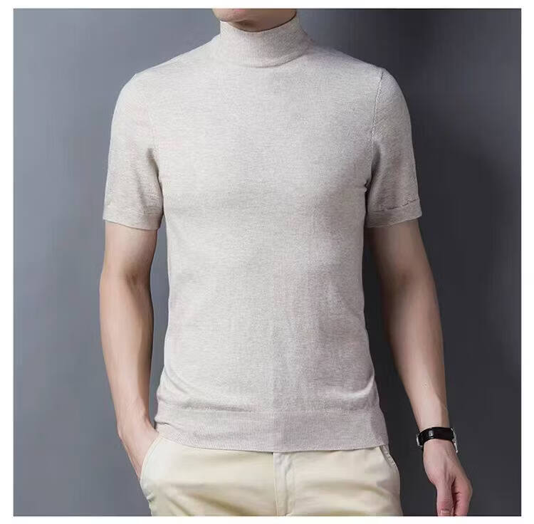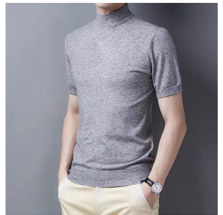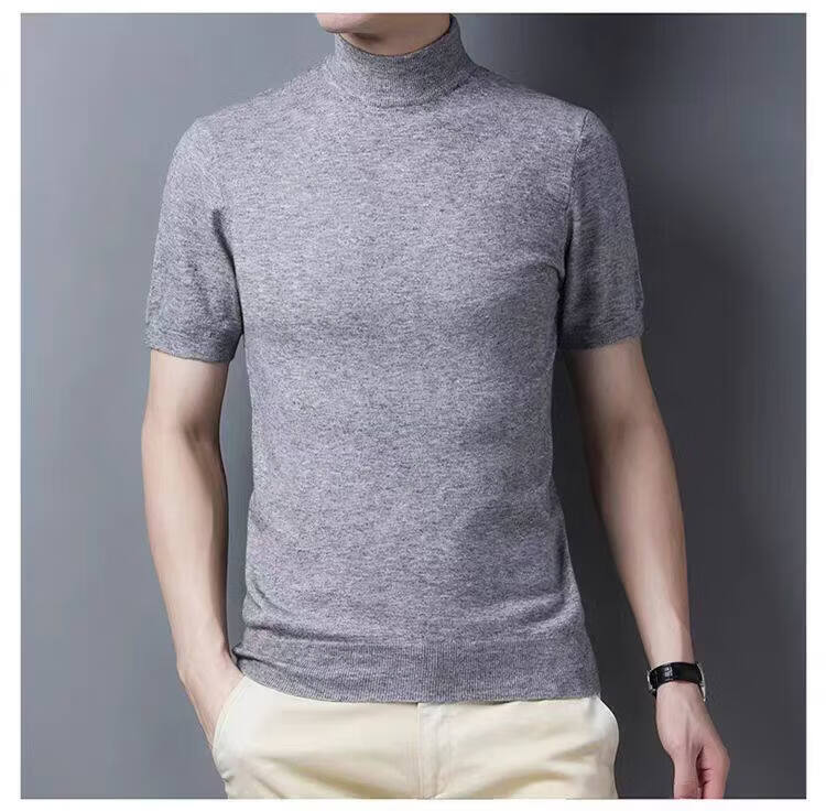丨Lilang丨2026 new machine washable autumn and winter thin short-sleeved cardigan sweater for young and middle-aged men and women half turtleneck sweater short-sleeved T-shirt needle half turtleneck gray XL 175 140-155Jin Jin is equal to 0.5 kg
